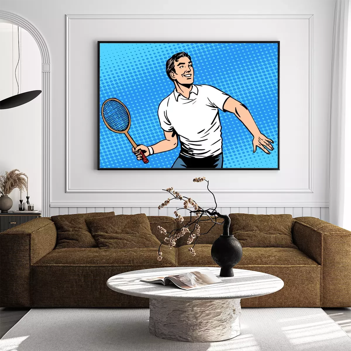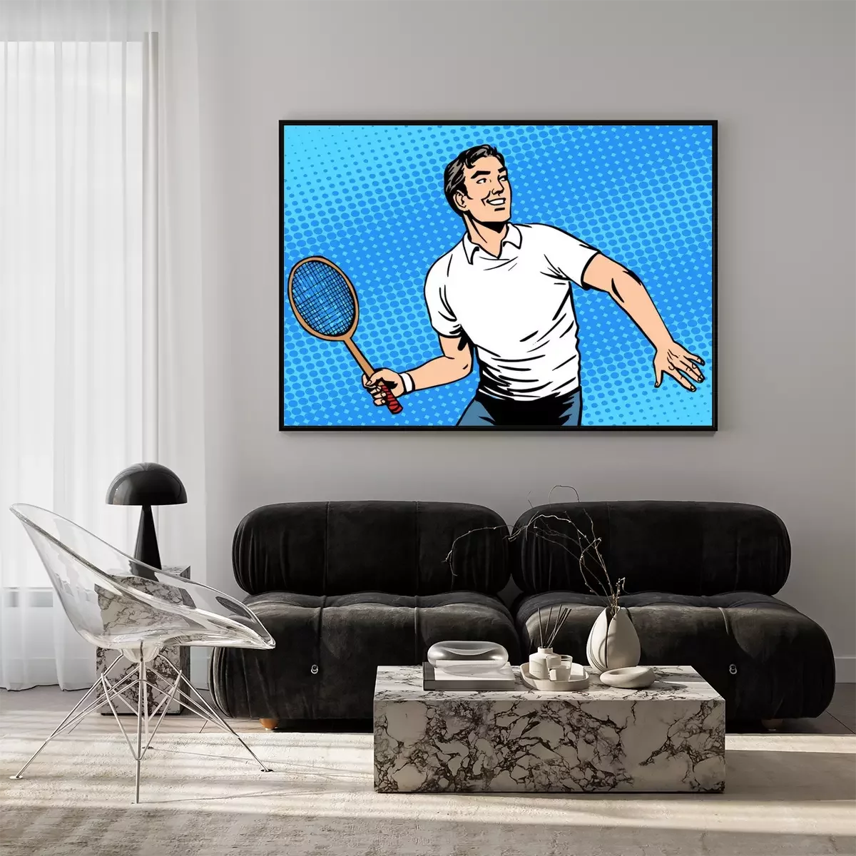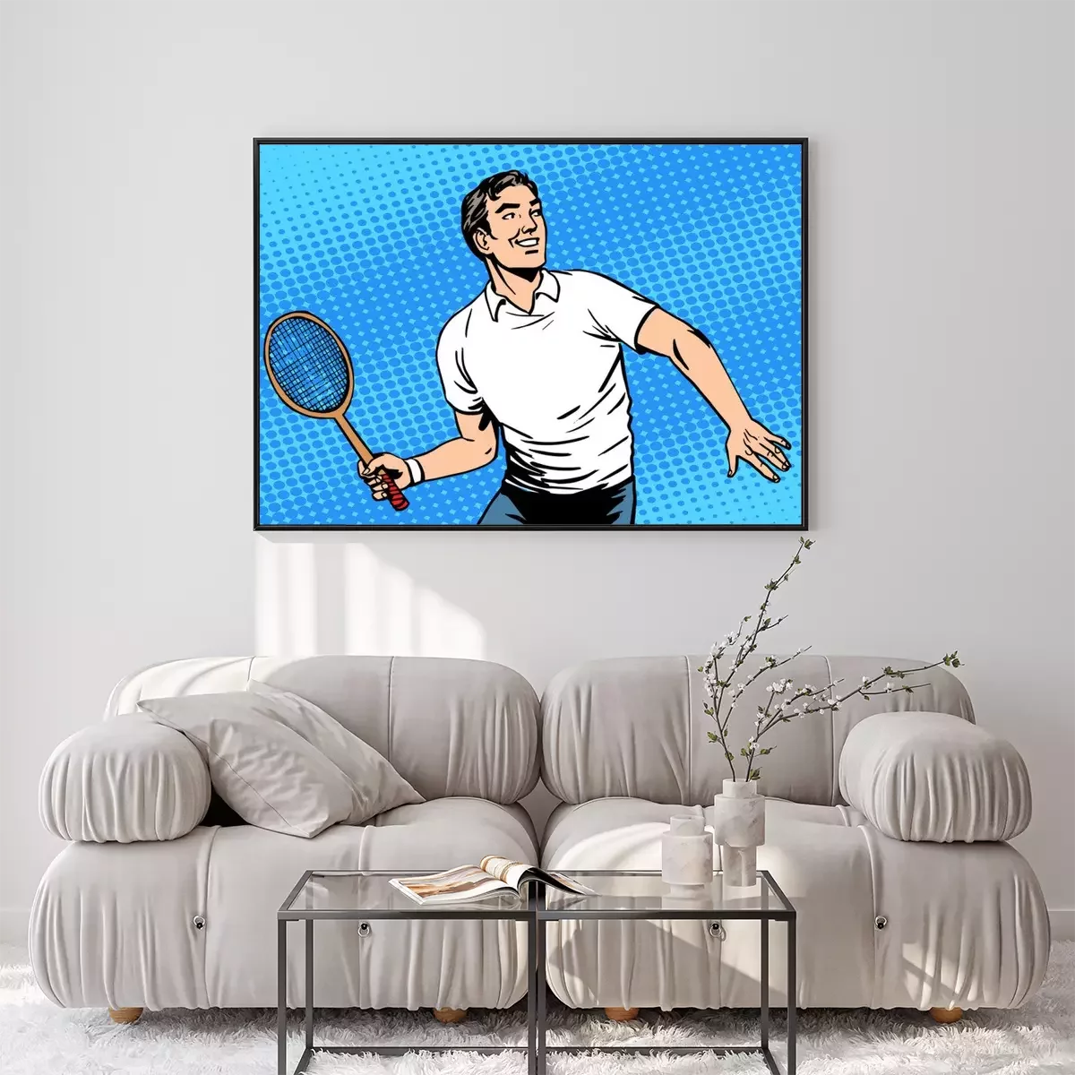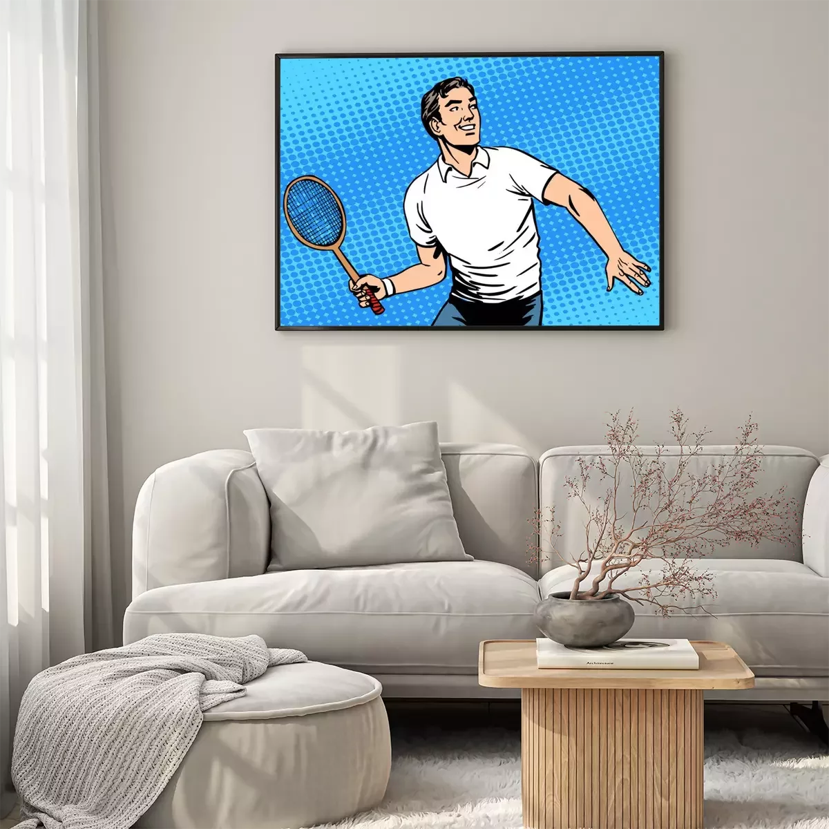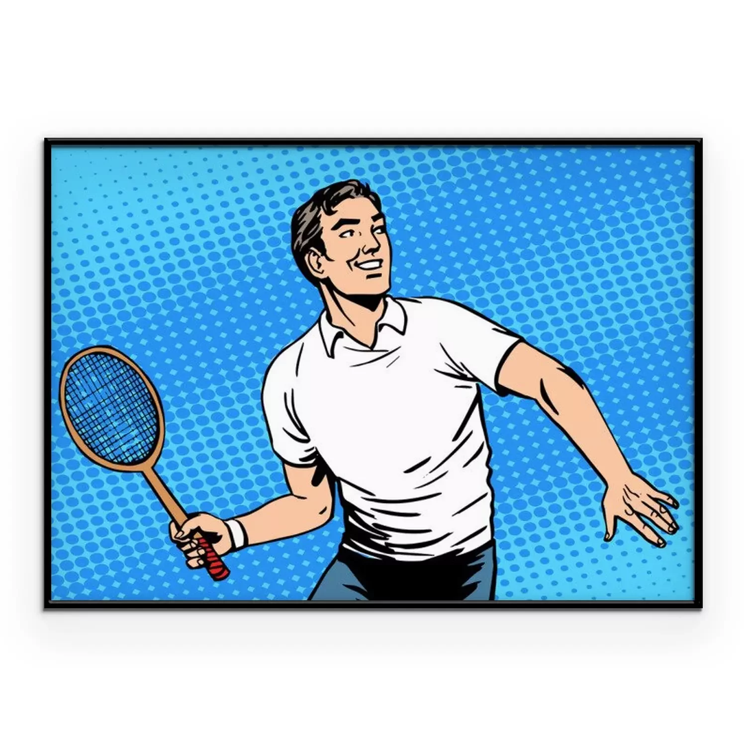 Poster: Tennis Cartoon-Grafik eines Mannes mit einem Schläger