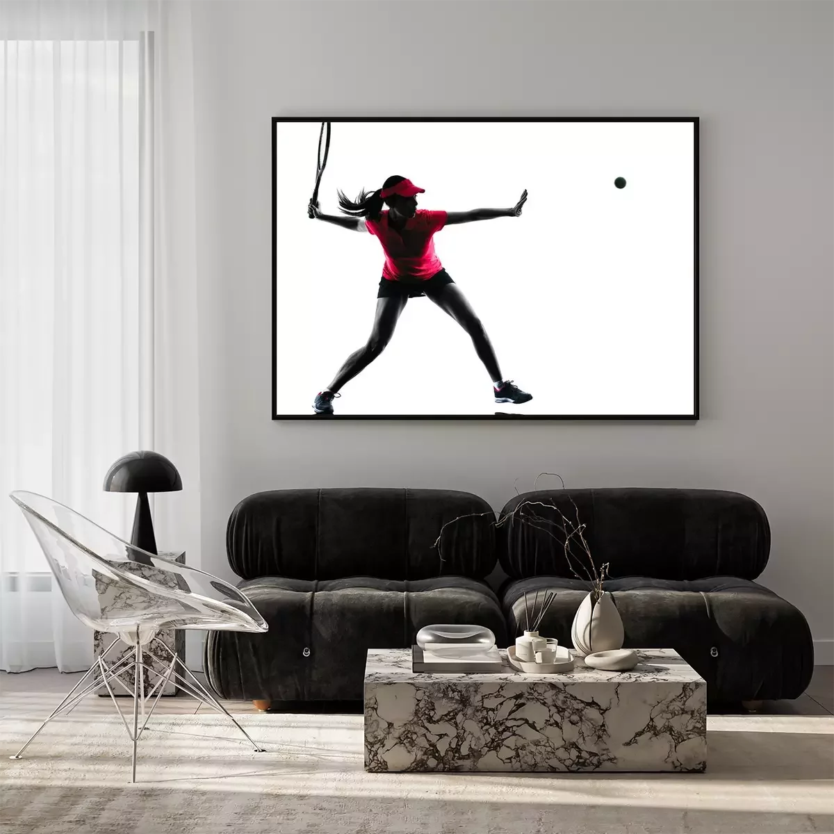Schlanke Silhouette einer Tennisspielerin