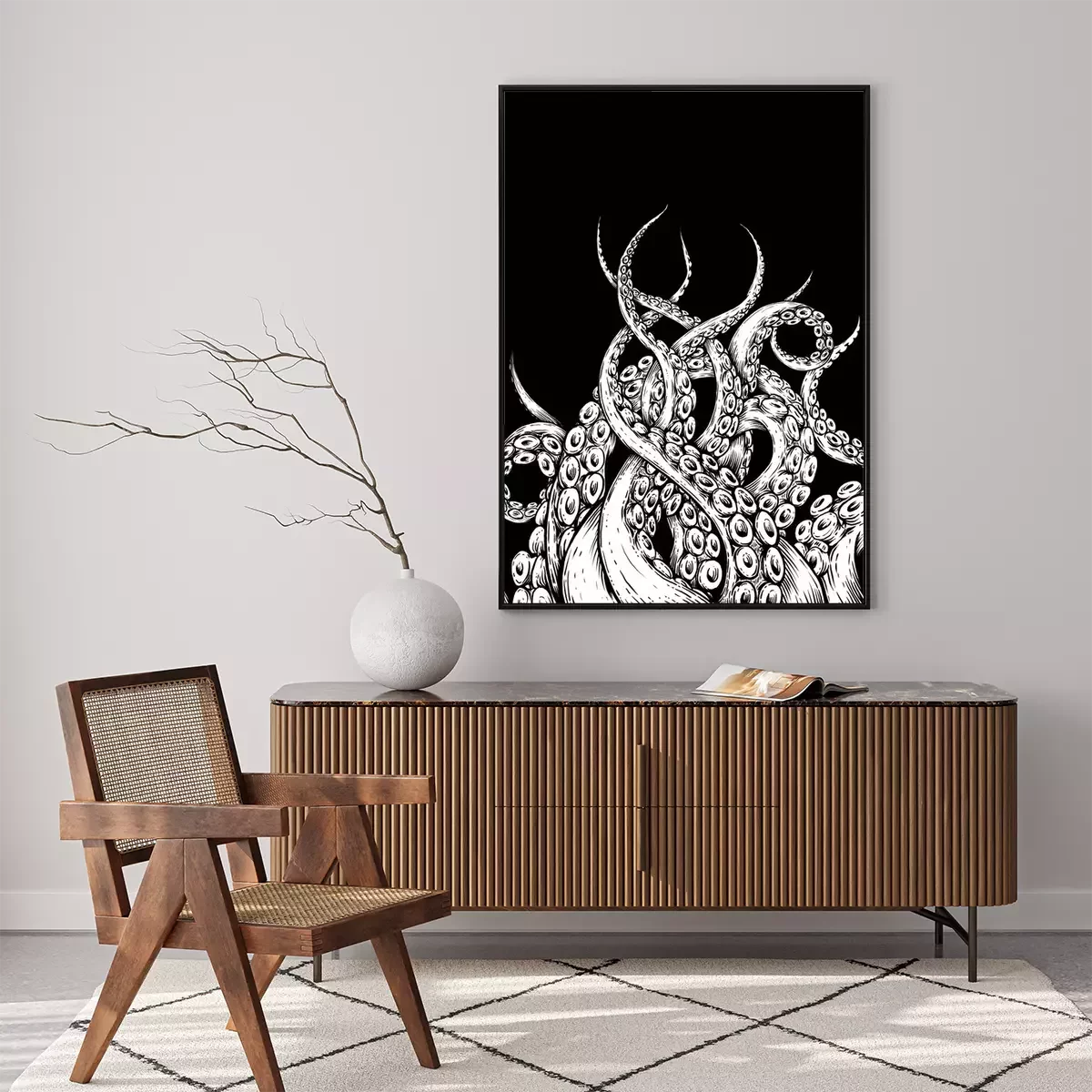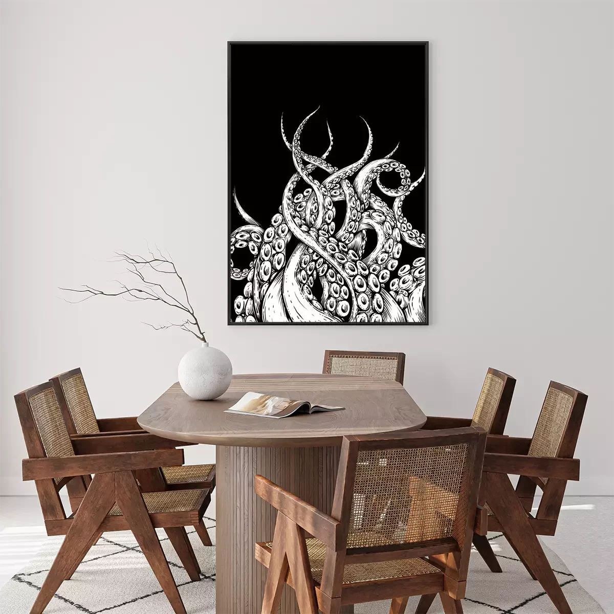 Poster Tentakel eines Monsters auf schwarzem Hintergrund