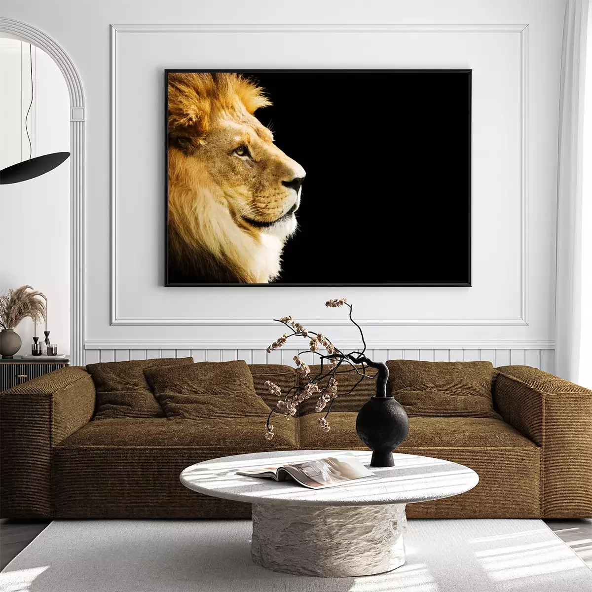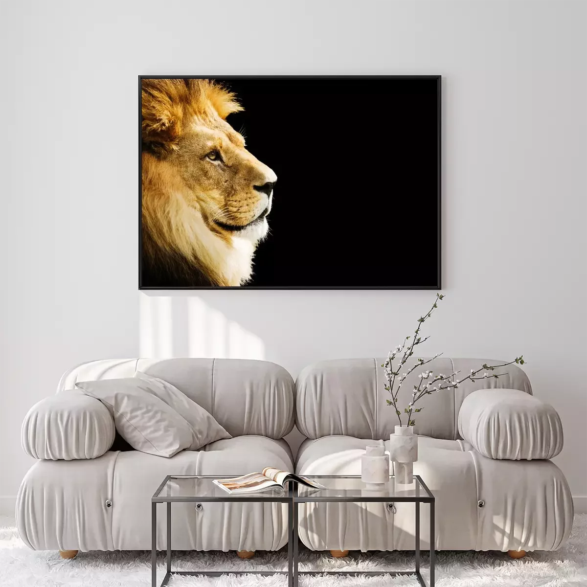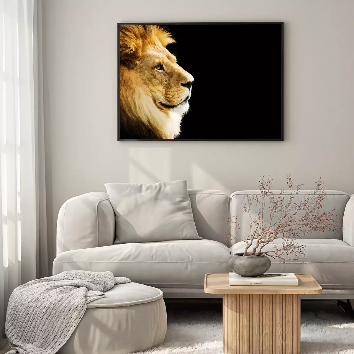 Poster: Tier Löwe auf schwarzem Hintergrund