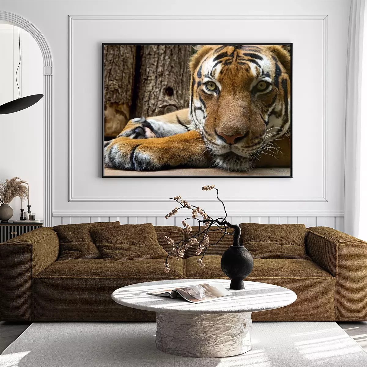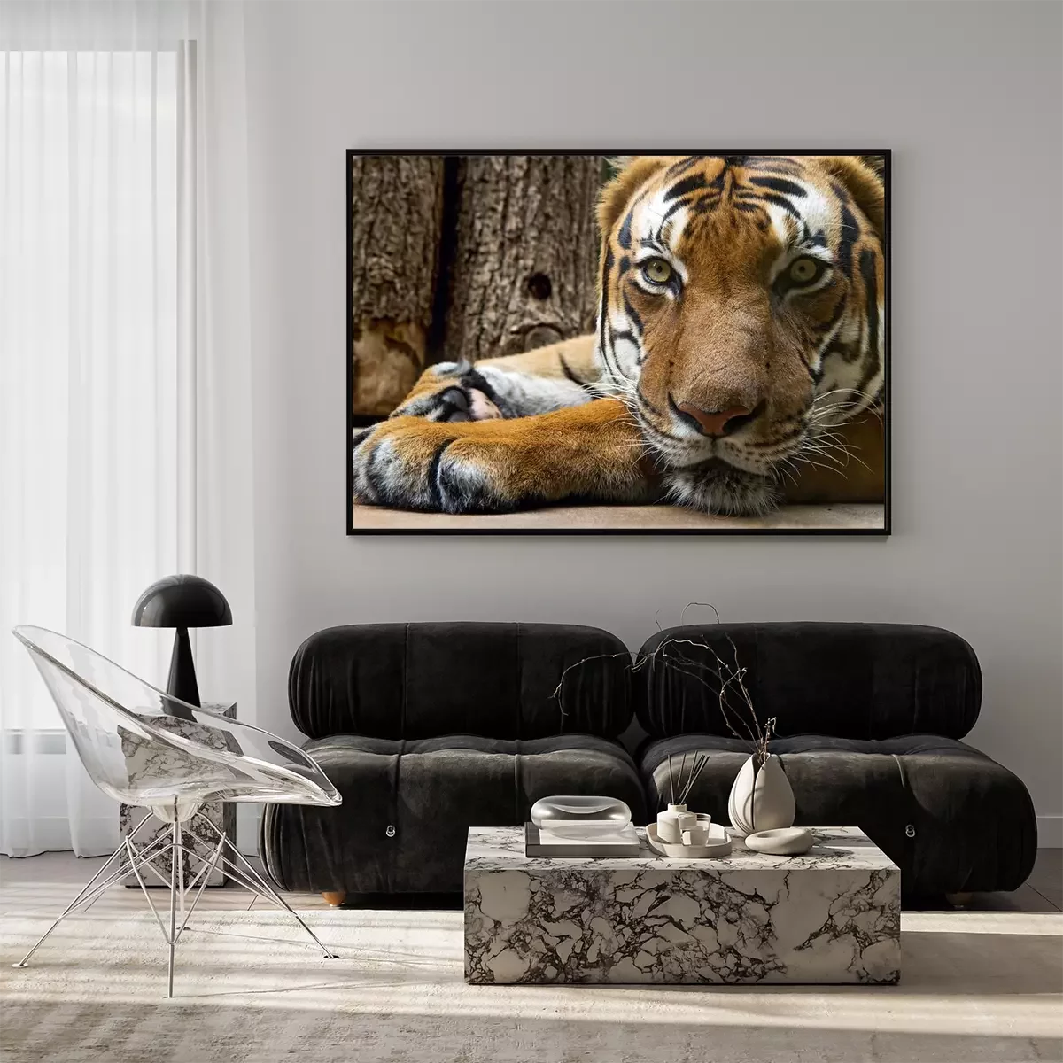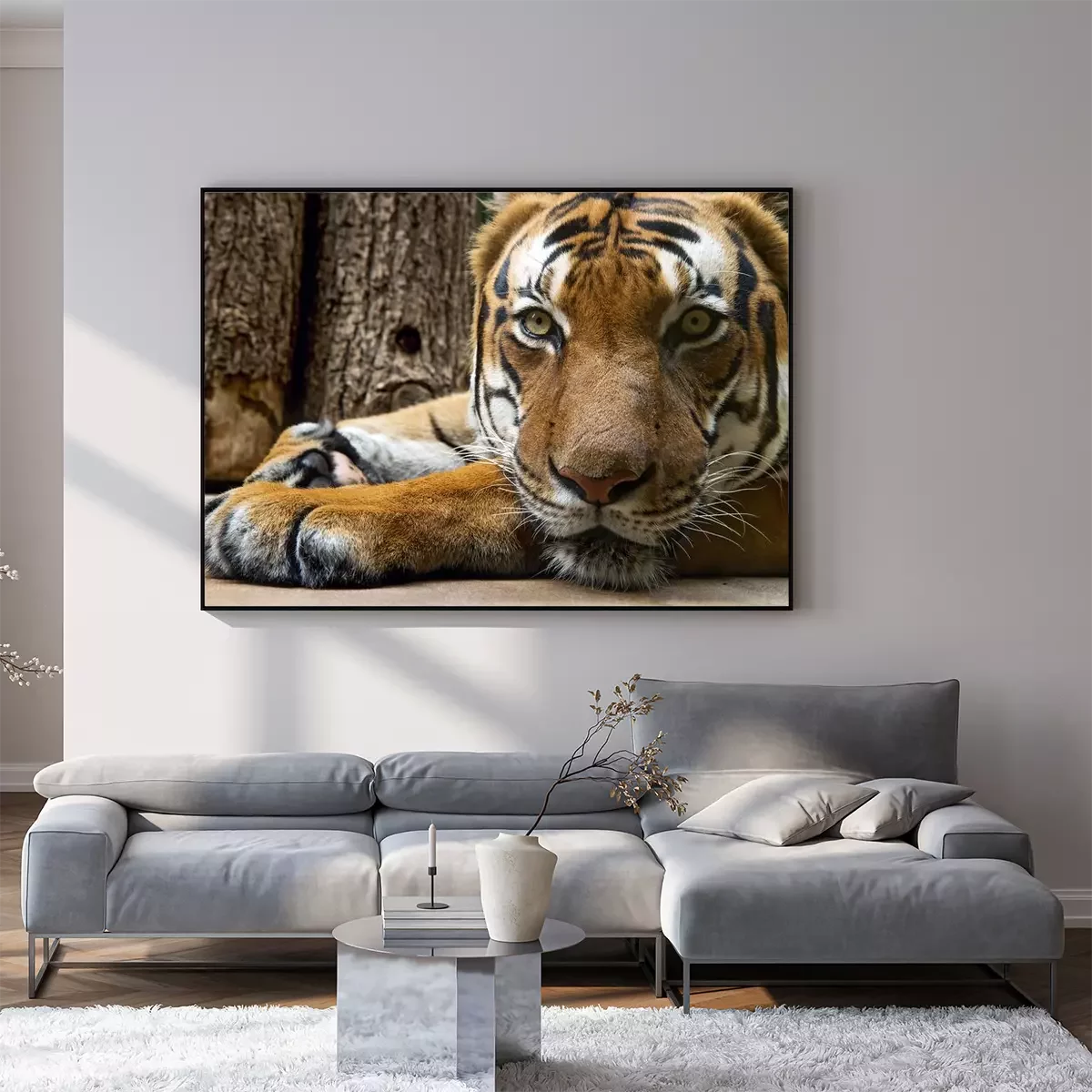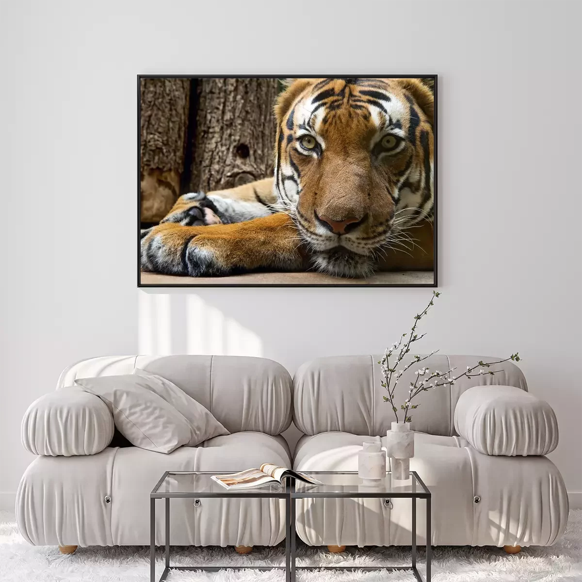 Poster Tiger liegend am Baum