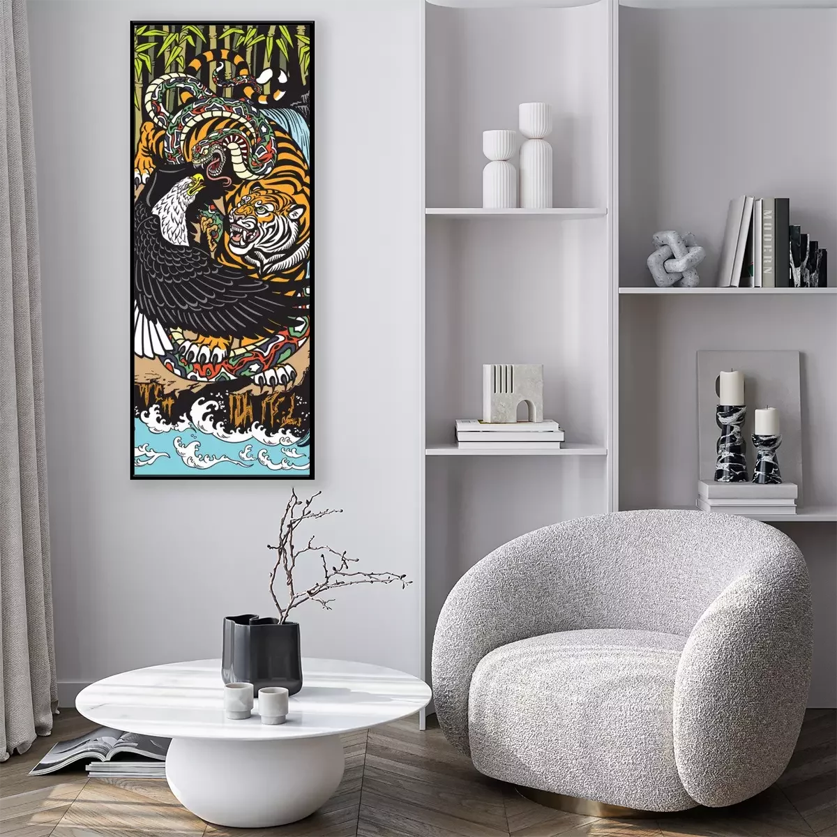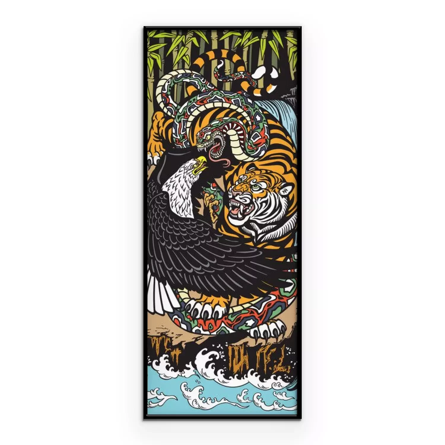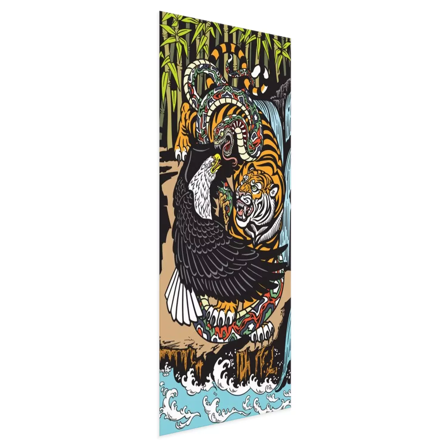 Poster: Tiger Schlange und Adler im Kampf - farbenfrohe Grafik