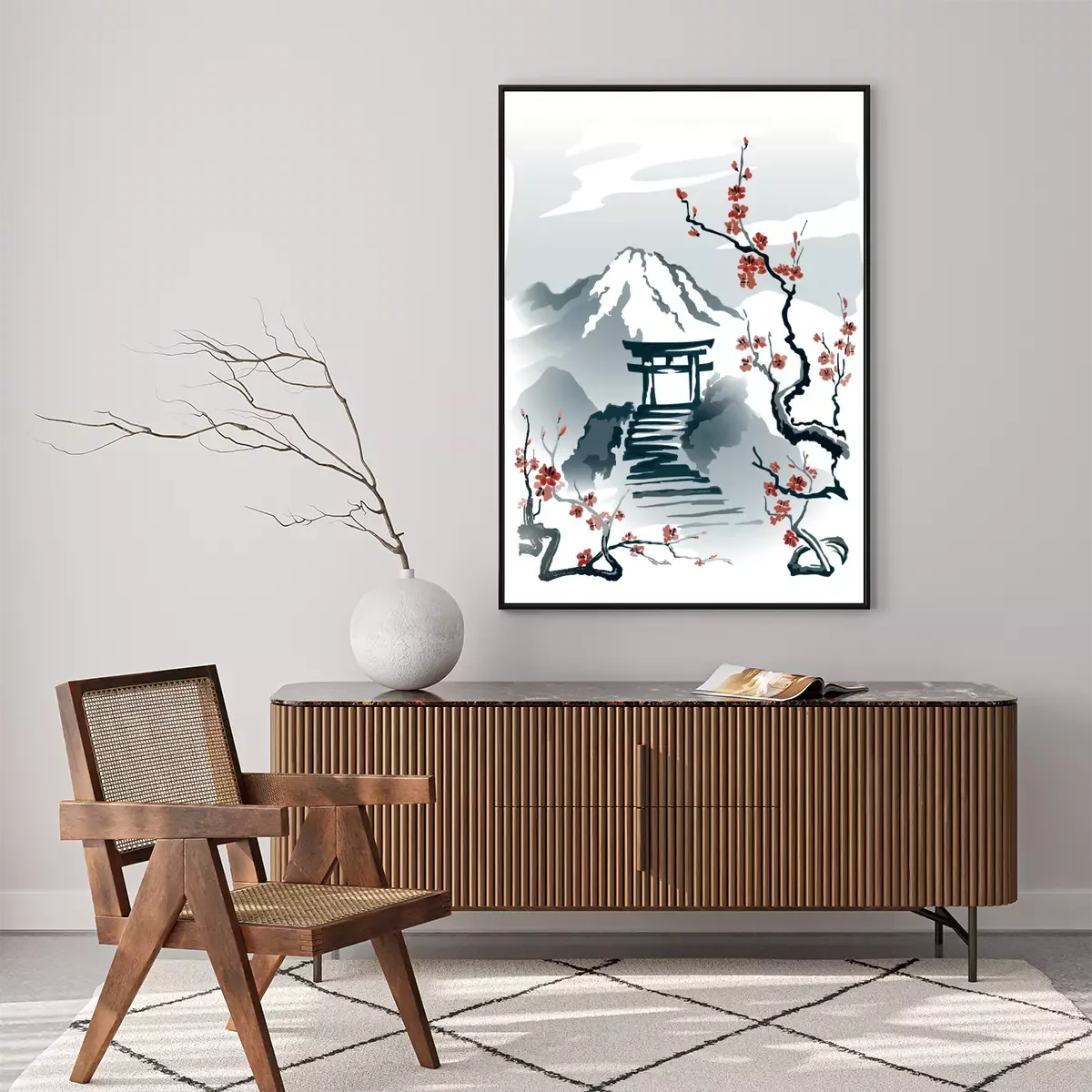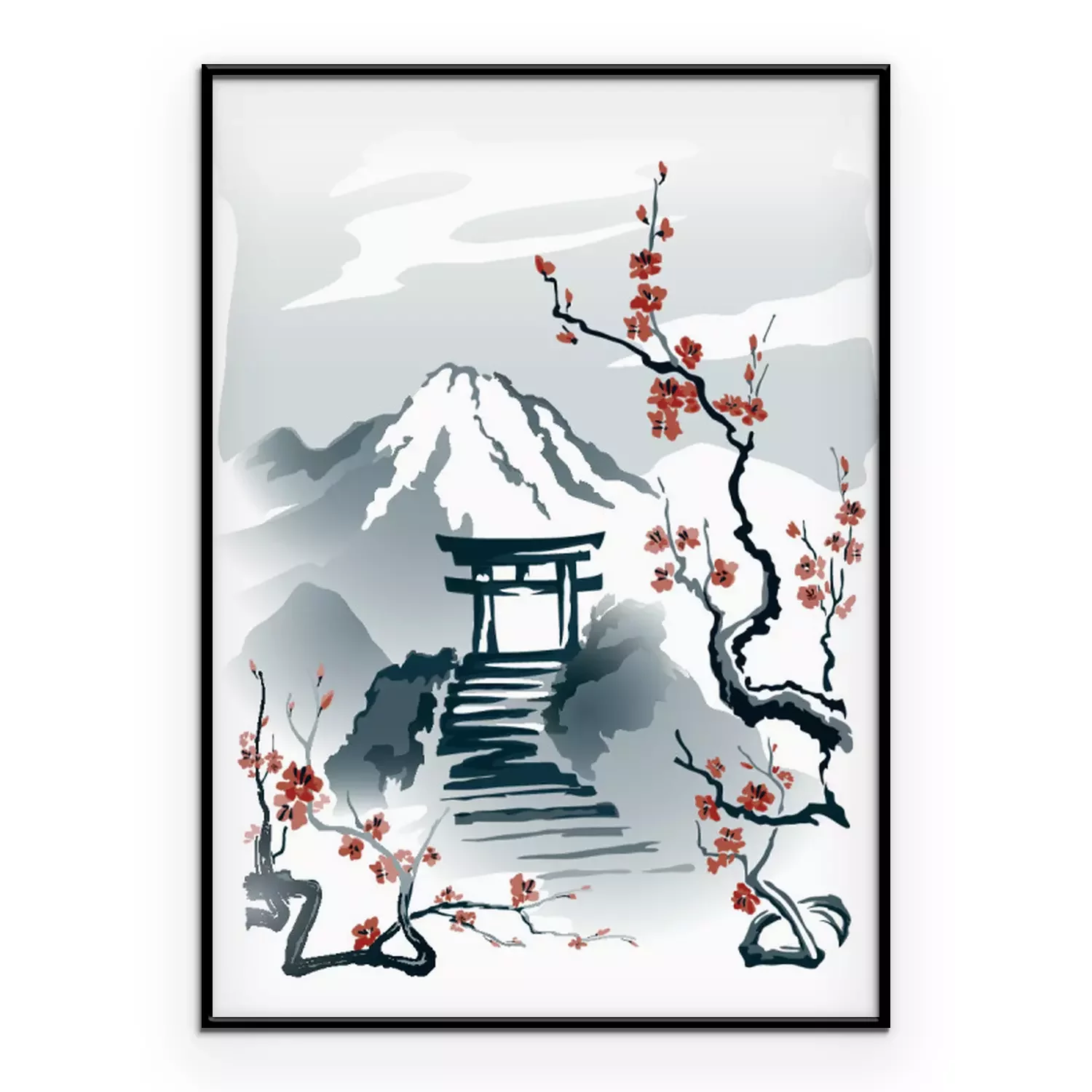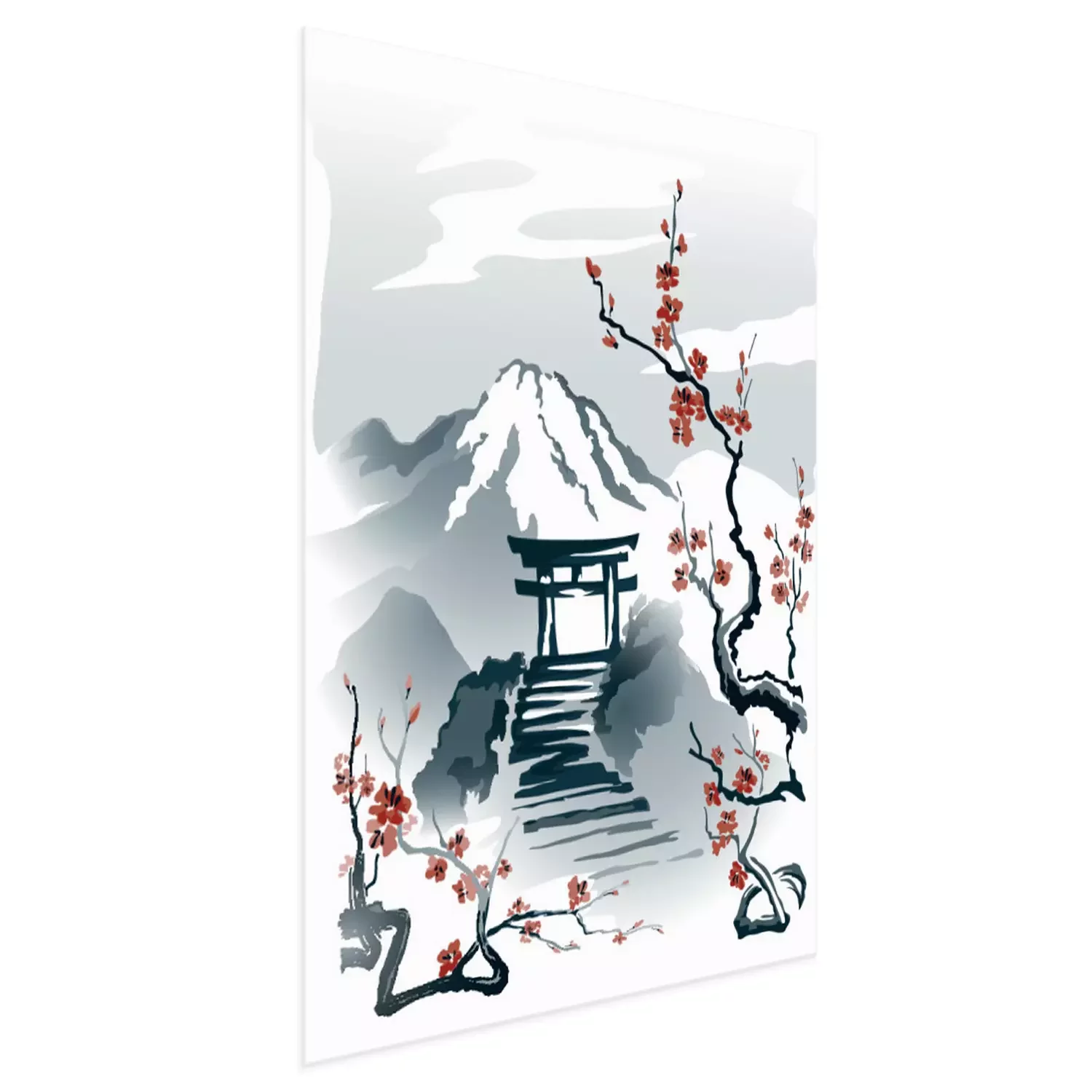 Poster Torii Tor auf einem Felsen Muster im japanischen Stil