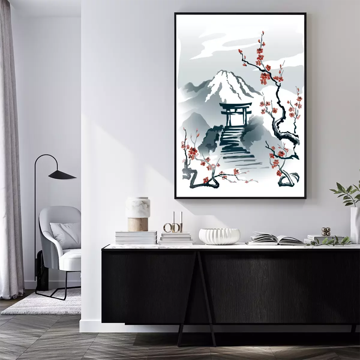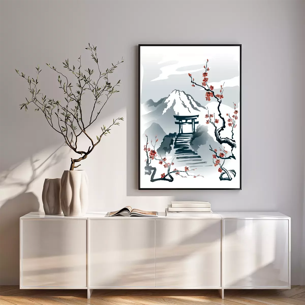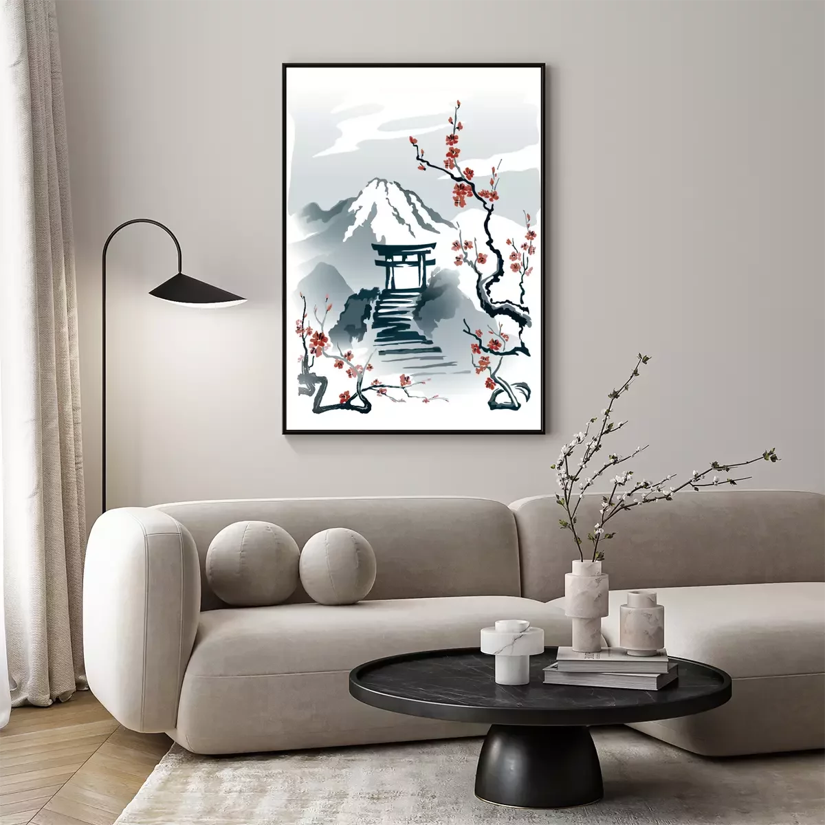 Poster Torii Tor auf einem Felsen Muster im japanischen Stil