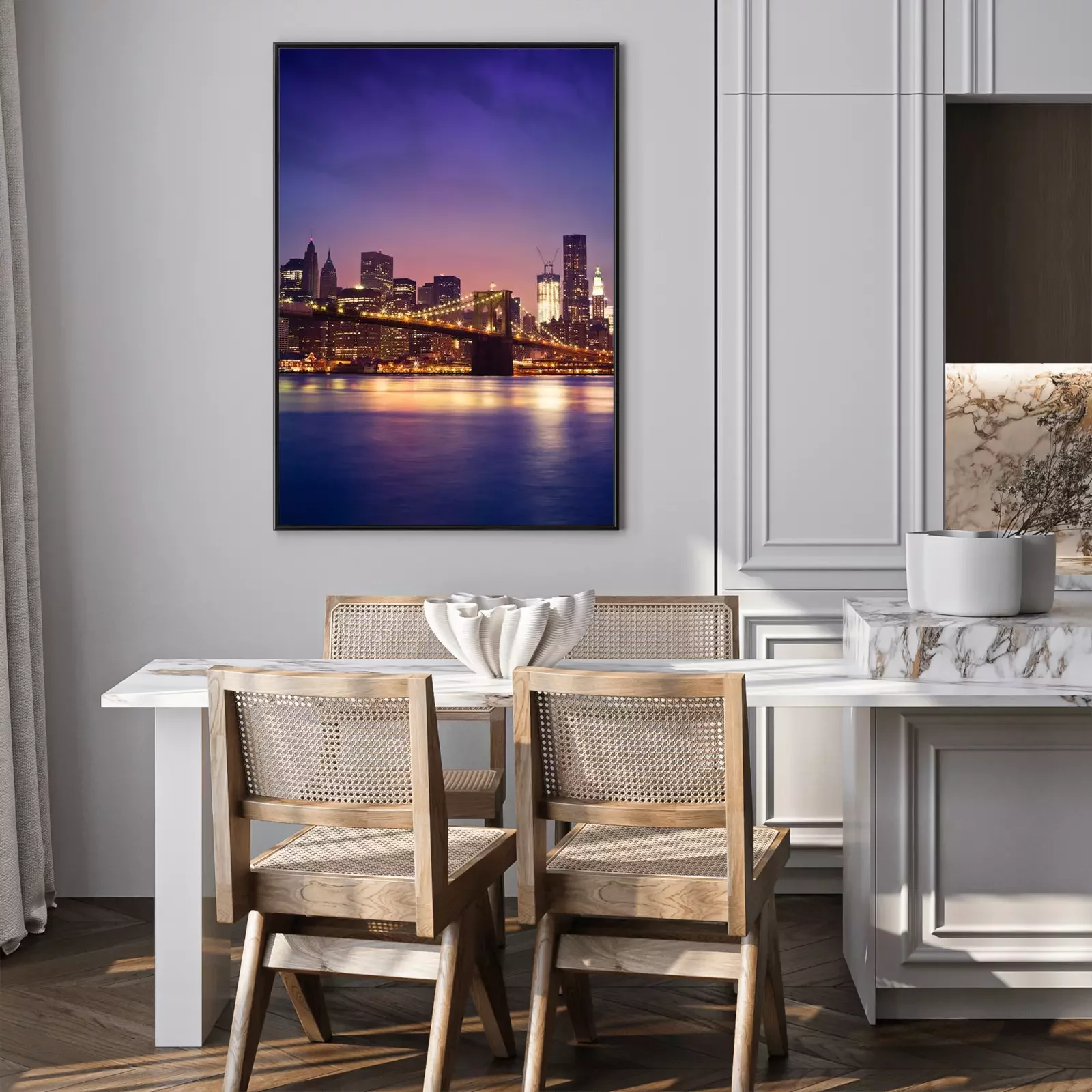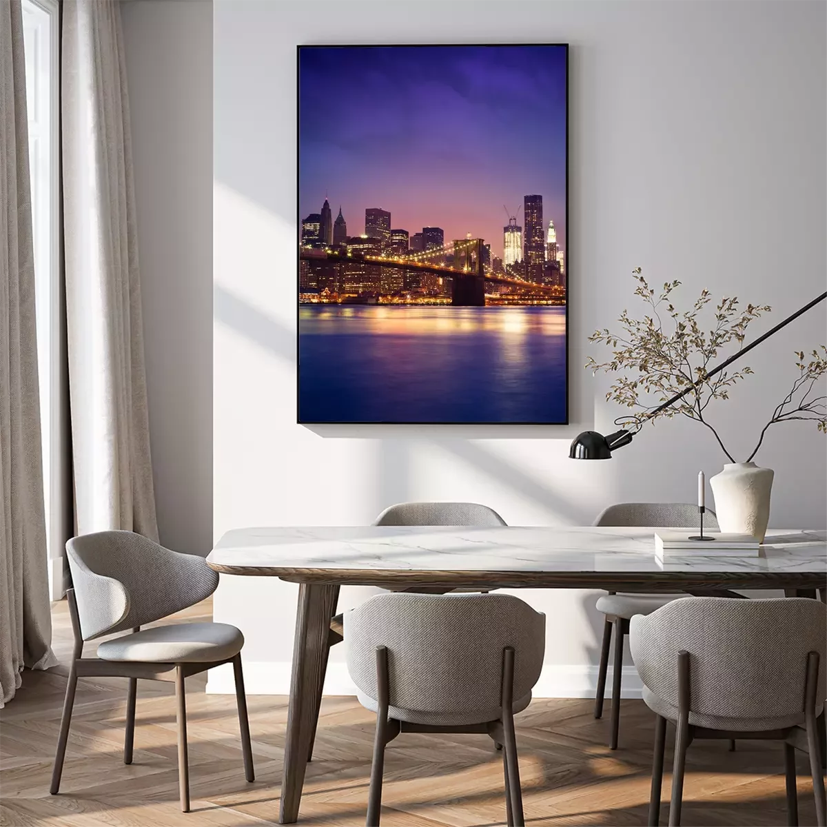 Nachtpanorama von New York mit der Brooklyn Bridge