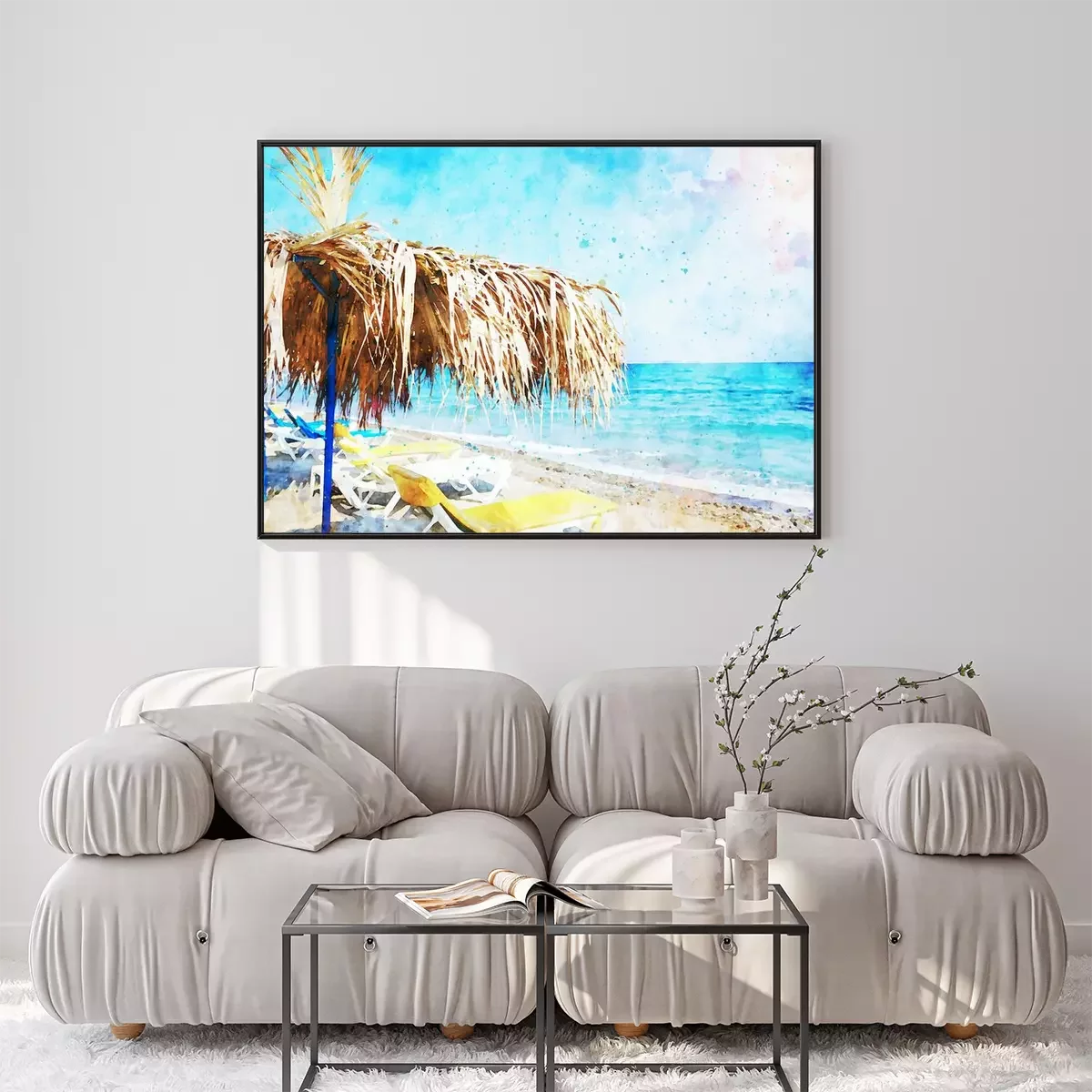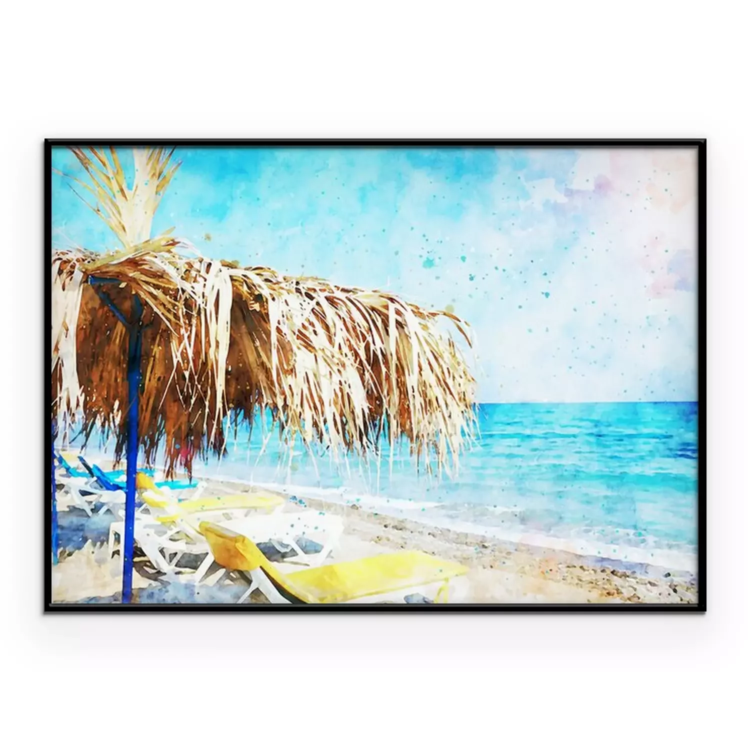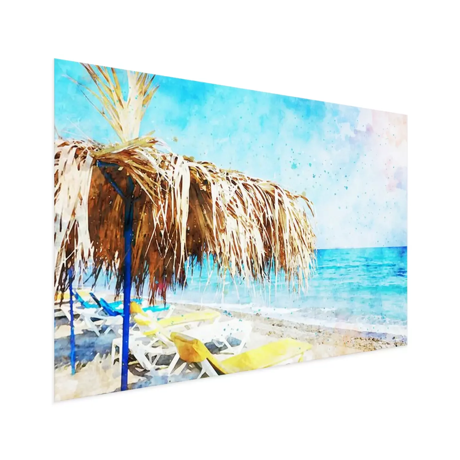 Aquarell mit Strand und Sonnenliegen