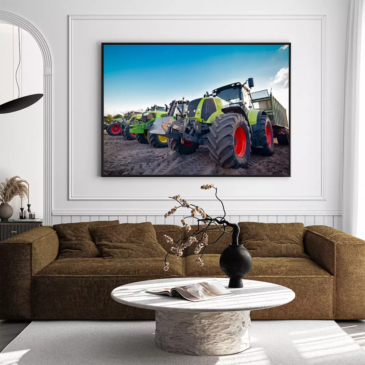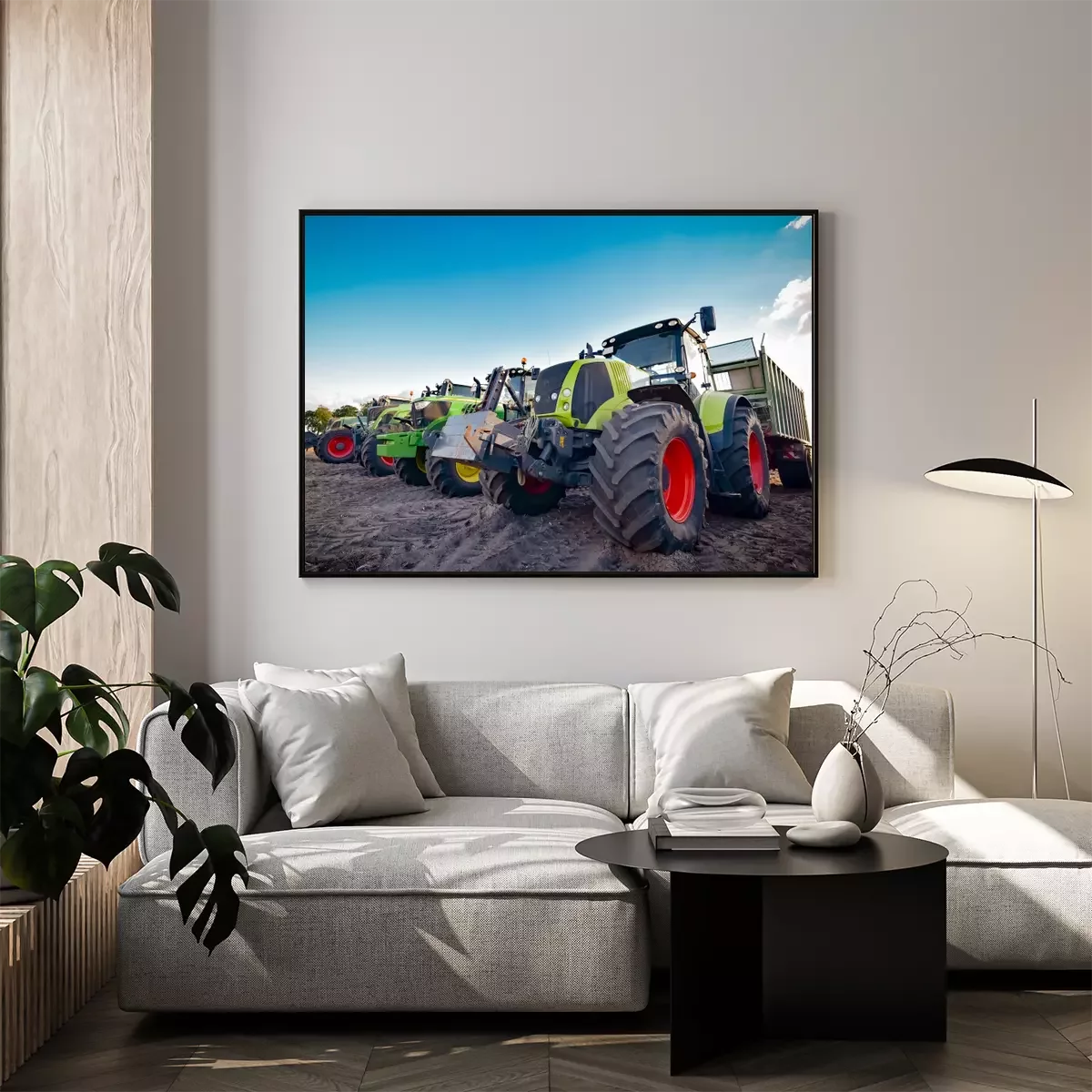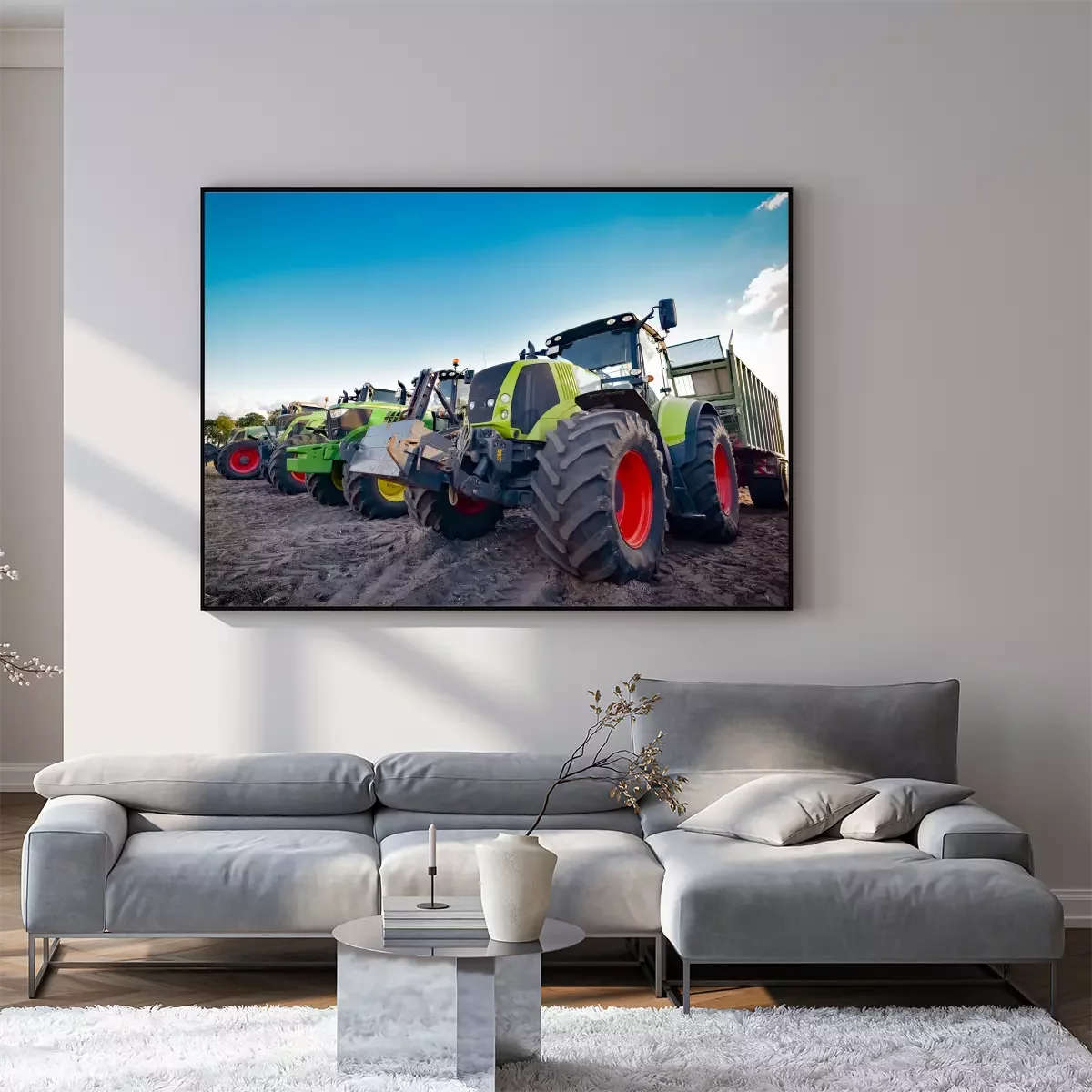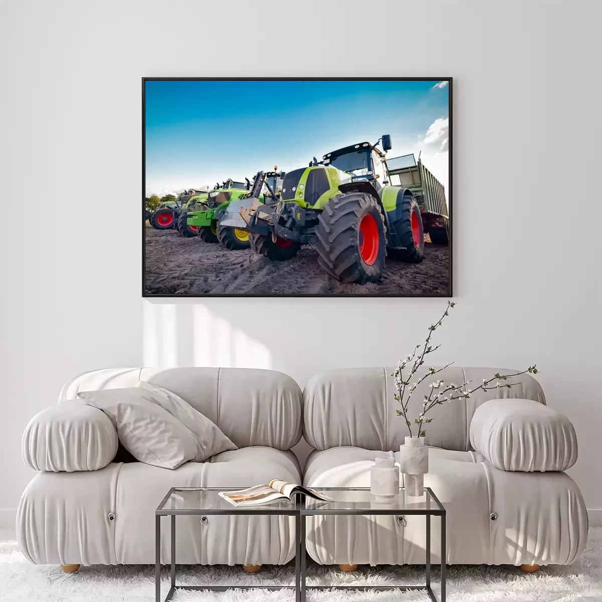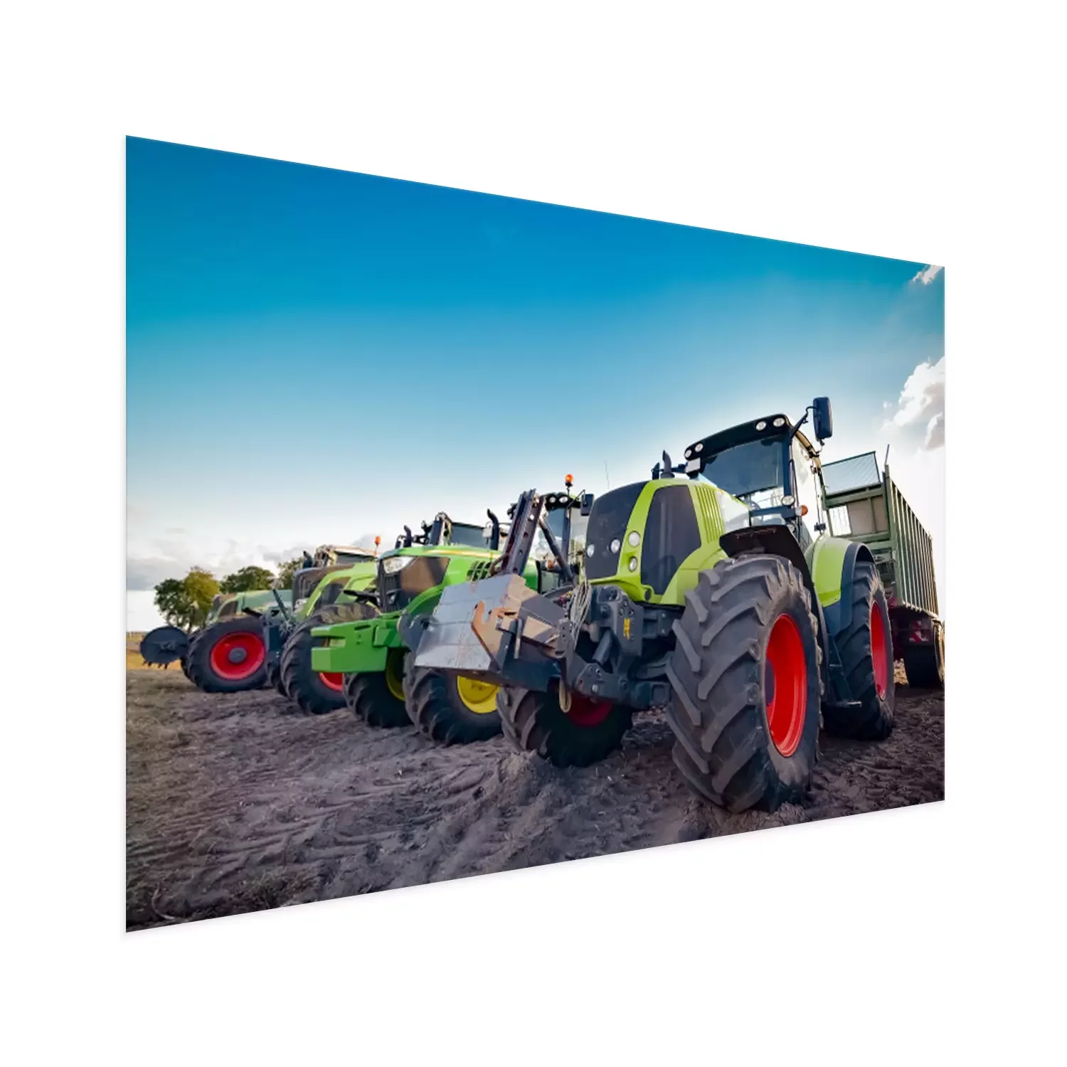 Poster: Traktor und Maschinen auf dem Feld während des Tages