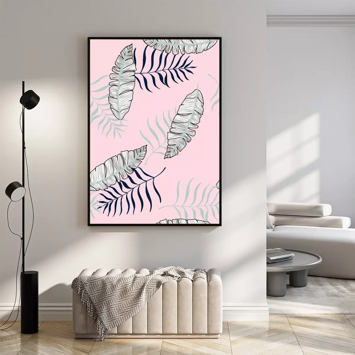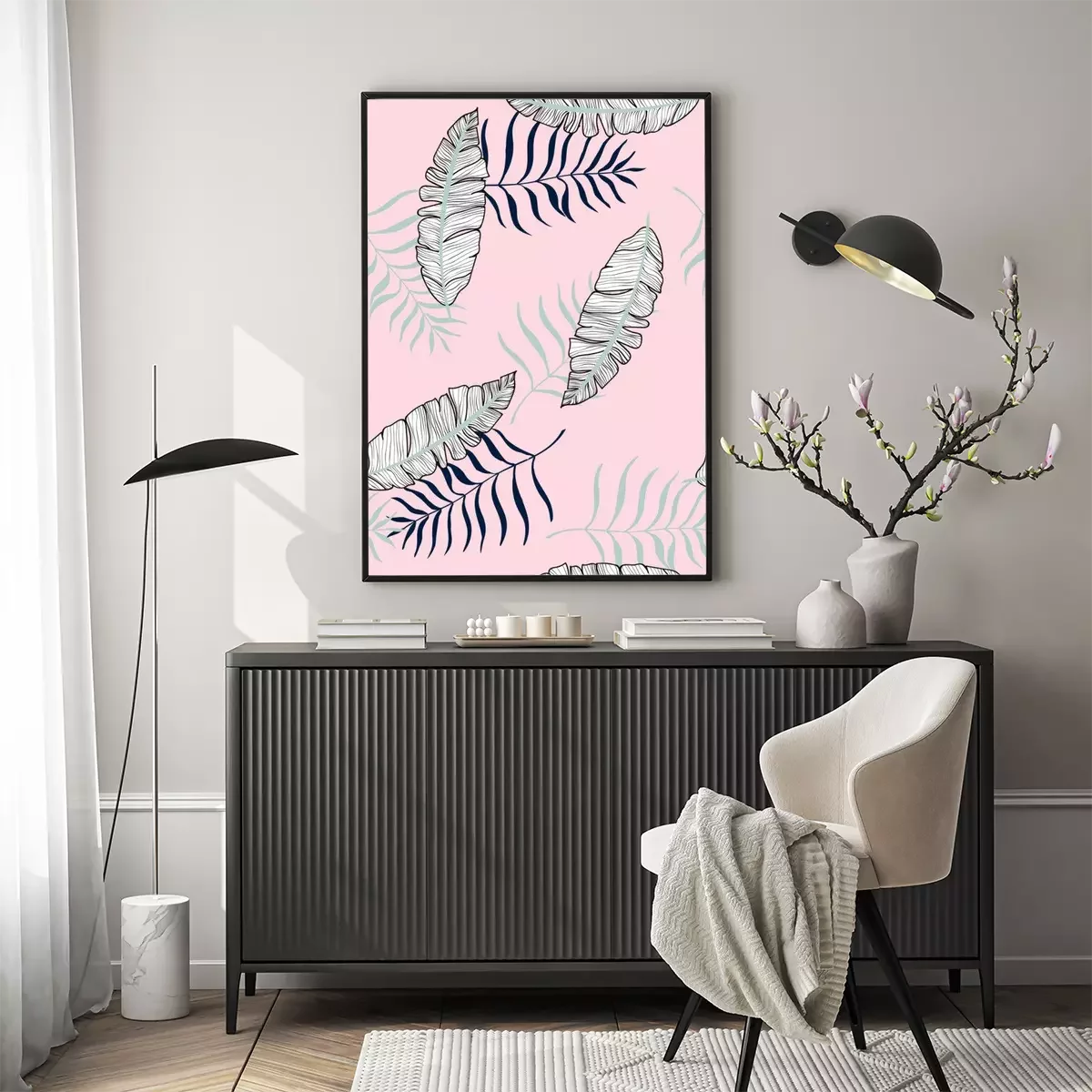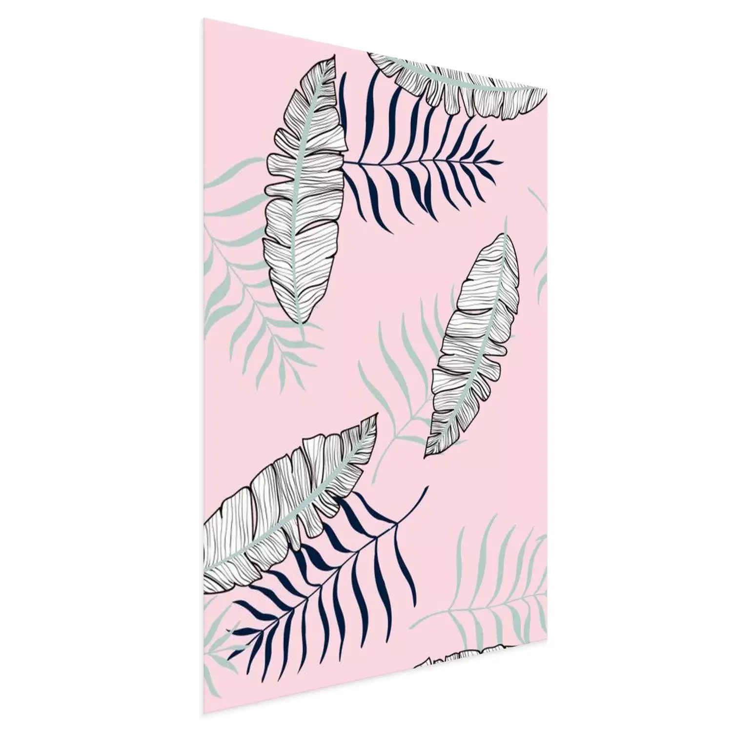 Poster: Tropische Blätter füllen einen rosa Hintergrund