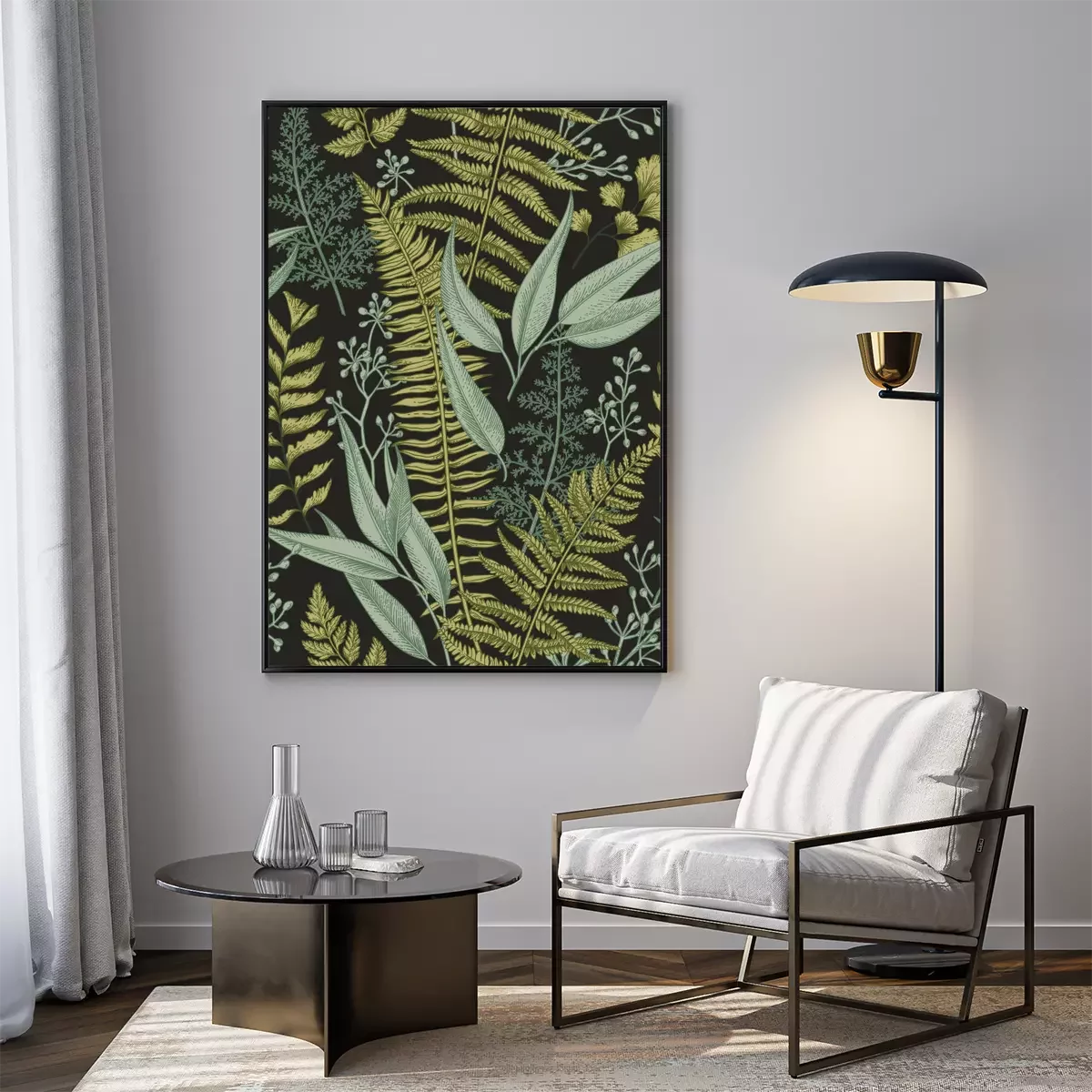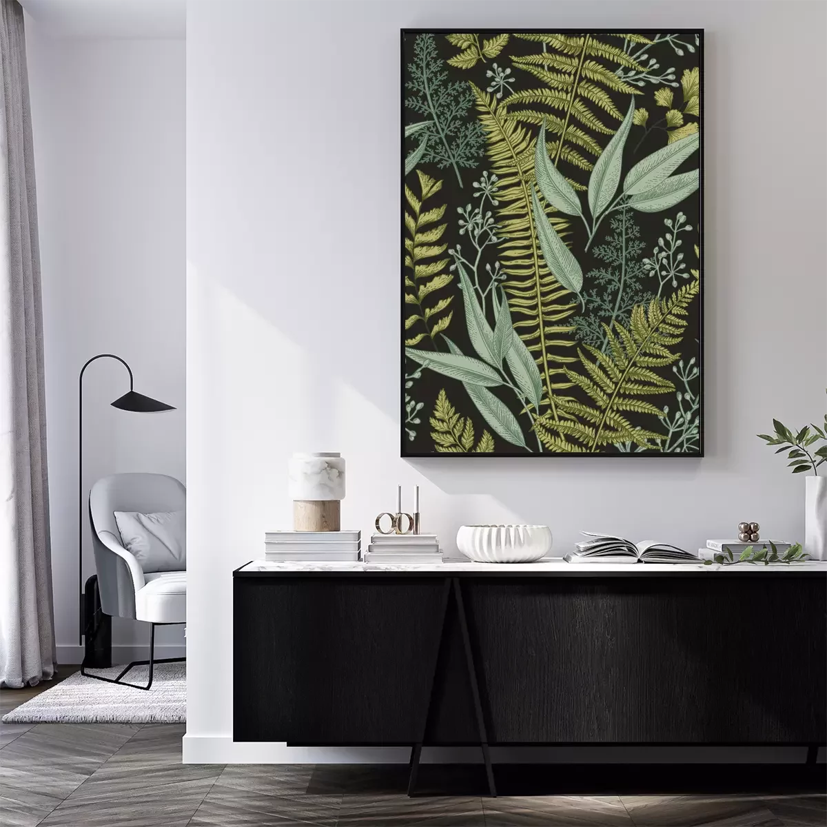 Schwarz-weiße Blätter im Scandi-Stil
