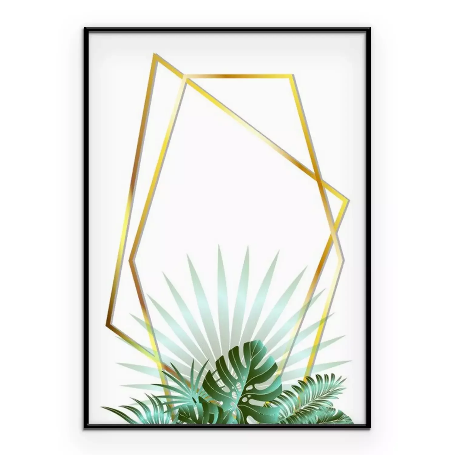 Poster: Tropischer Blumenstrauß in goldenem Rahmen