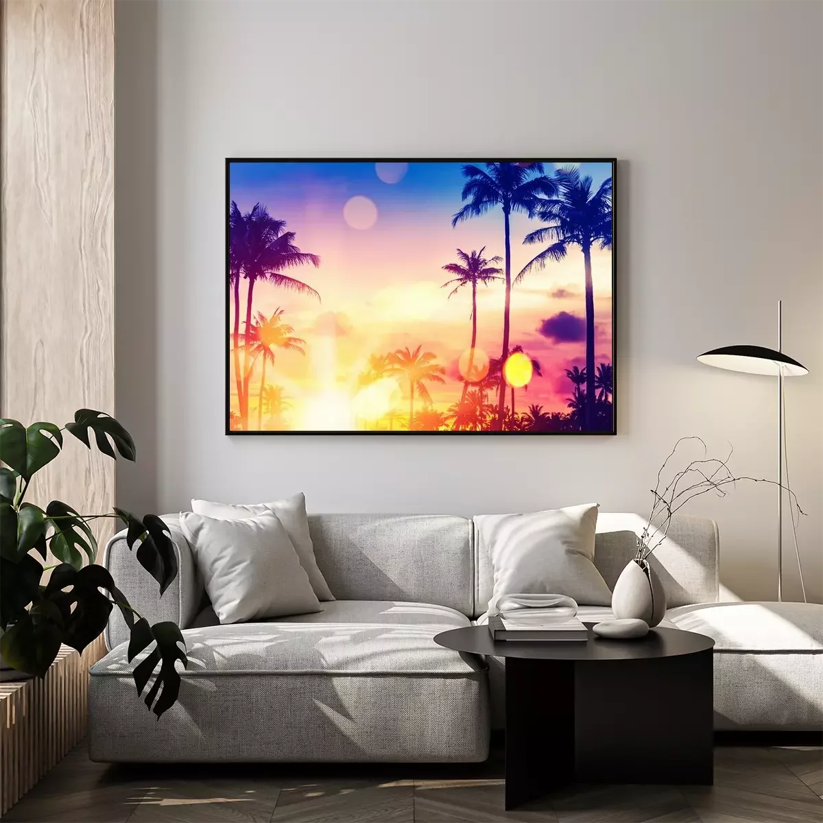 Sommerlicher Sonnenuntergang über einem Palmenwald