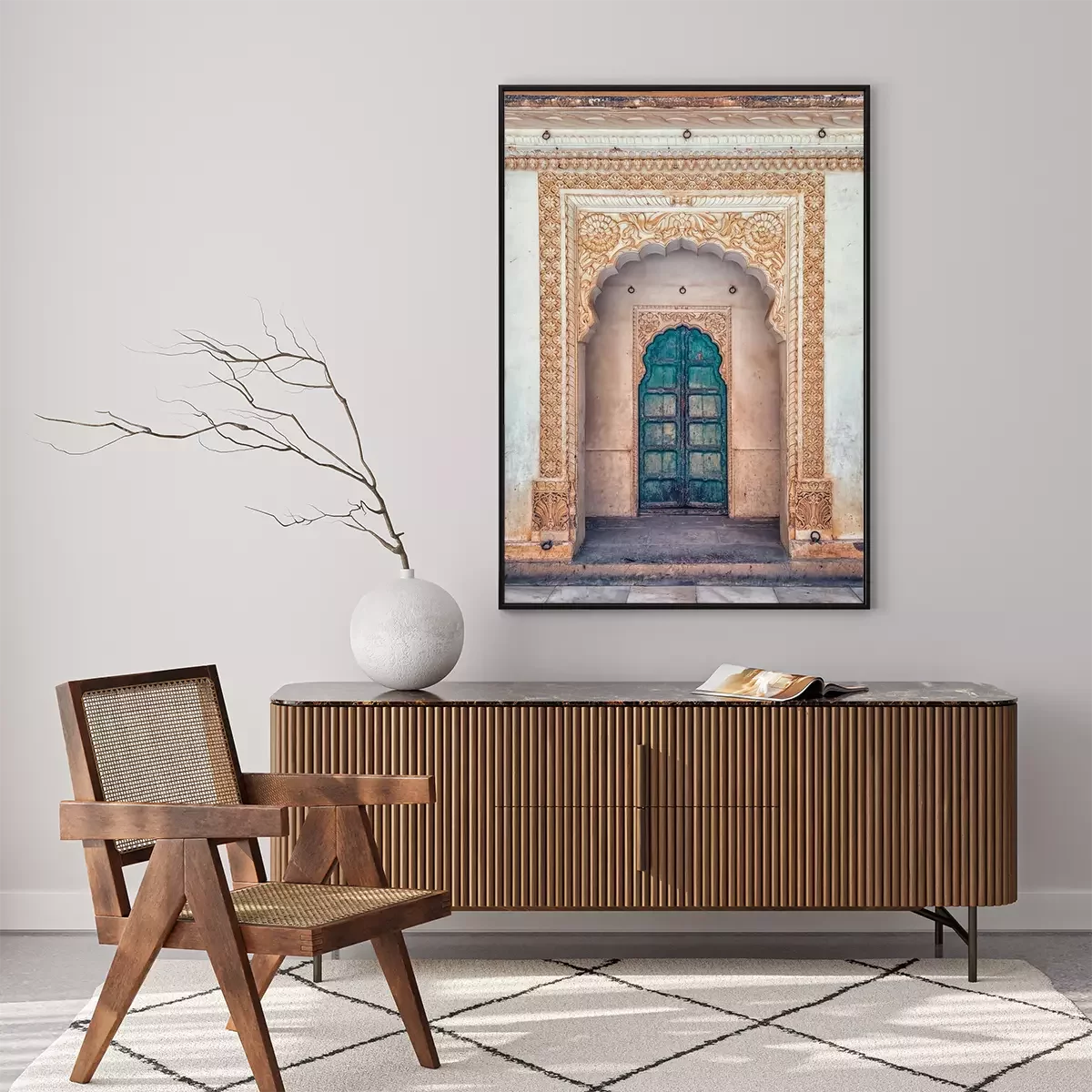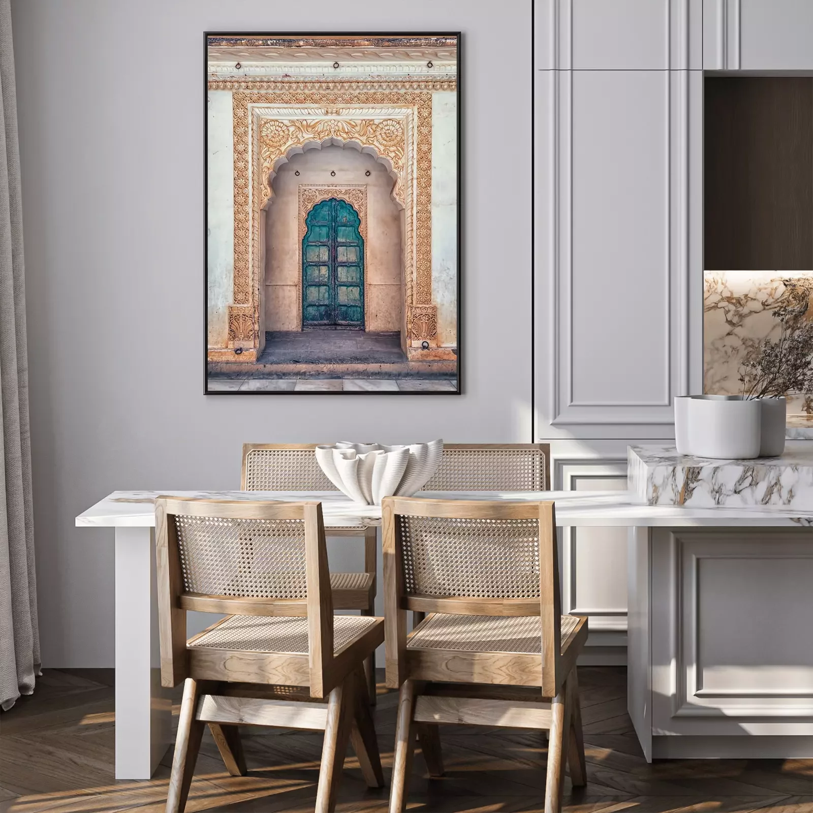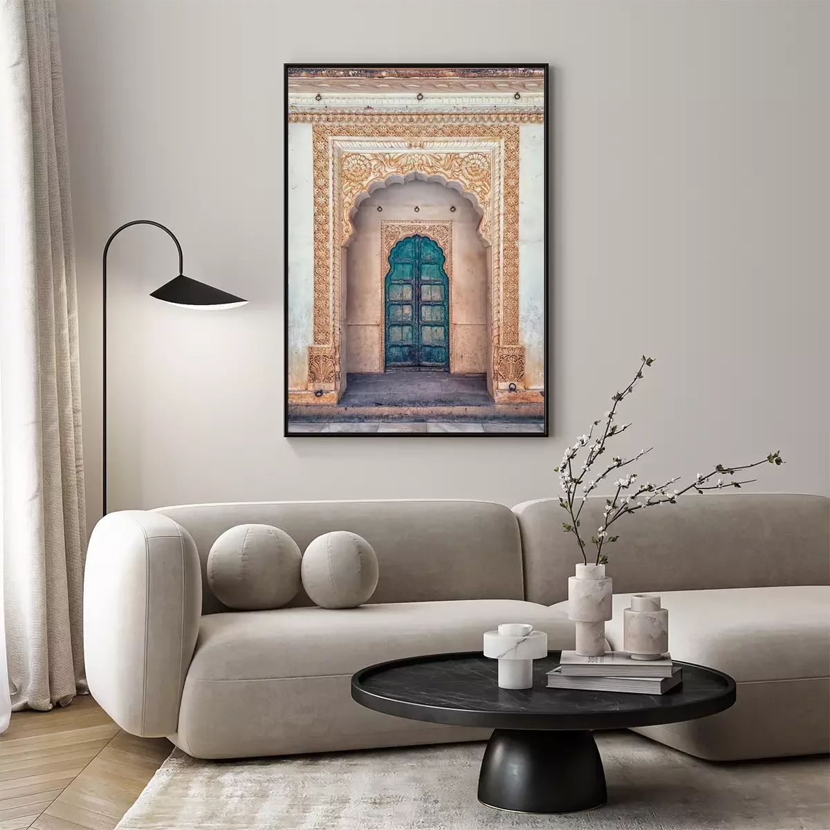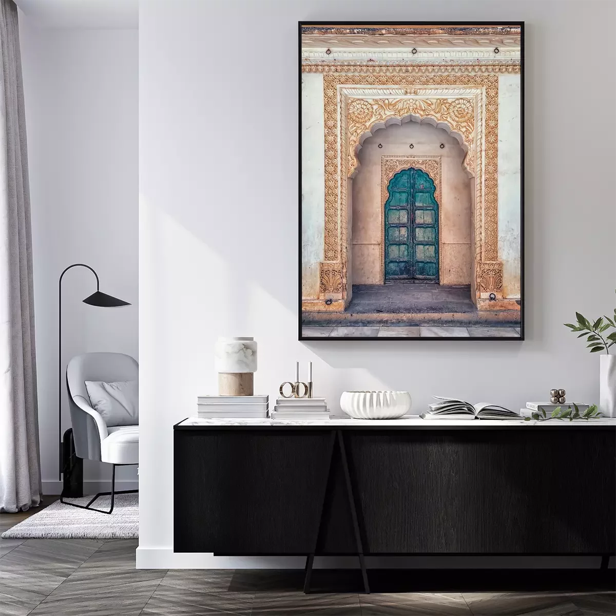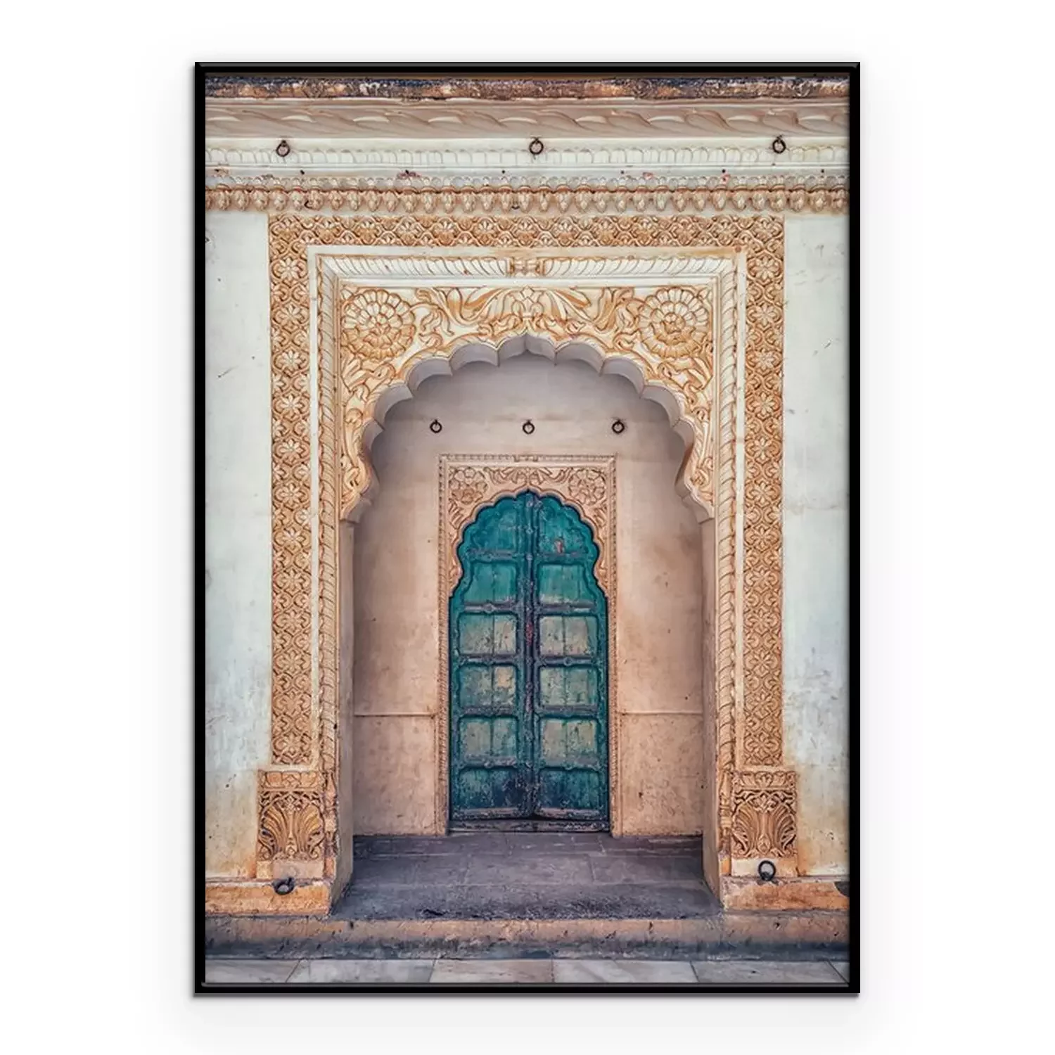 Poster: Türkisfarbene Tür eines indischen Gebäudes