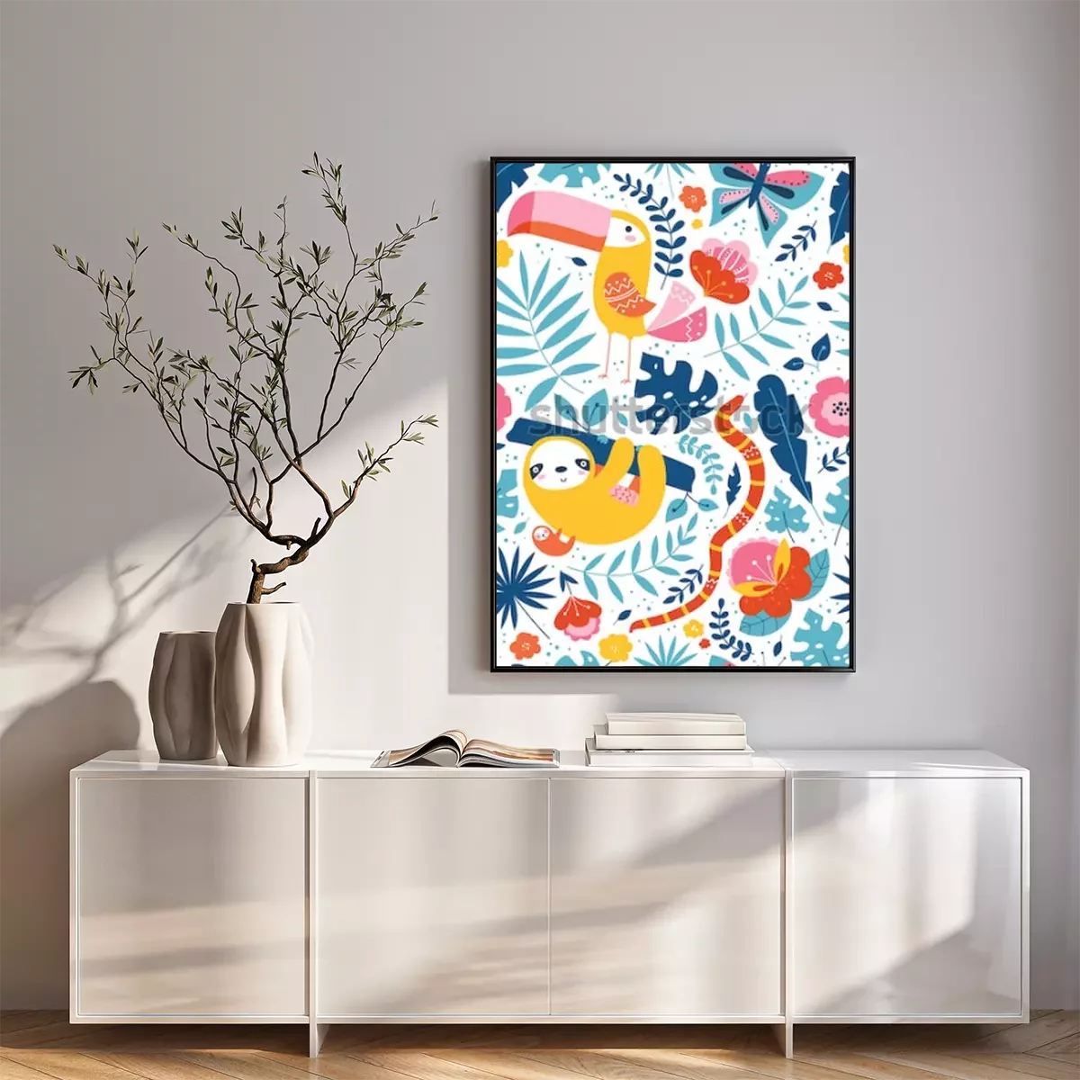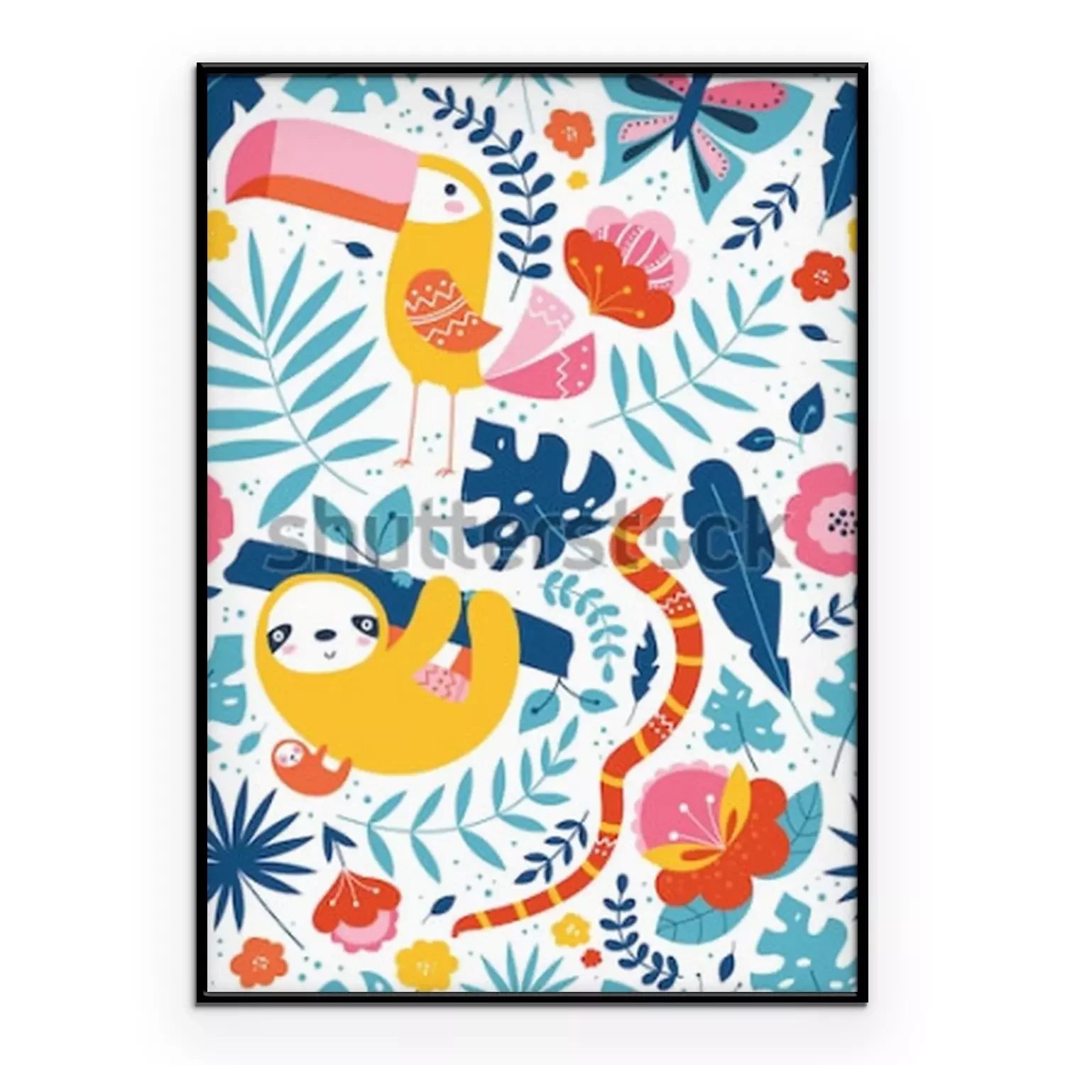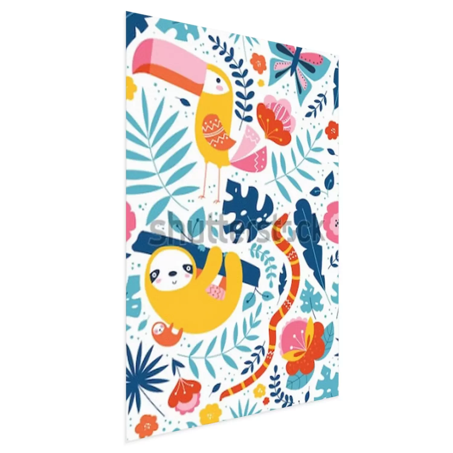 Poster: Tukan Faultier und Schlange zwischen exotischen Pflanzen