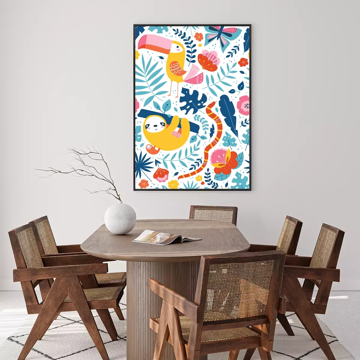 Poster Tukan Faultier und Schlange zwischen exotischen Pflanzen