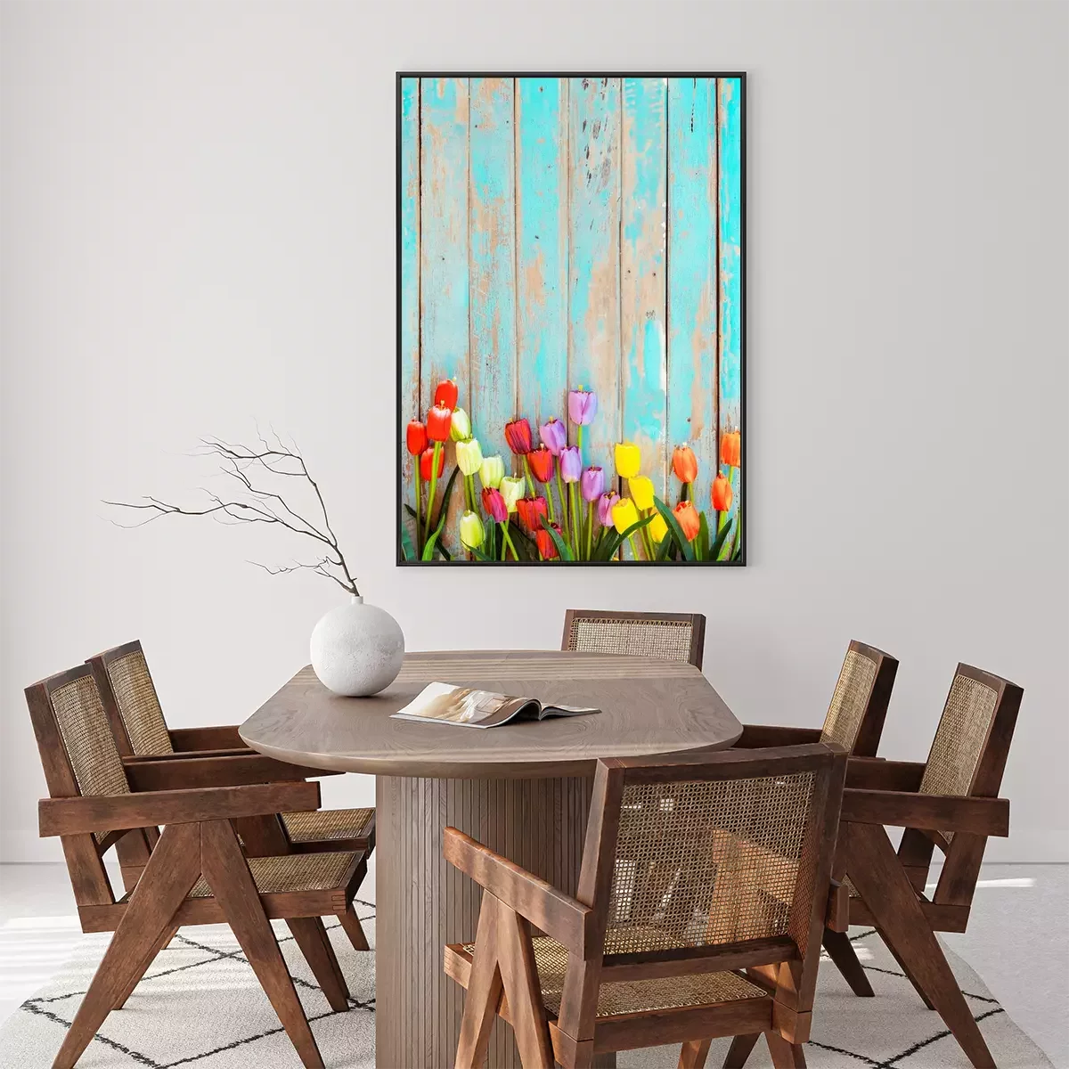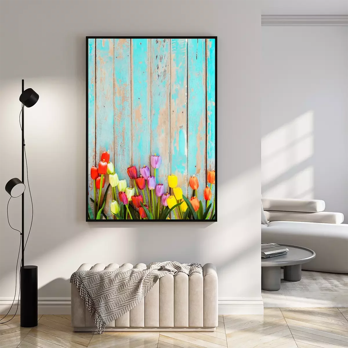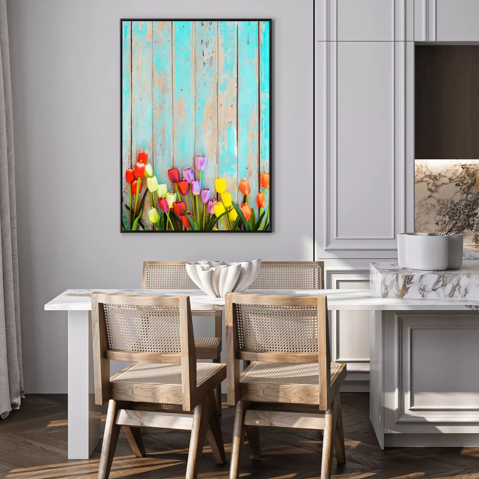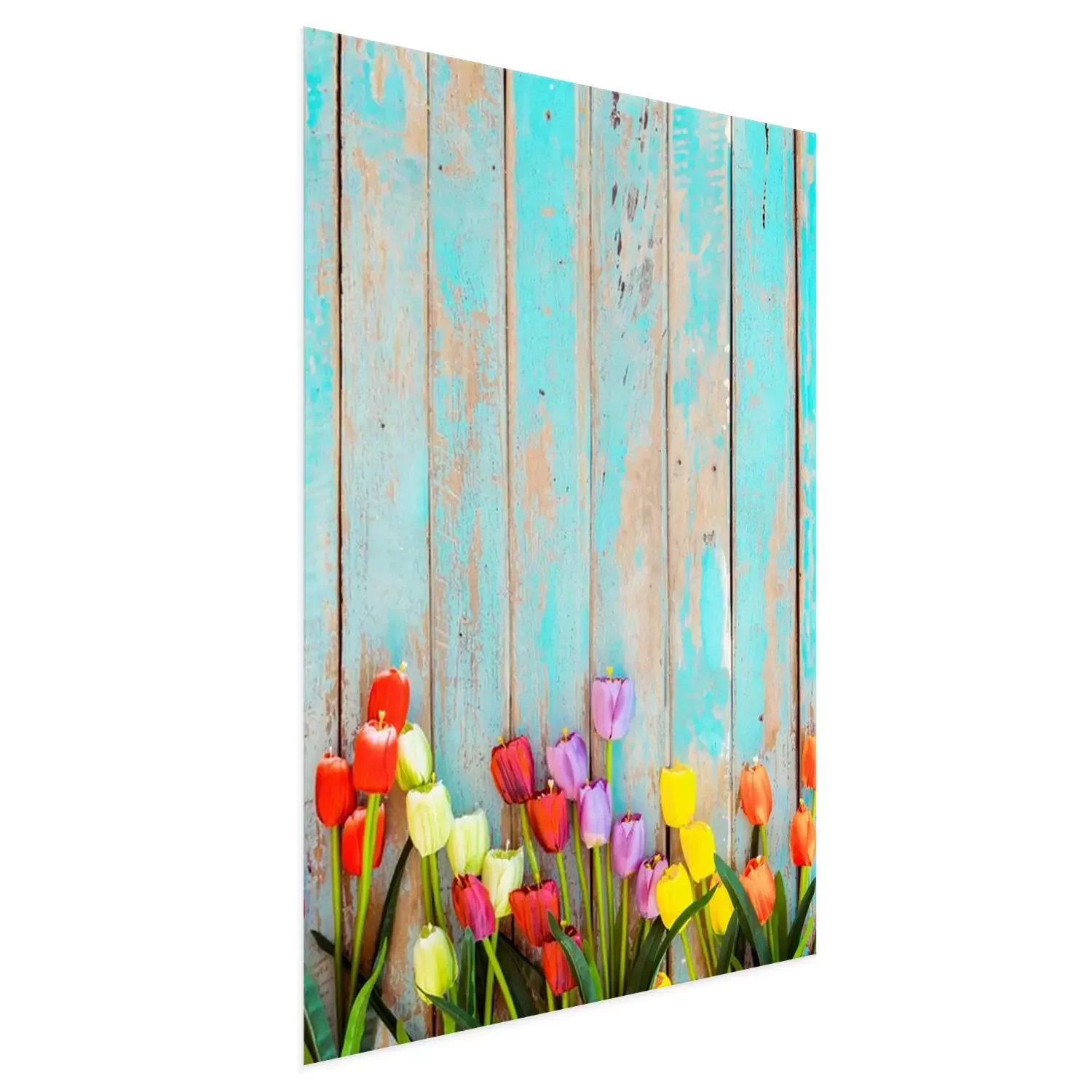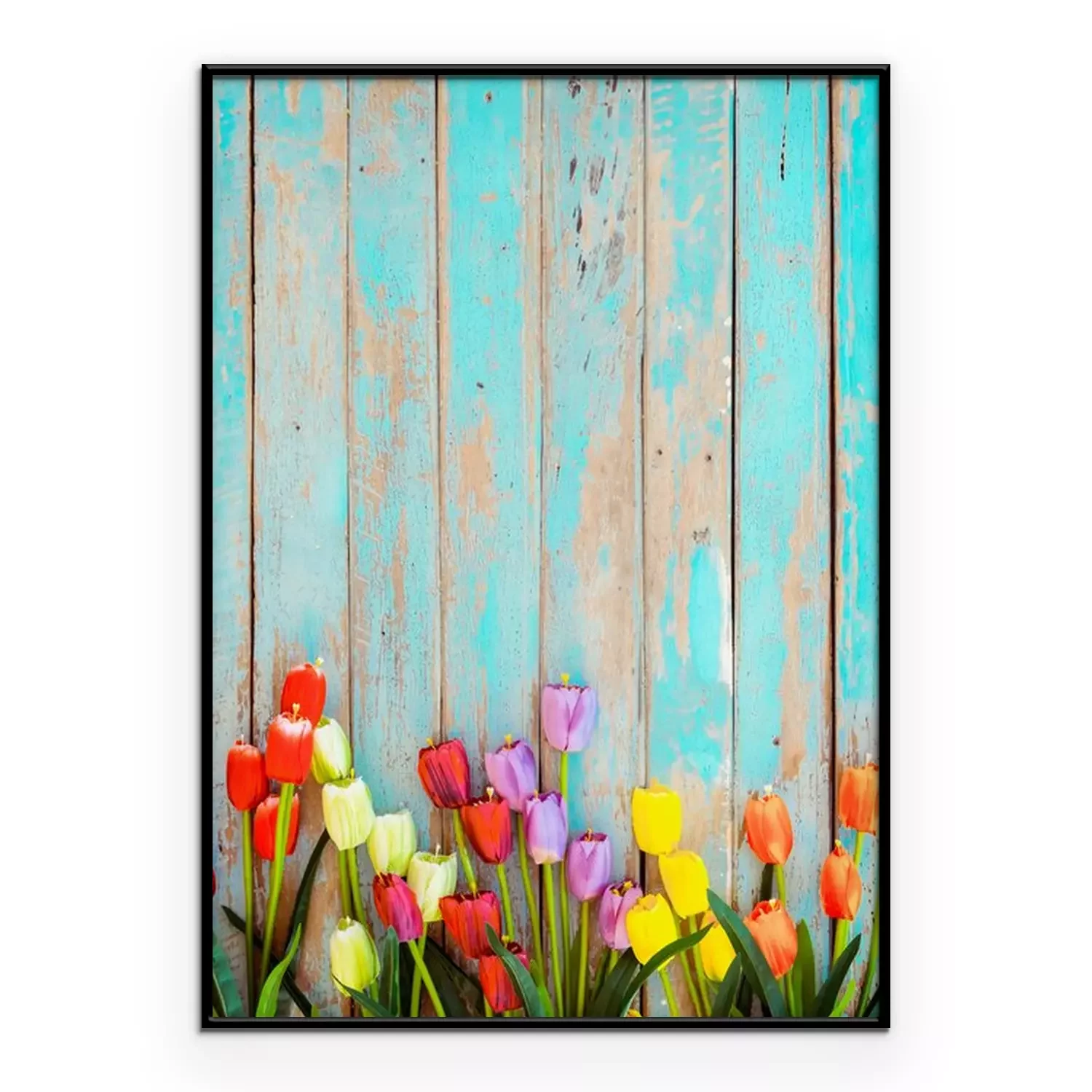 Poster: Tulpen auf dem Hintergrund von bemalten Tafeln