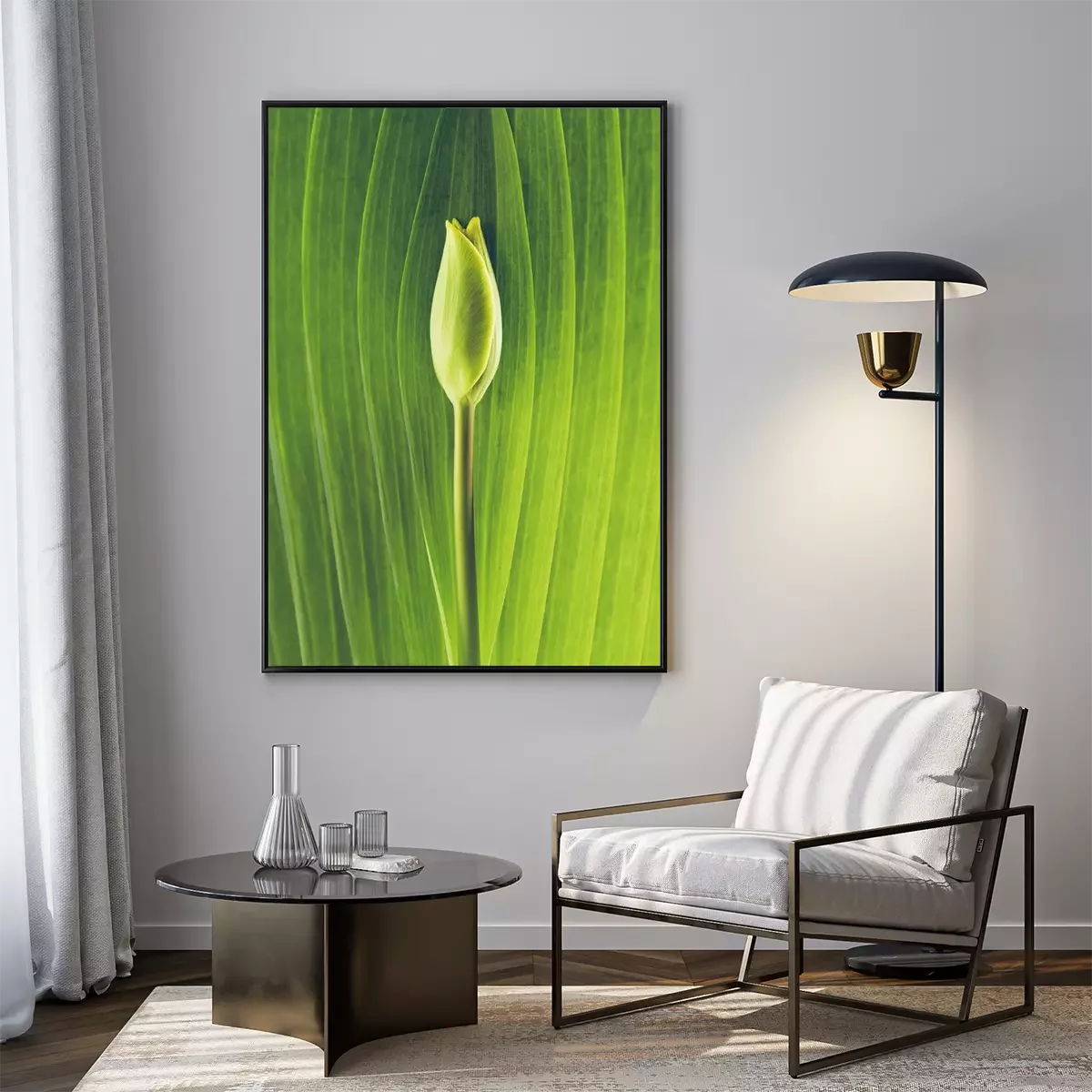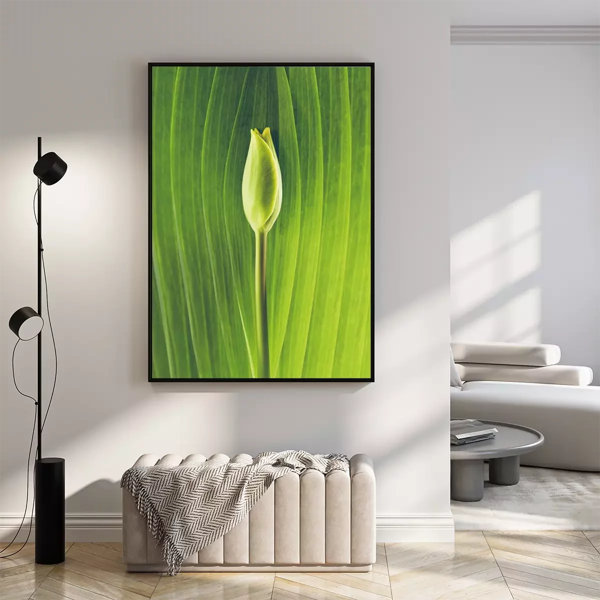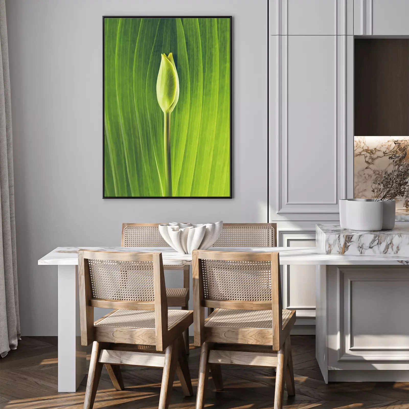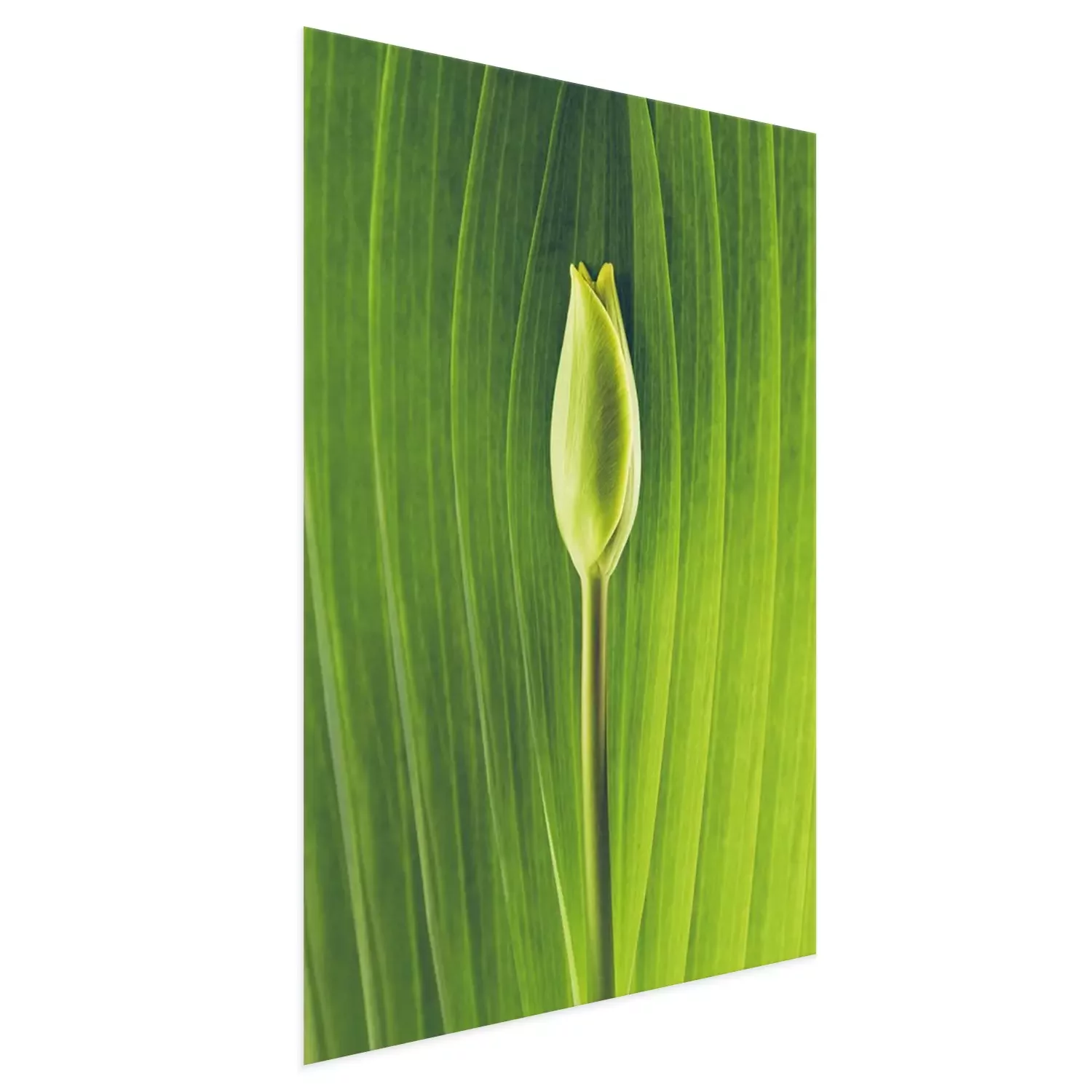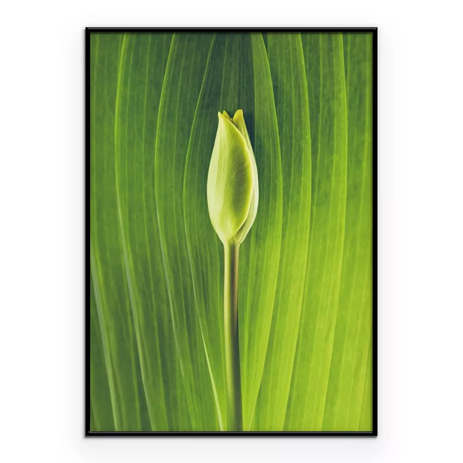 Poster: Tulpenkopf auf einem Blatthintergrund