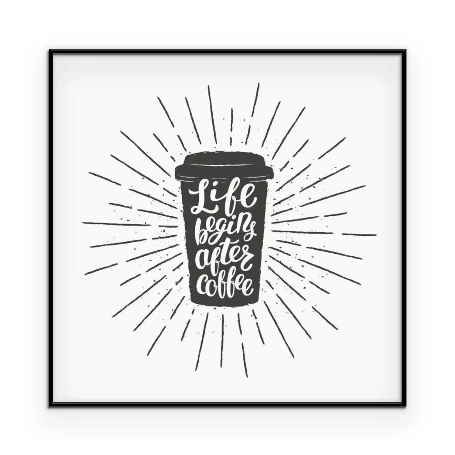 Poster: Typografie Schwarz-Weiß-Grafik mit Kaffee und Aufschrift