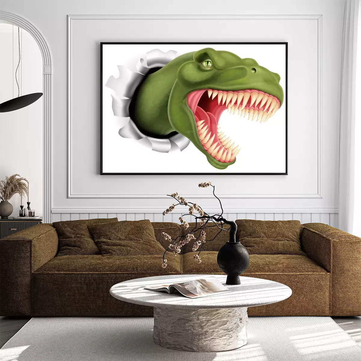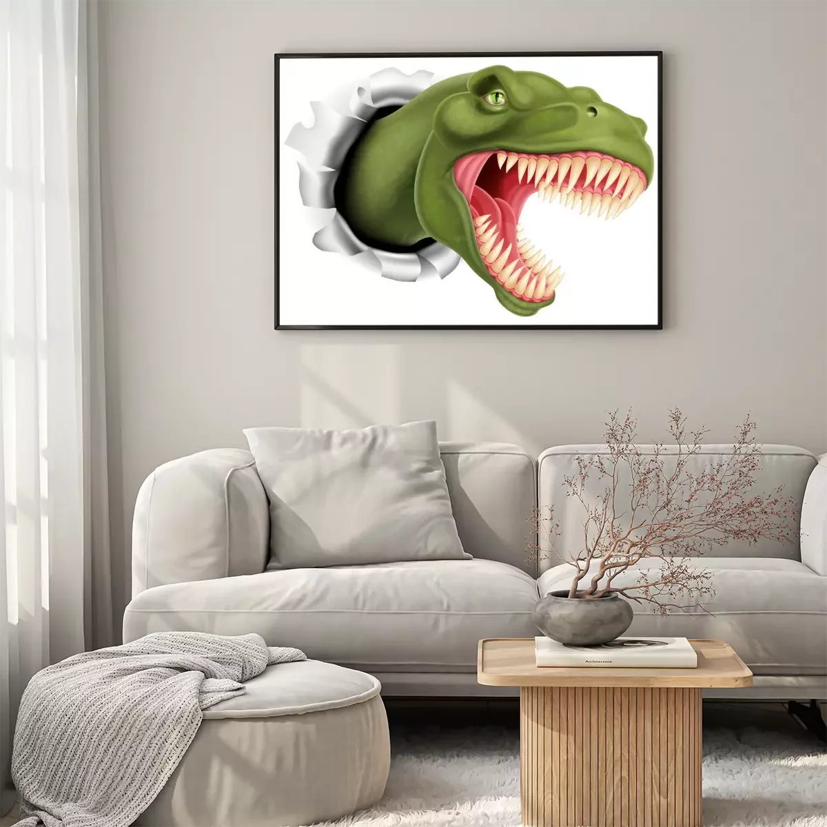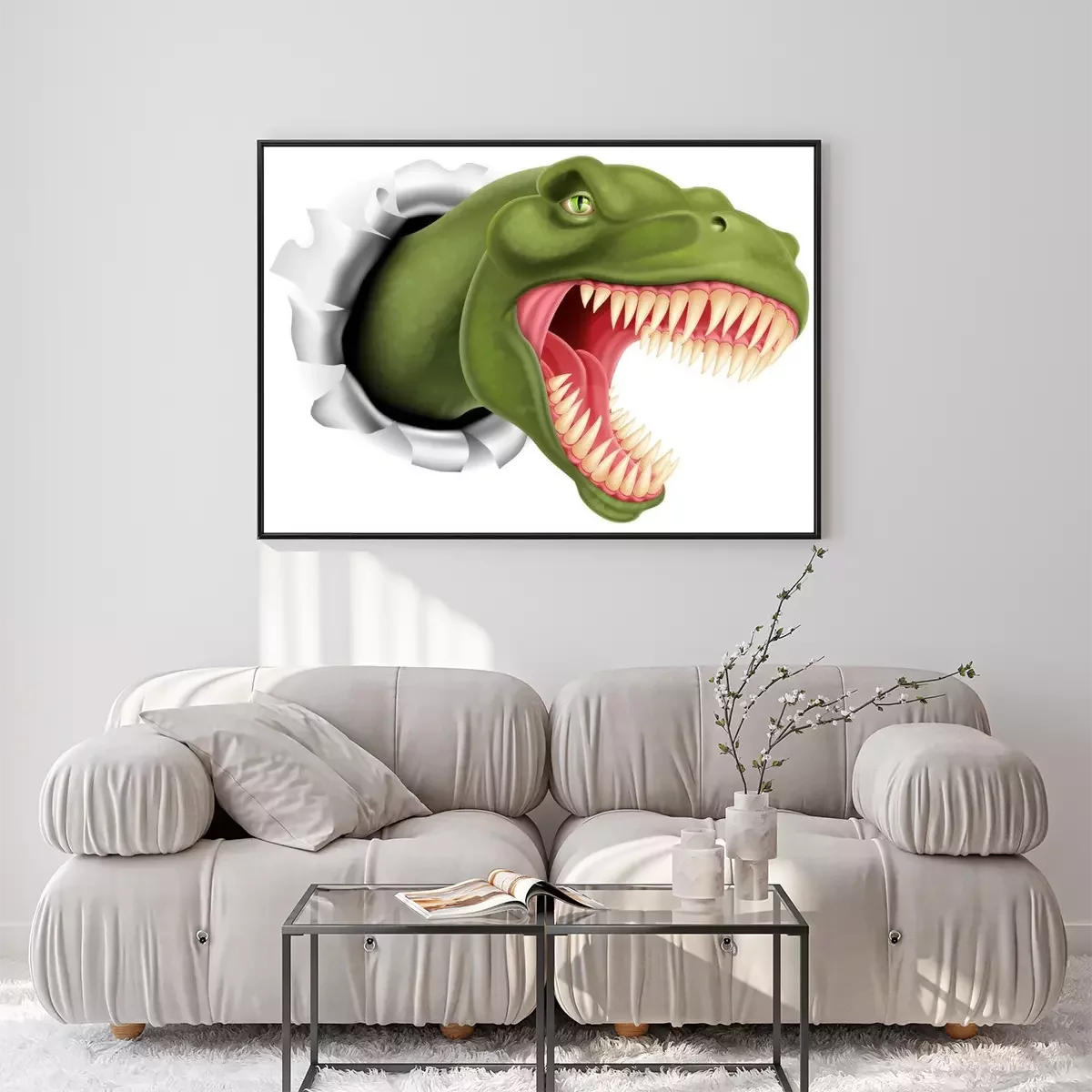 Poster: Tyrannosauruskopf, der aus einem Loch herausragt