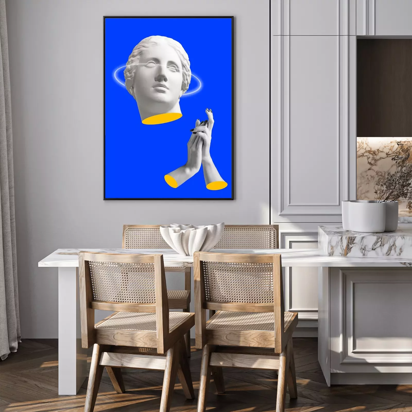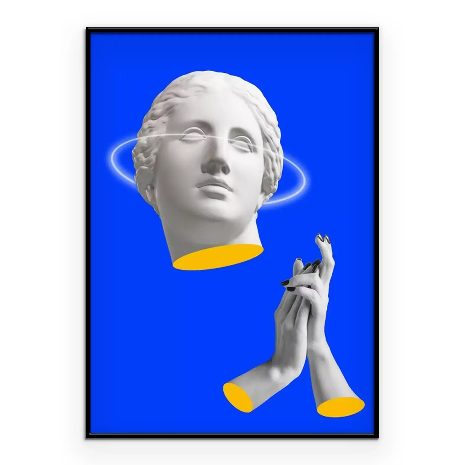 Modern conceptual art poster with ancient statue of bust of Venus. Collage of contemporary art.