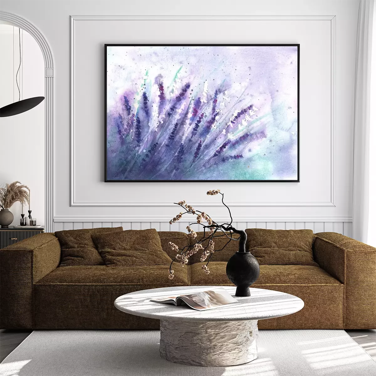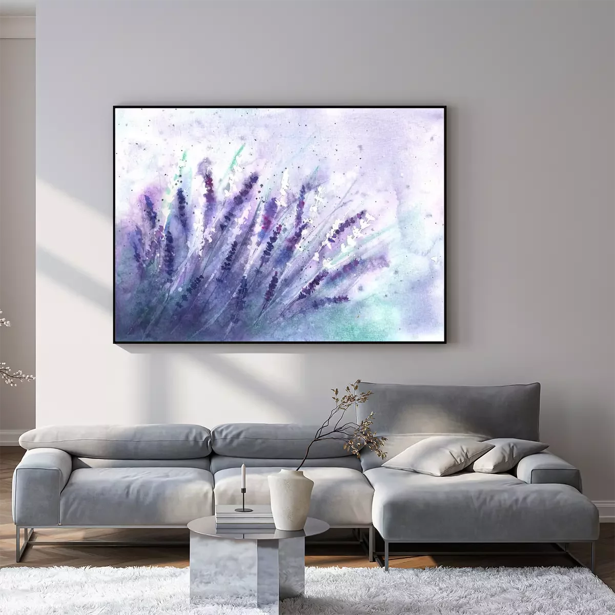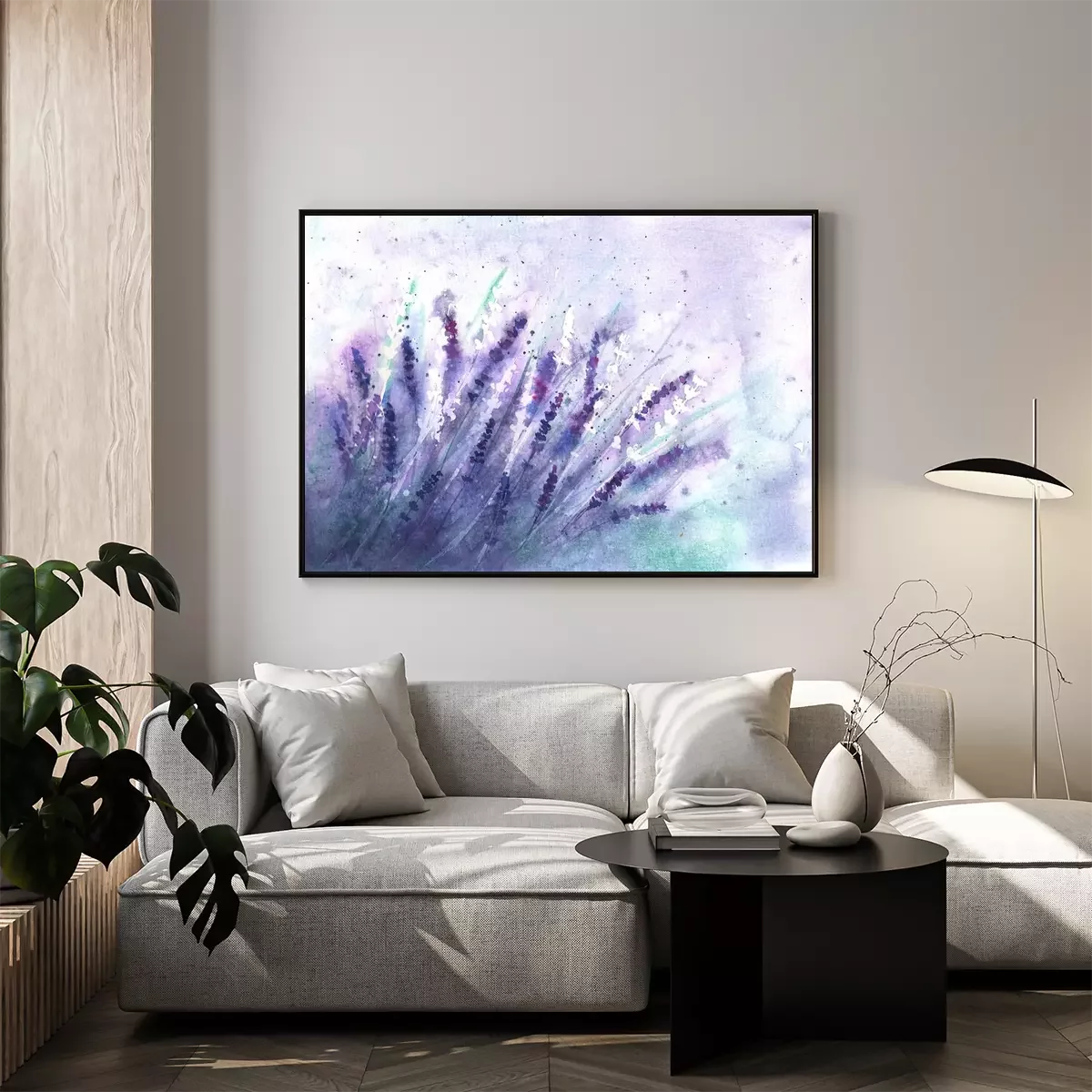 Lavendelblüten am Aquarell-Hintergrund in Violetttönen
