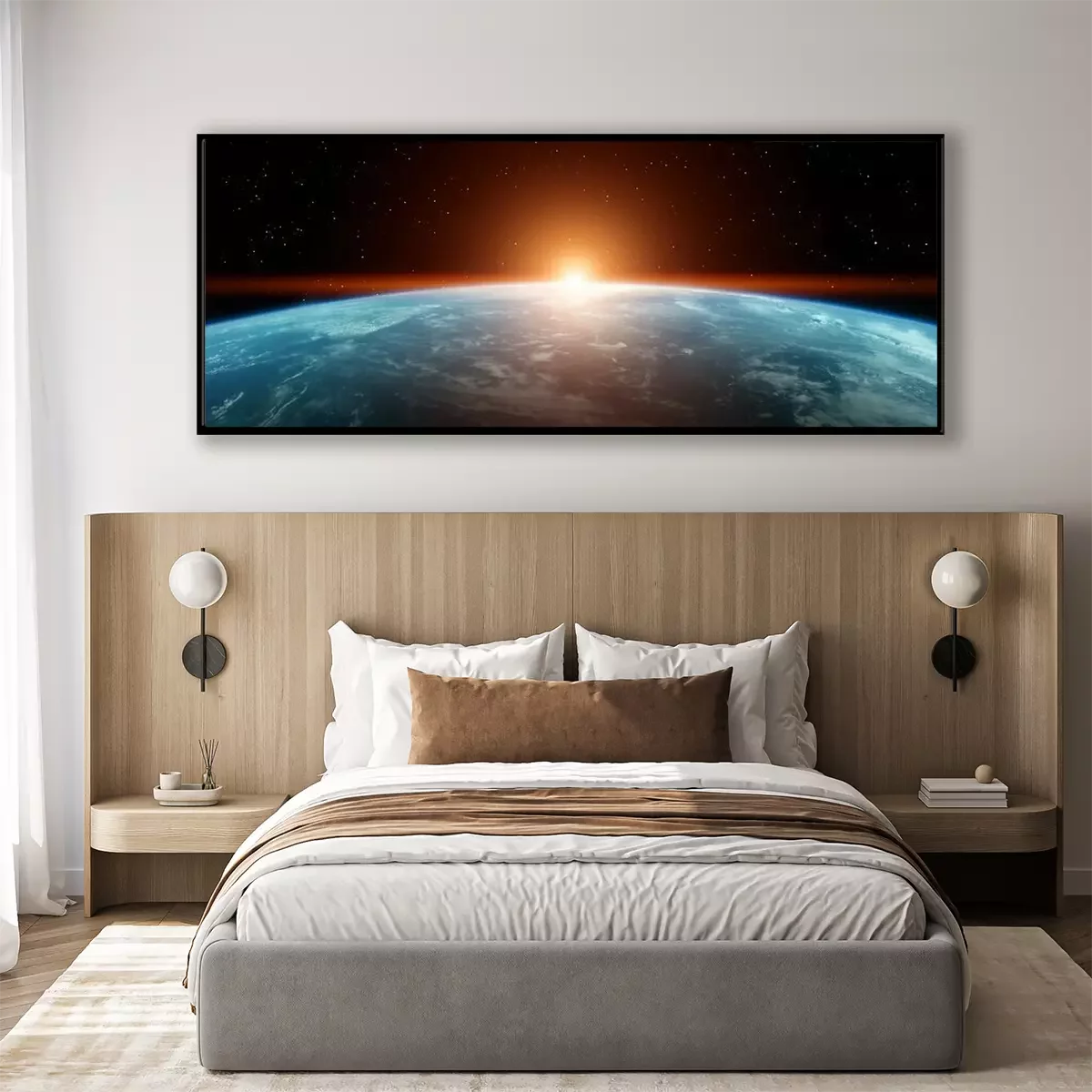 Poster: Unser Planet und die Sonne am Horizont sichtbar