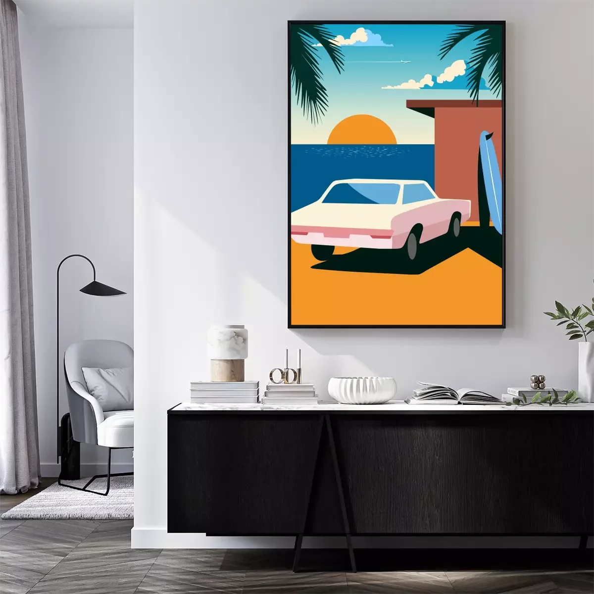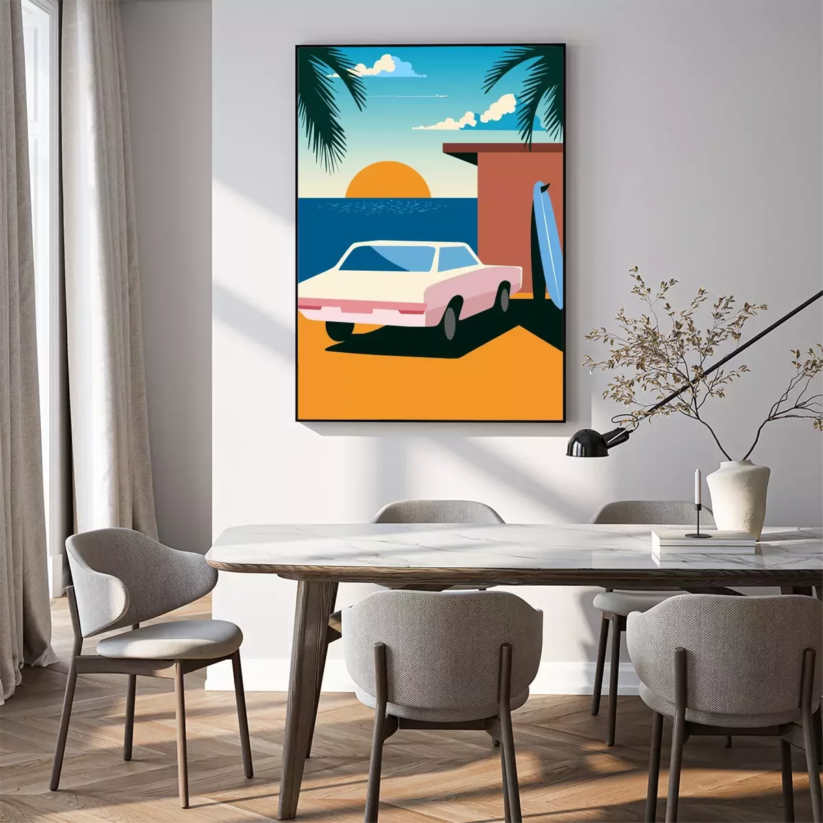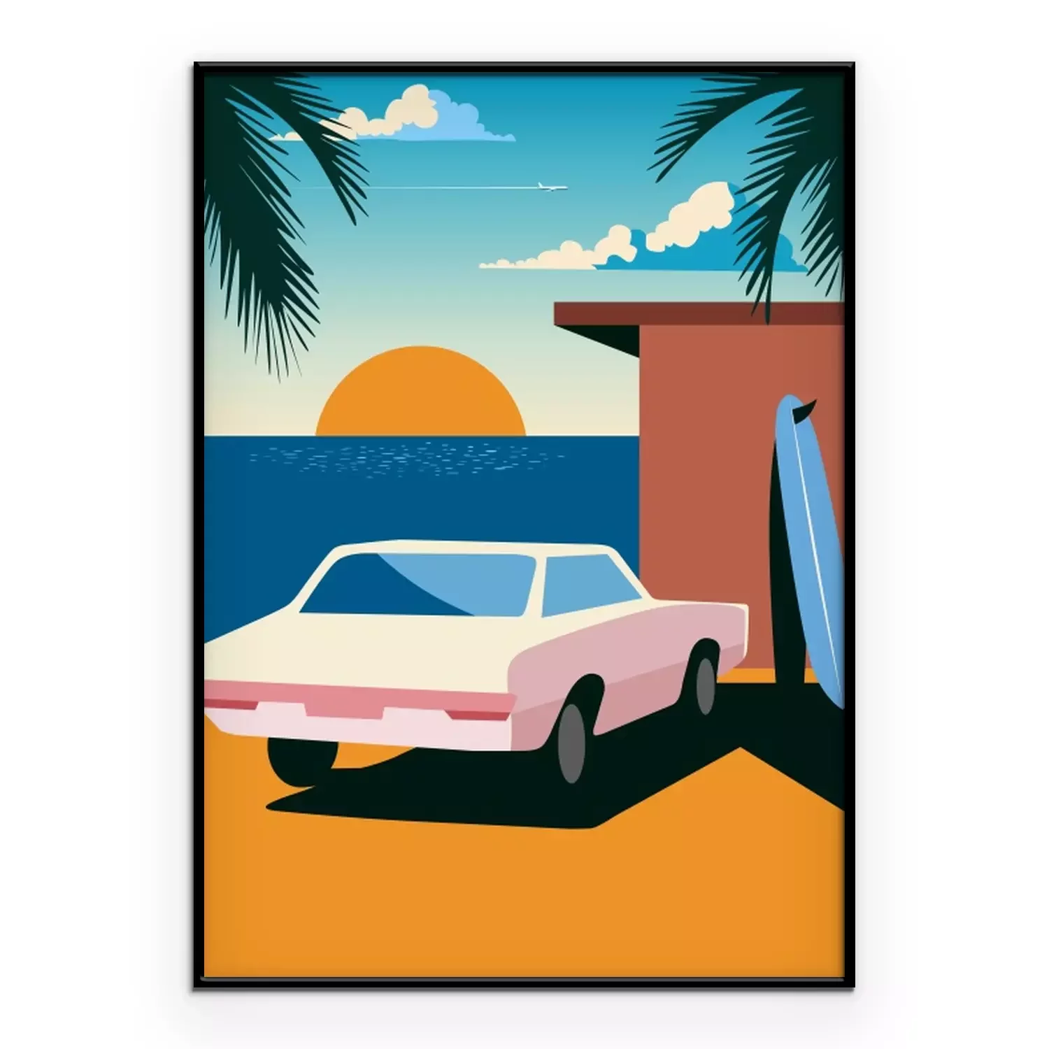 Poster: Urlaubsstimmung mit einem rosa Auto