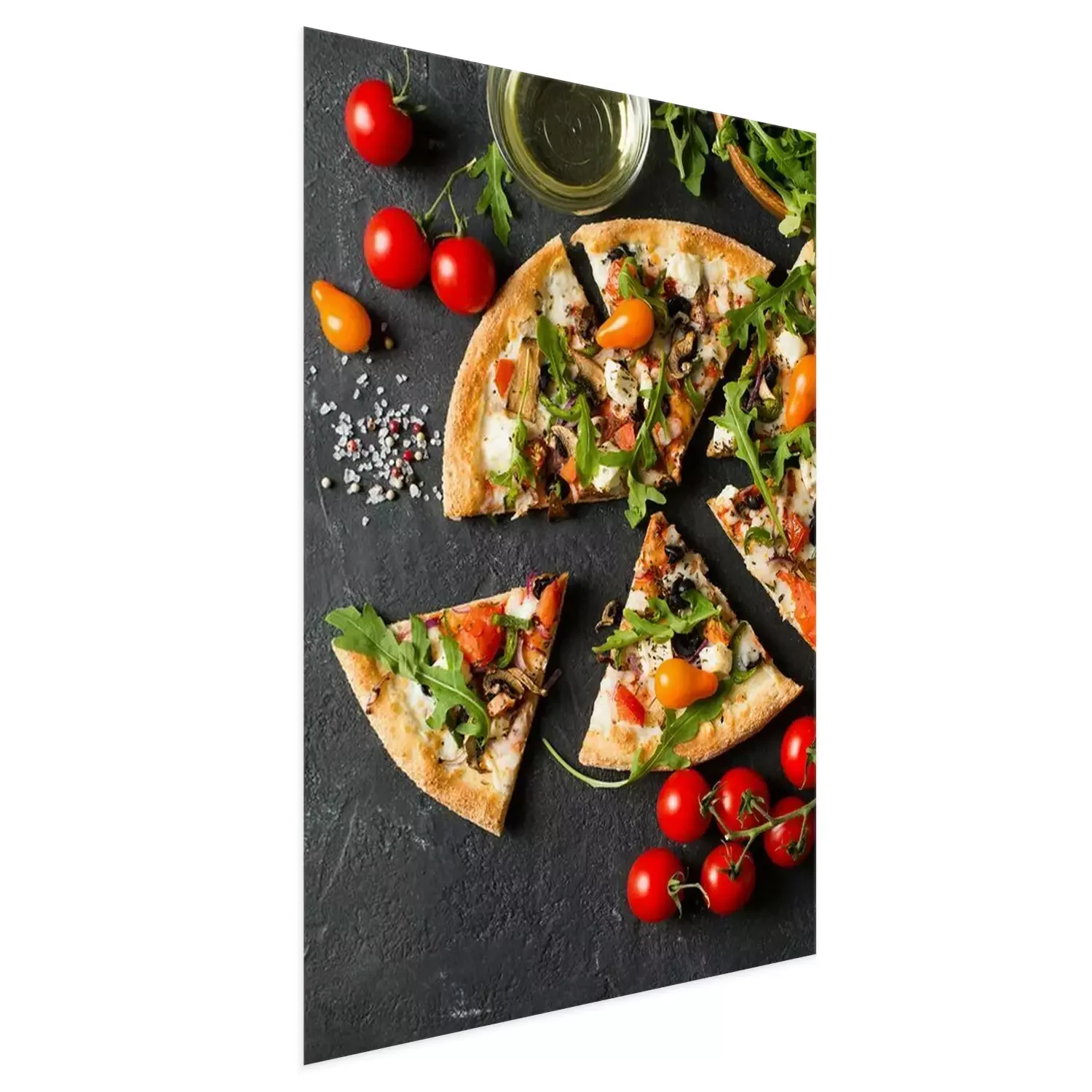 Poster: Vegetable italian pizza with tomatos on black background