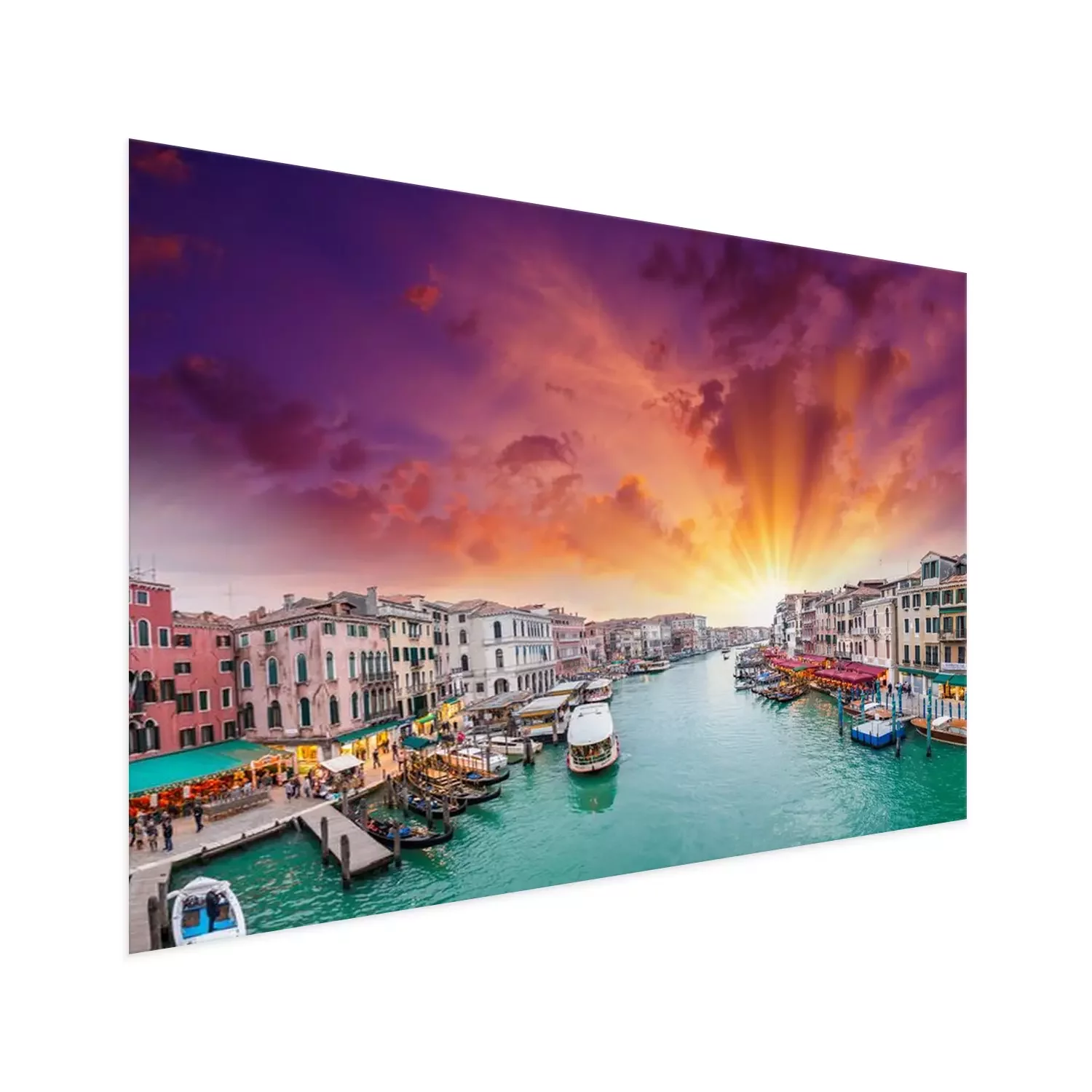 Poster Venedig bunte Gondeln und Sonnenuntergang