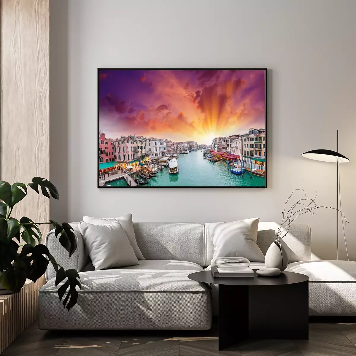 Poster: Venedig bunte Gondeln und Sonnenuntergang
