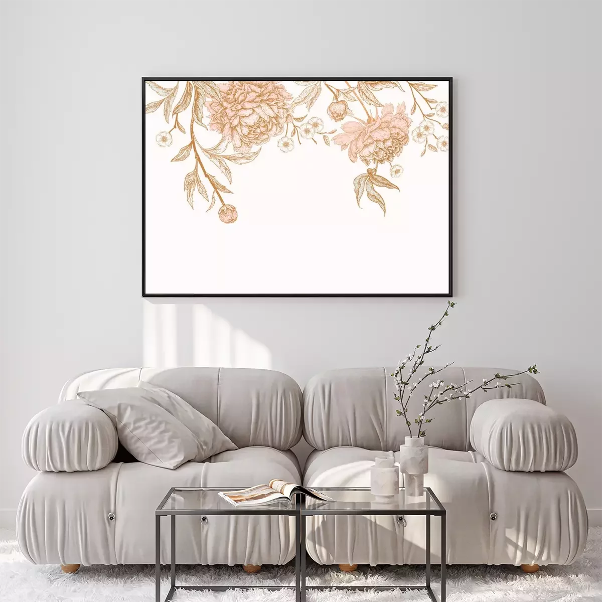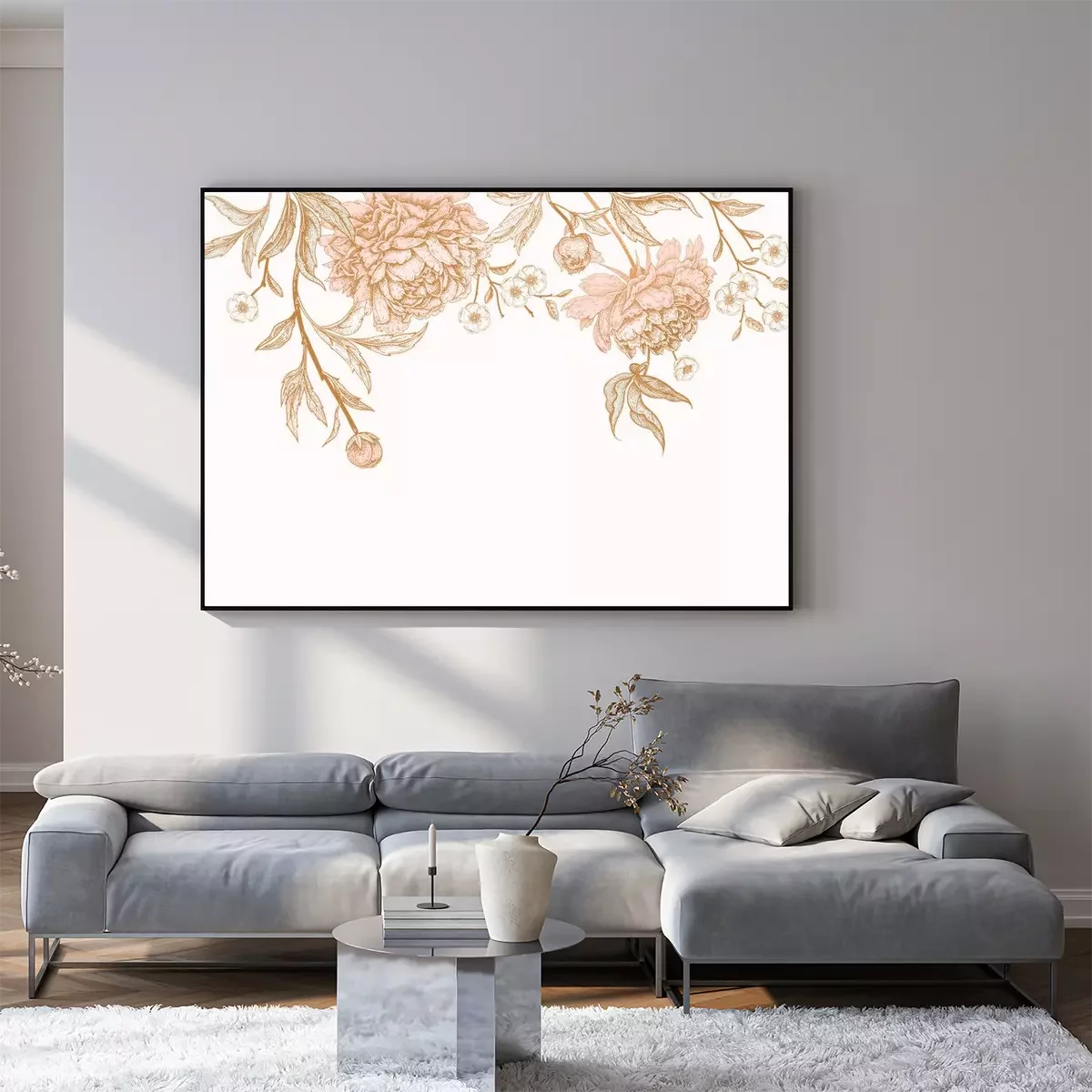 Poster: Vergoldete Pfingstrosen und kleine Blumen