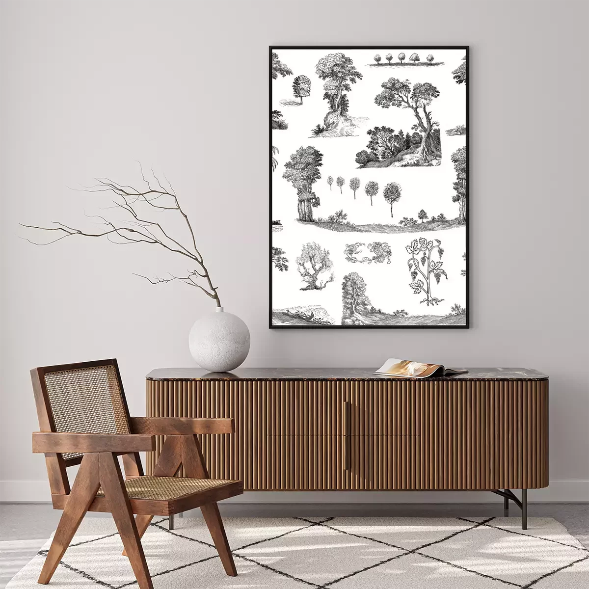 Poster Verschiedene Baum- und Pflanzenarten Illustration