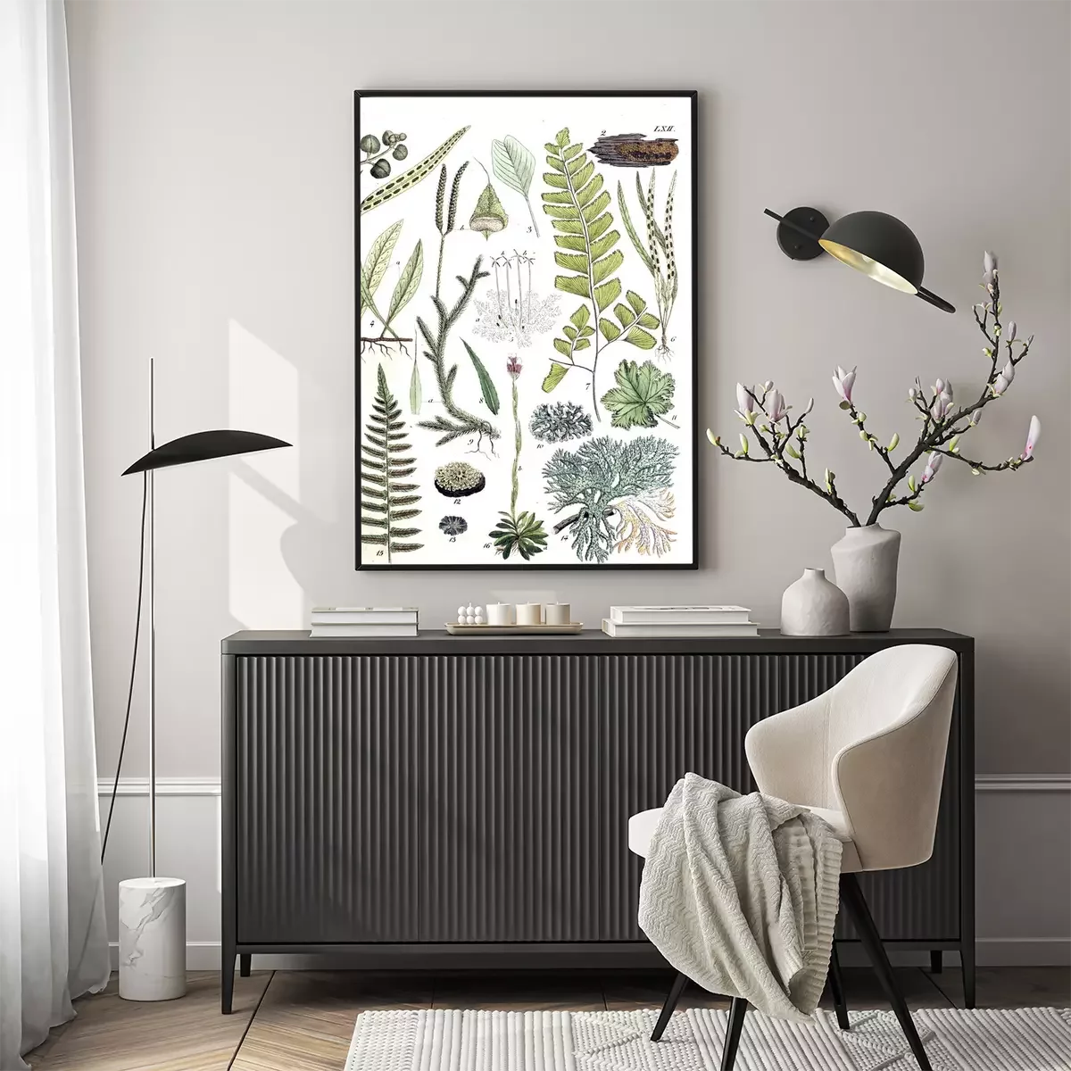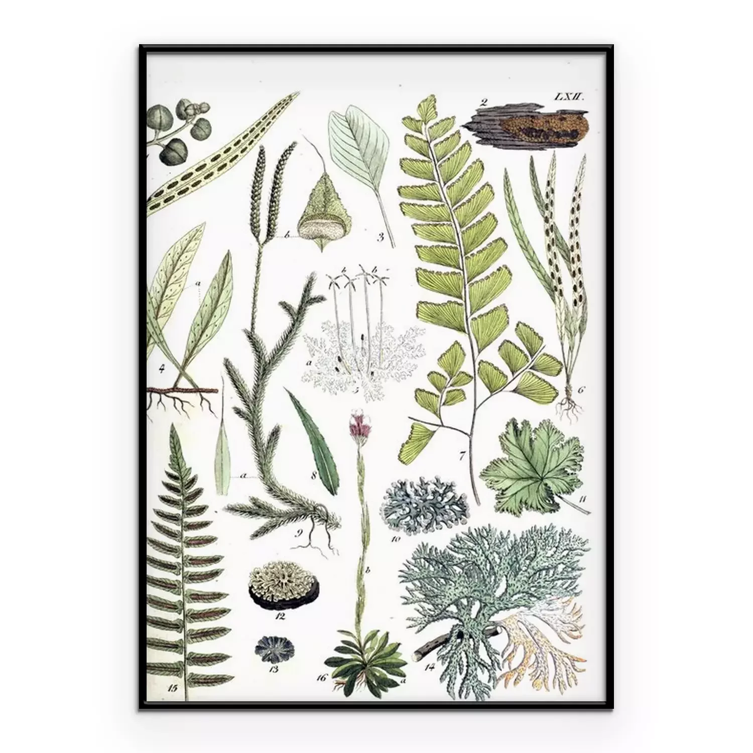 Poster: Verschiedene Pflanzenarten in Grüntönen