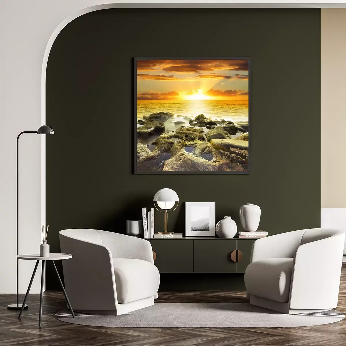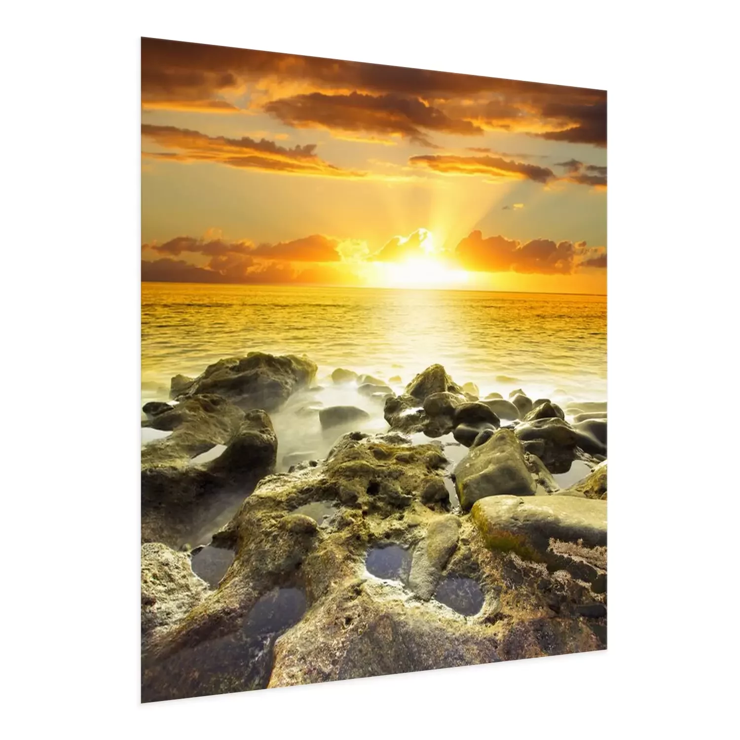Poster: Verstreute Sonnenstrahlen auf dem Hintergrund des Meeres
