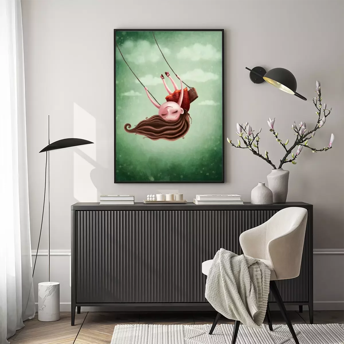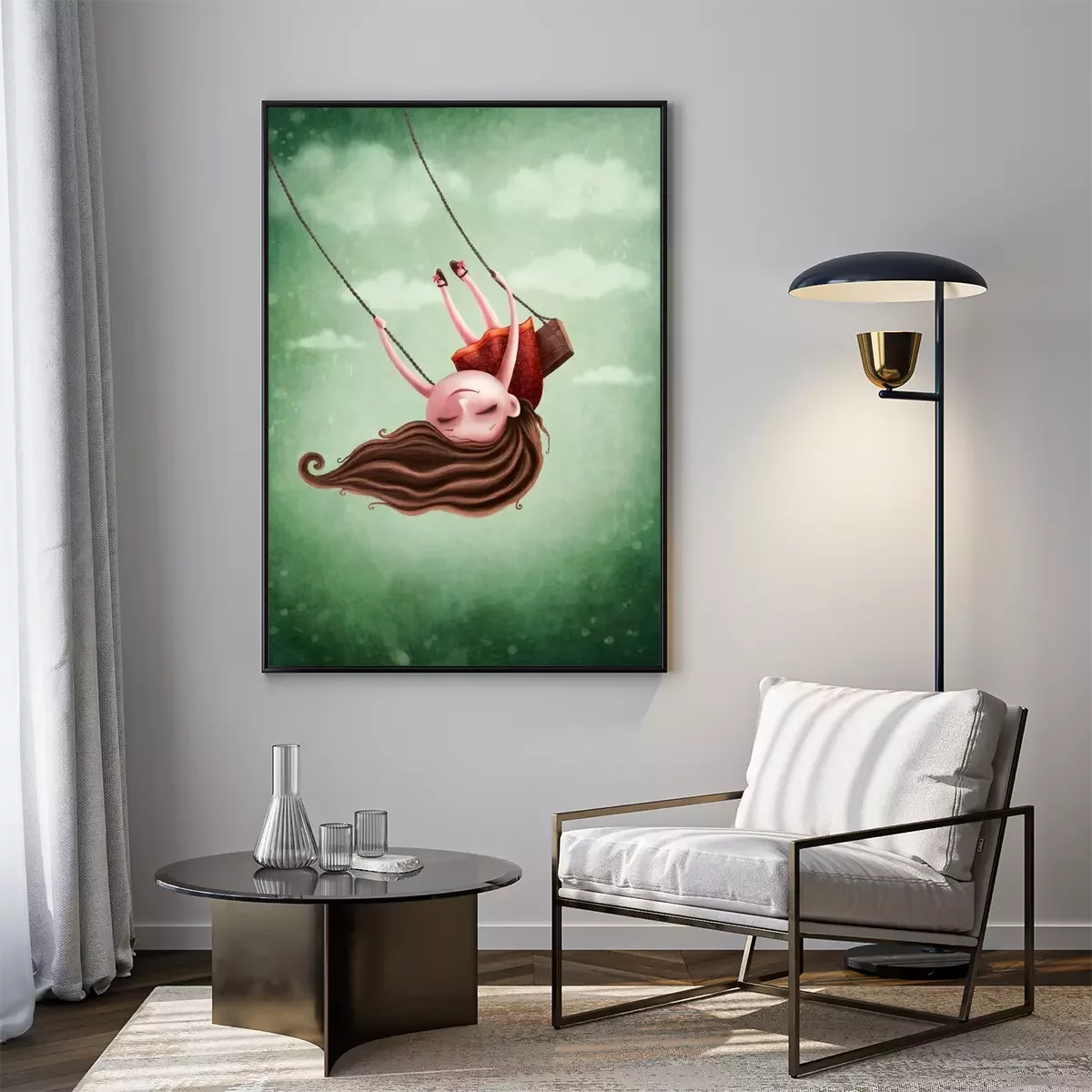 Poster Verträumtes Mädchen auf einer Schaukel