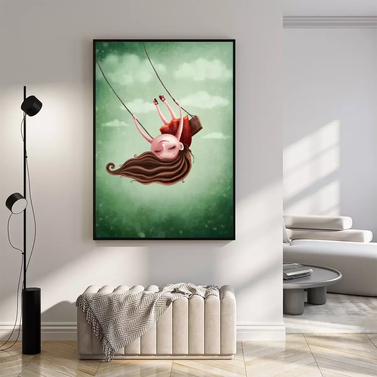 Poster: Verträumtes Mädchen auf einer Schaukel