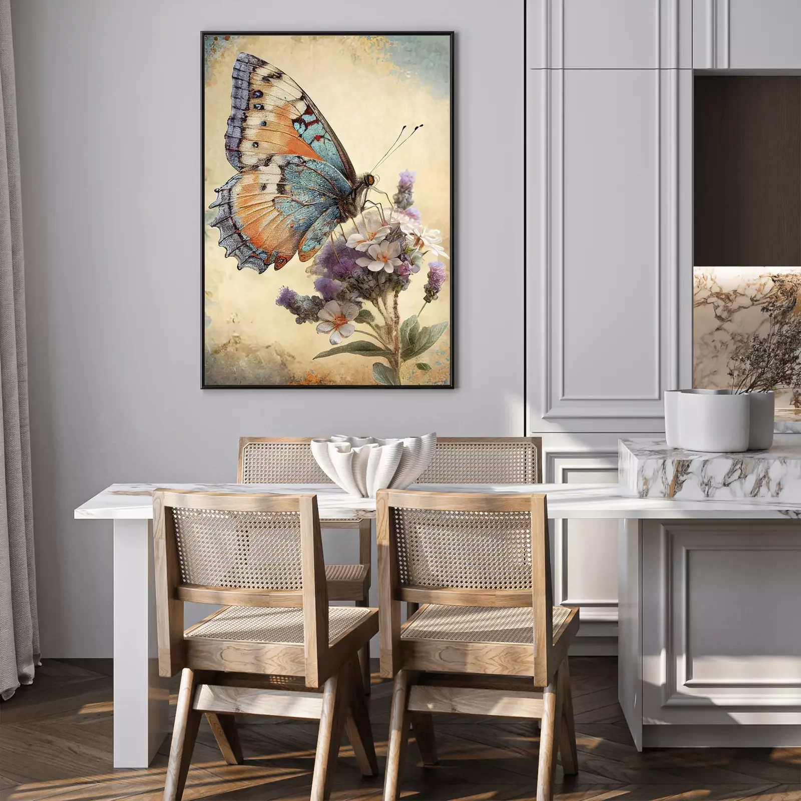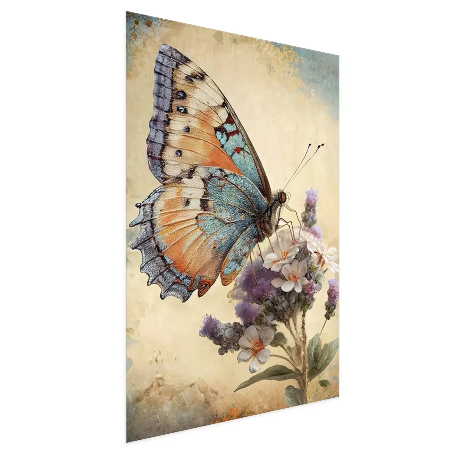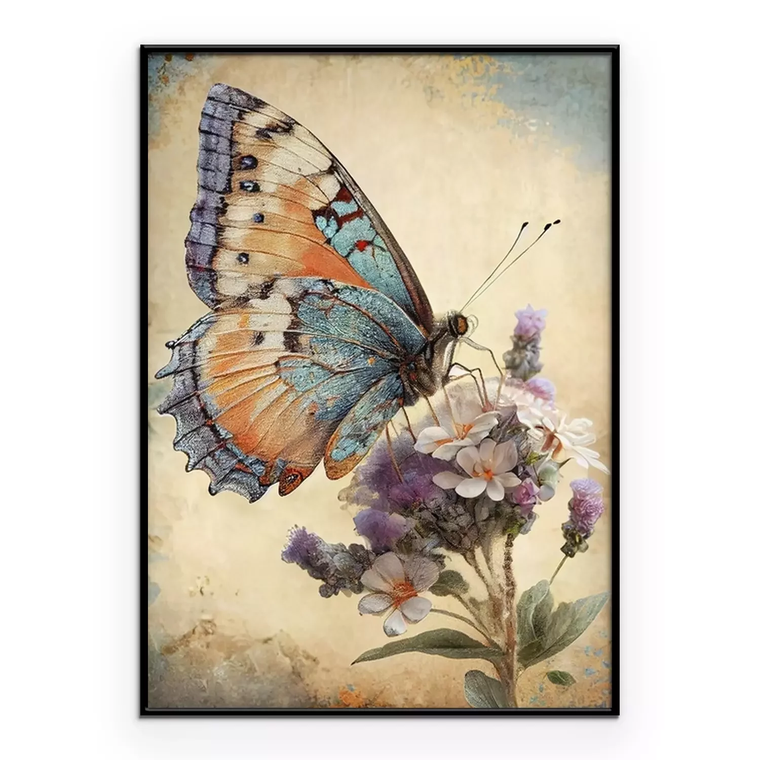 Poster: vintage background with butterfly rose flower shabby chic design style floral