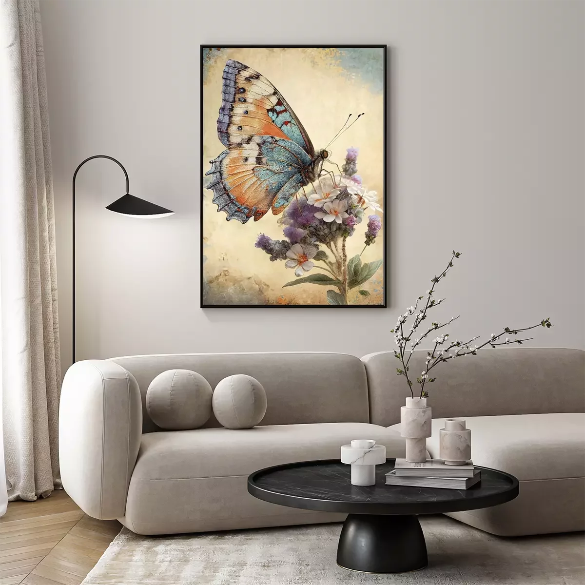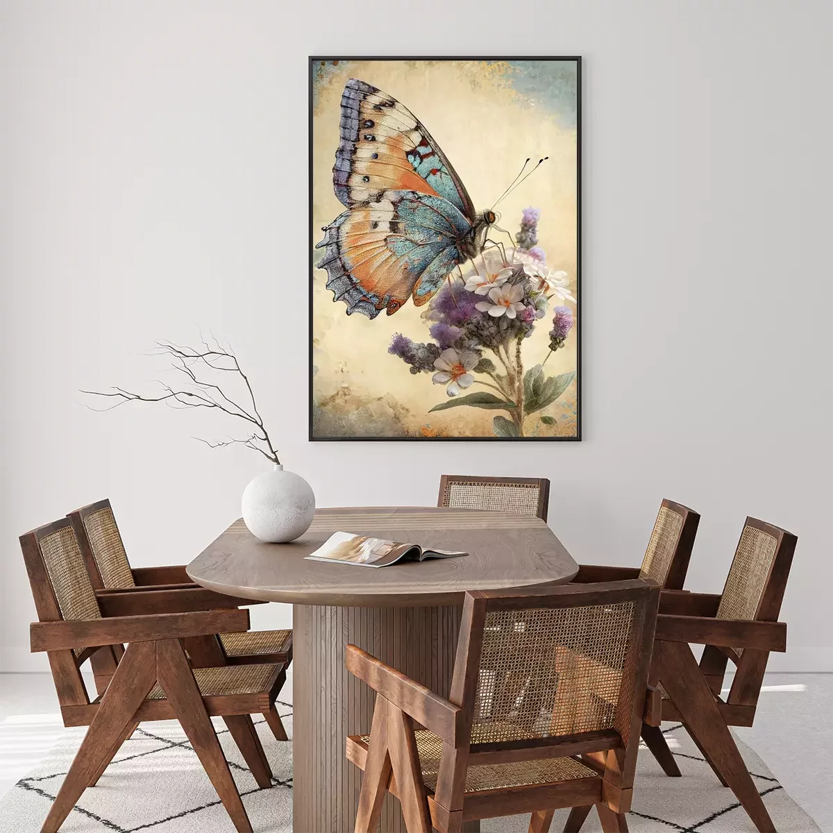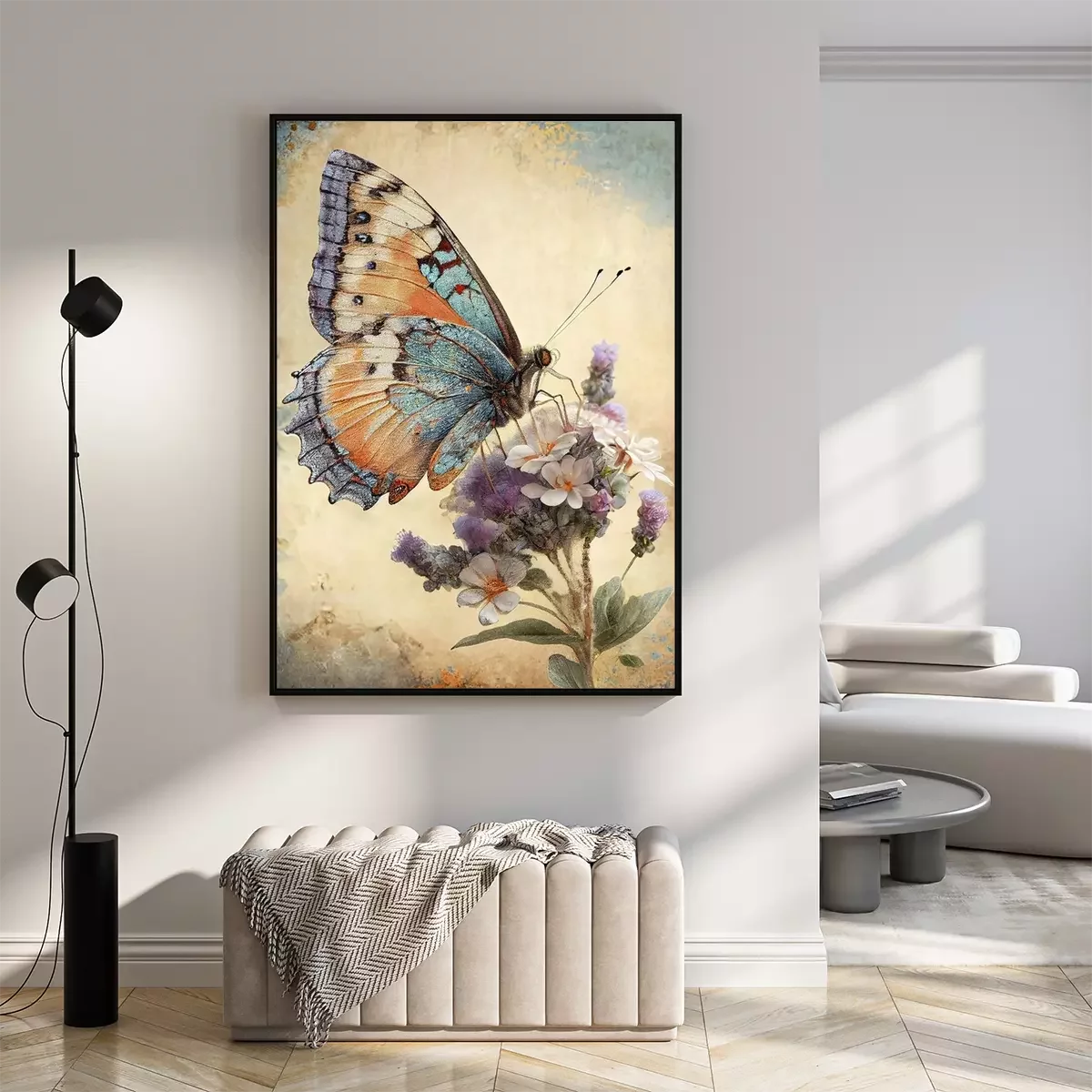 Poster vintage background with butterfly rose flower shabby chic design style floral