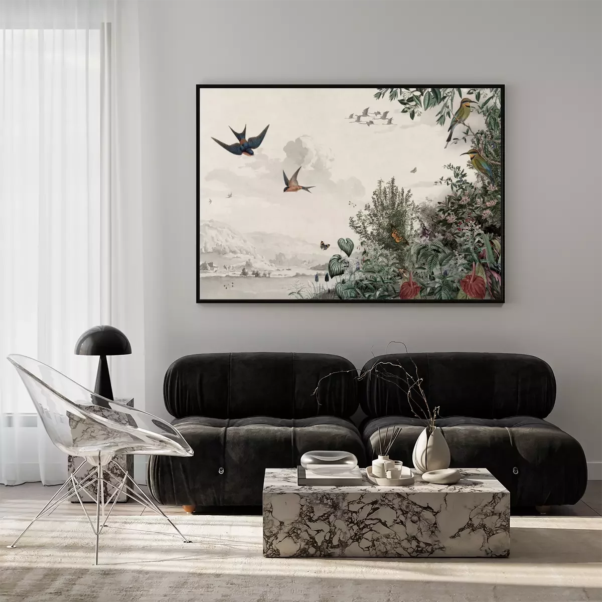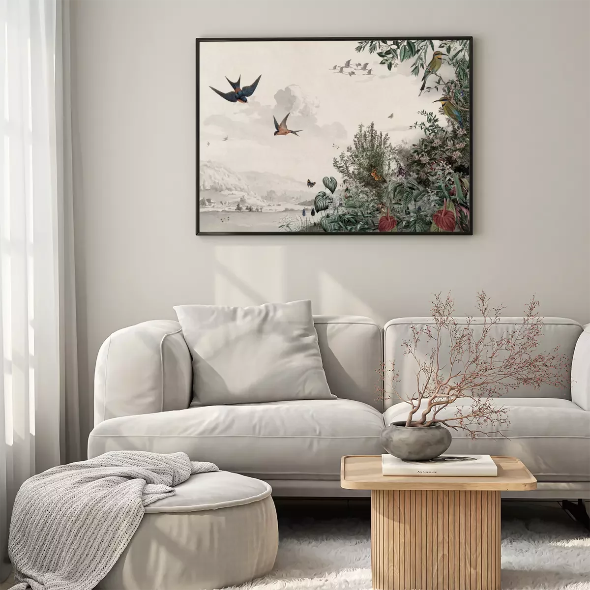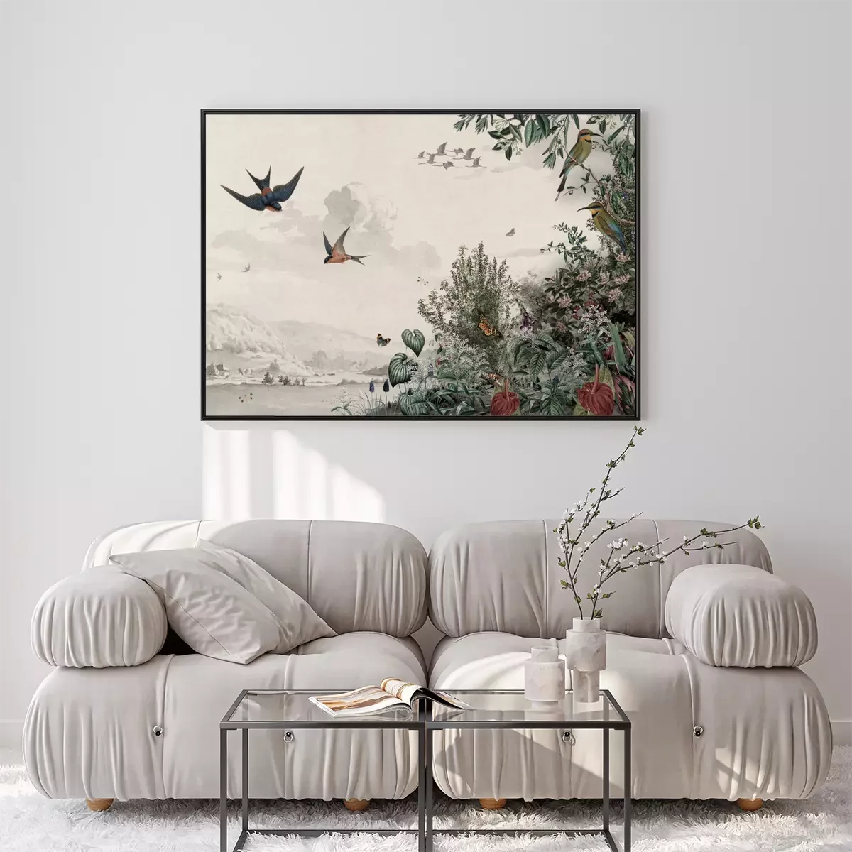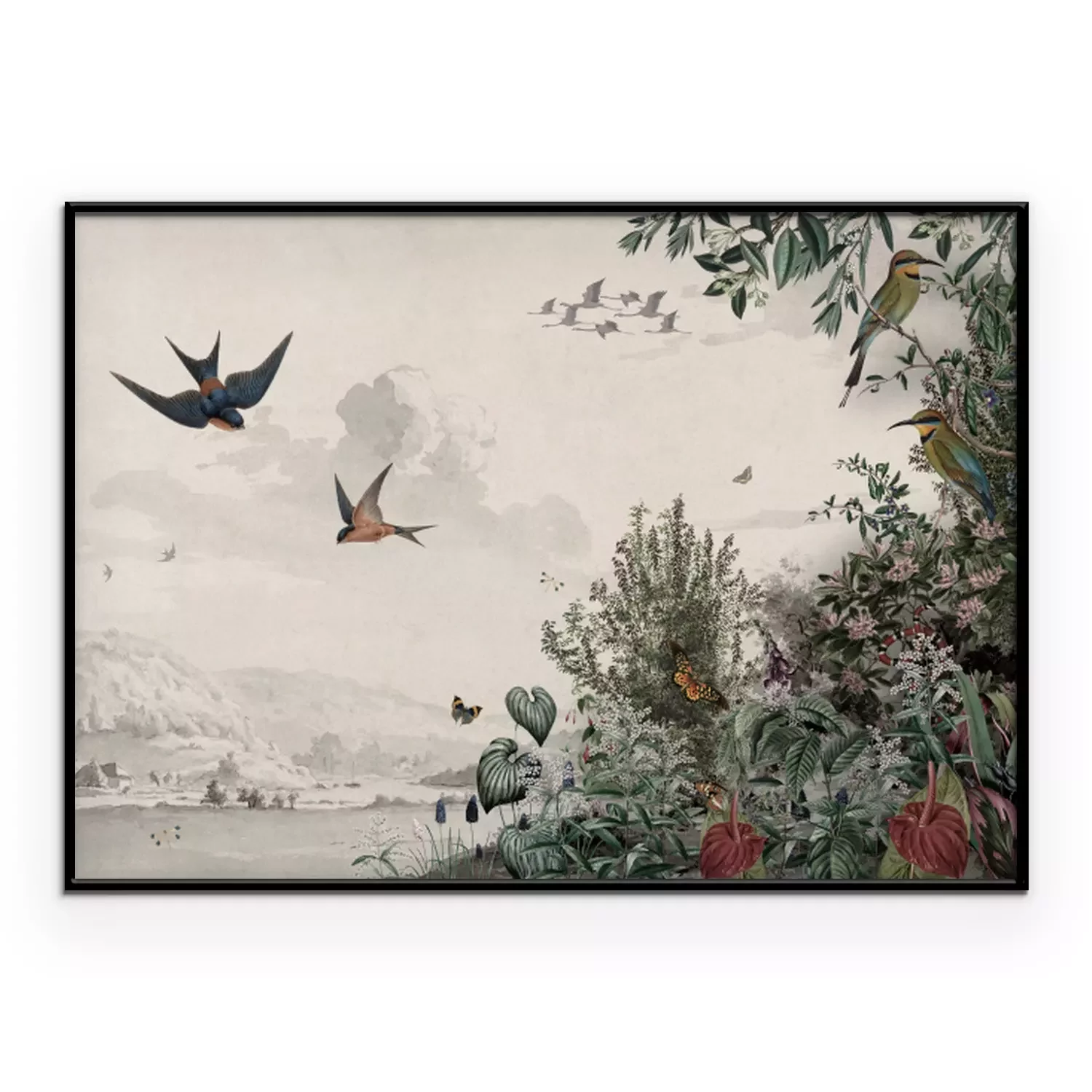 Poster Vintage Illustration von Wildpflanzen und Vögeln