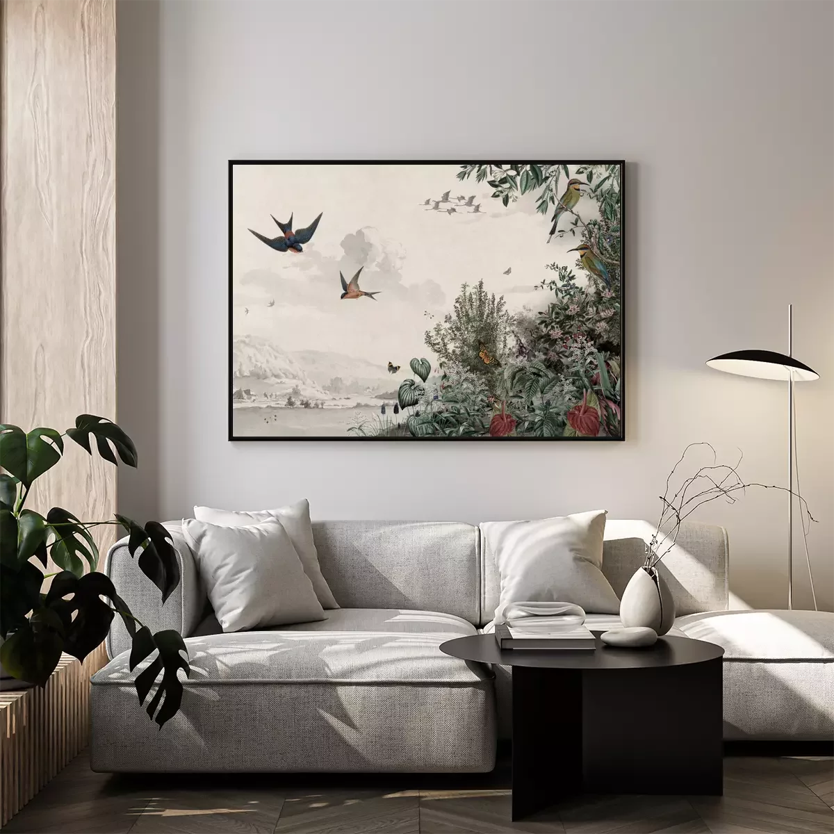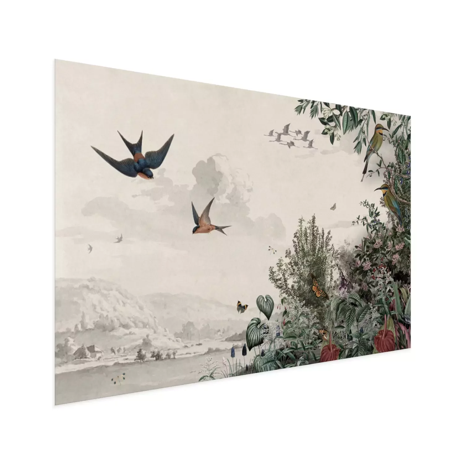 Poster: Vintage Illustration von Wildpflanzen und Vögeln