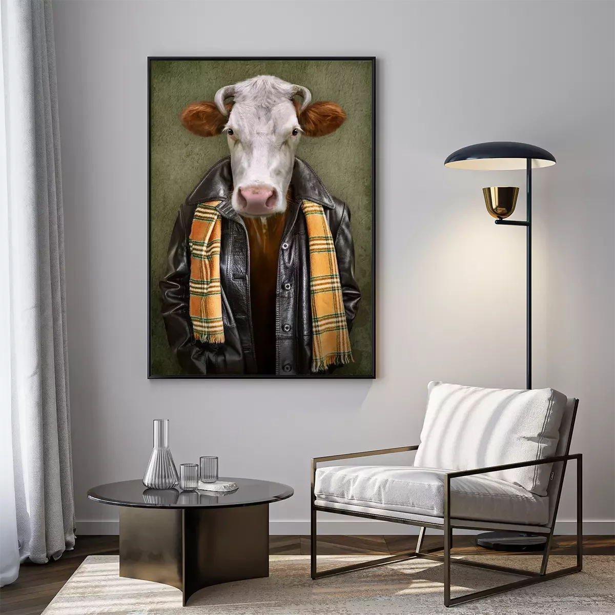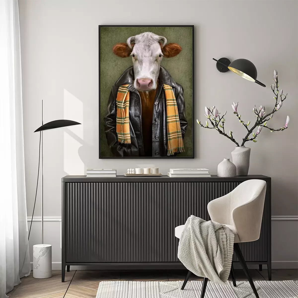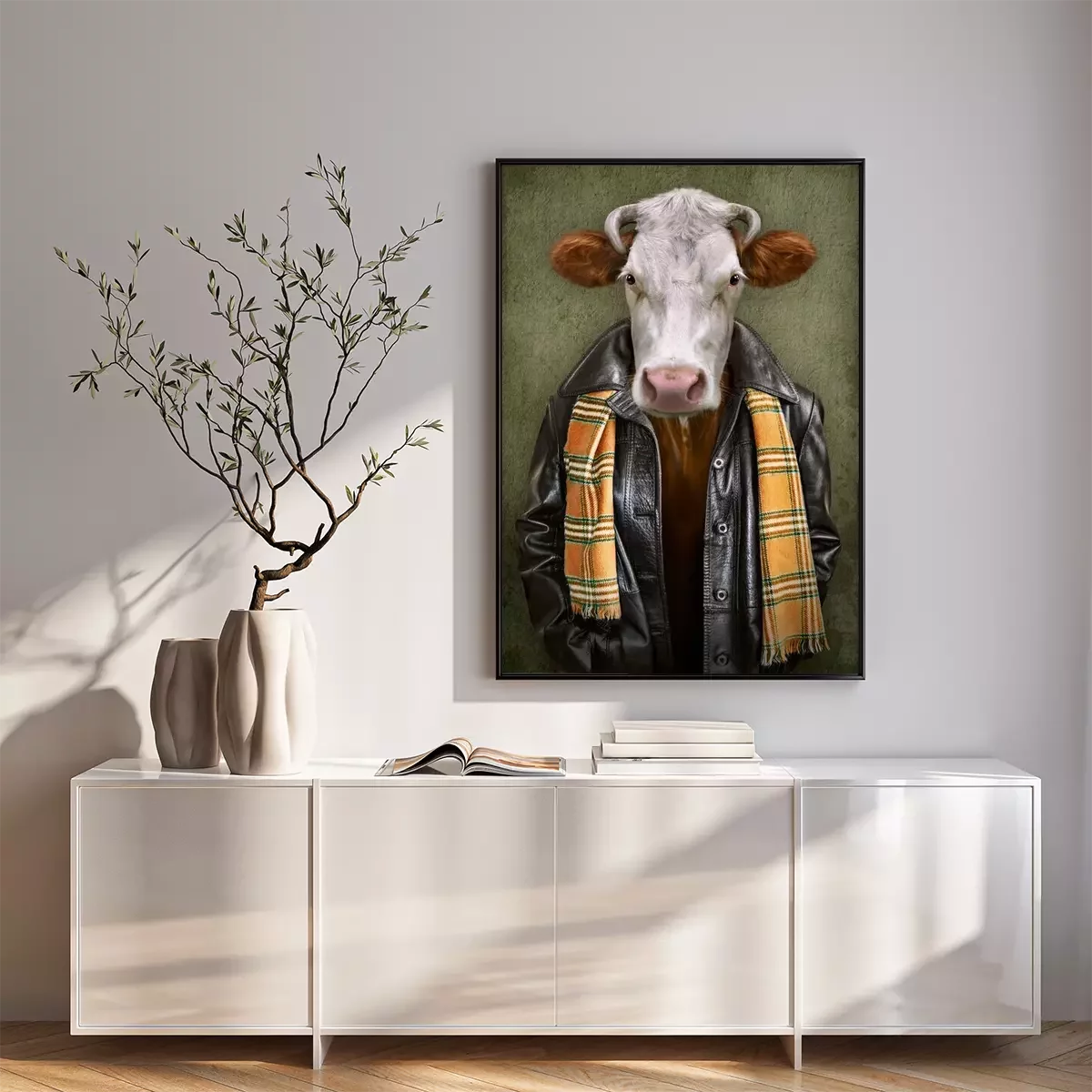 Poster: Vintage Konzept einer Kuh in Kleidung