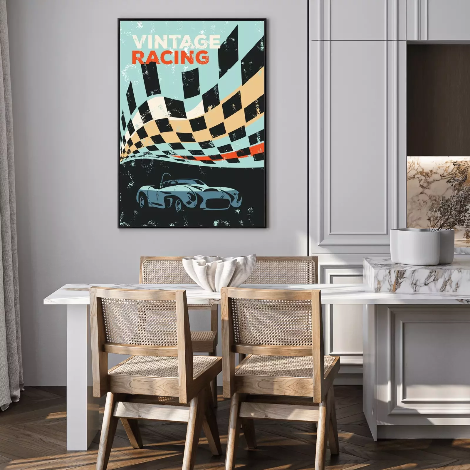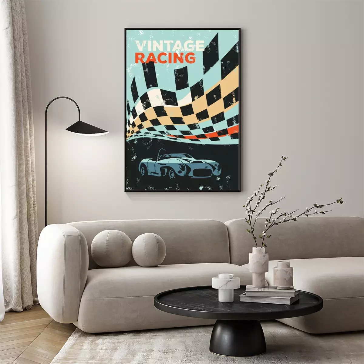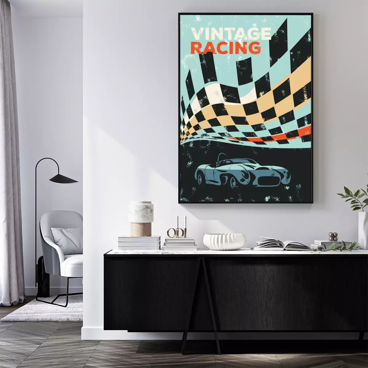 Poster Vintage Muster mit Rennwagen