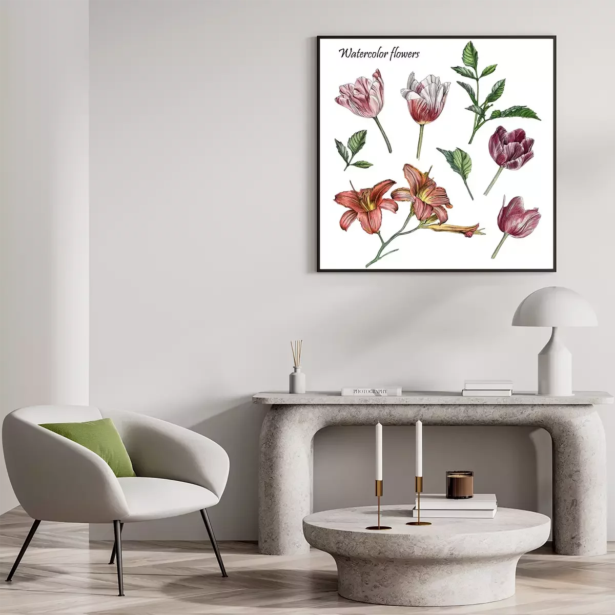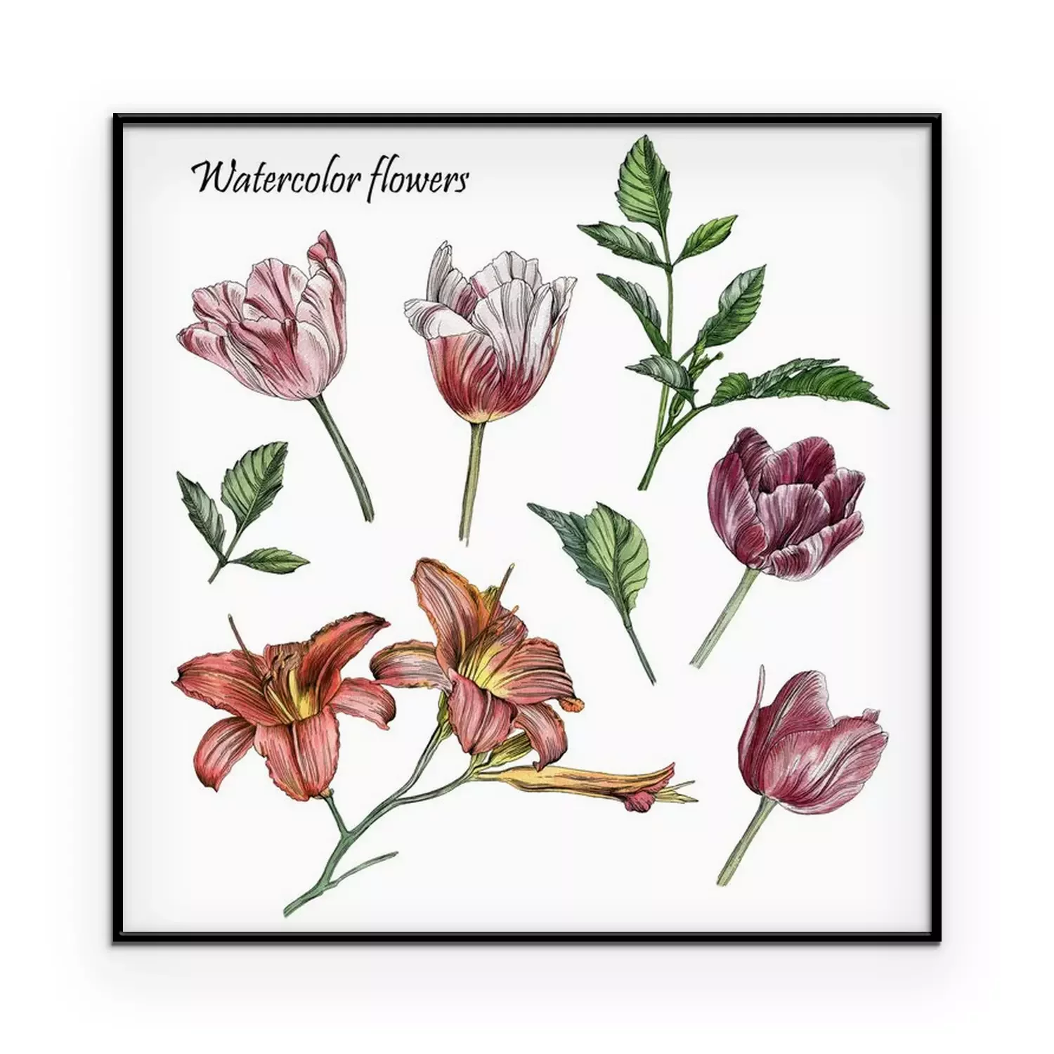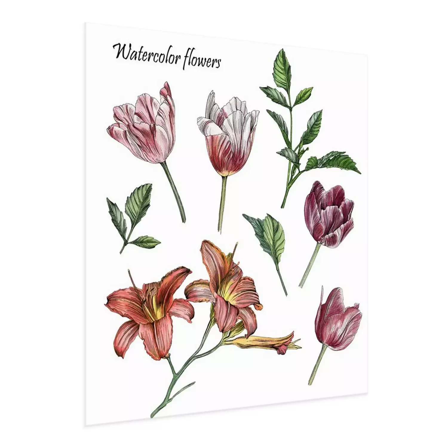 Poster: Vintage Tulpen und Lilien auf einem Zweig