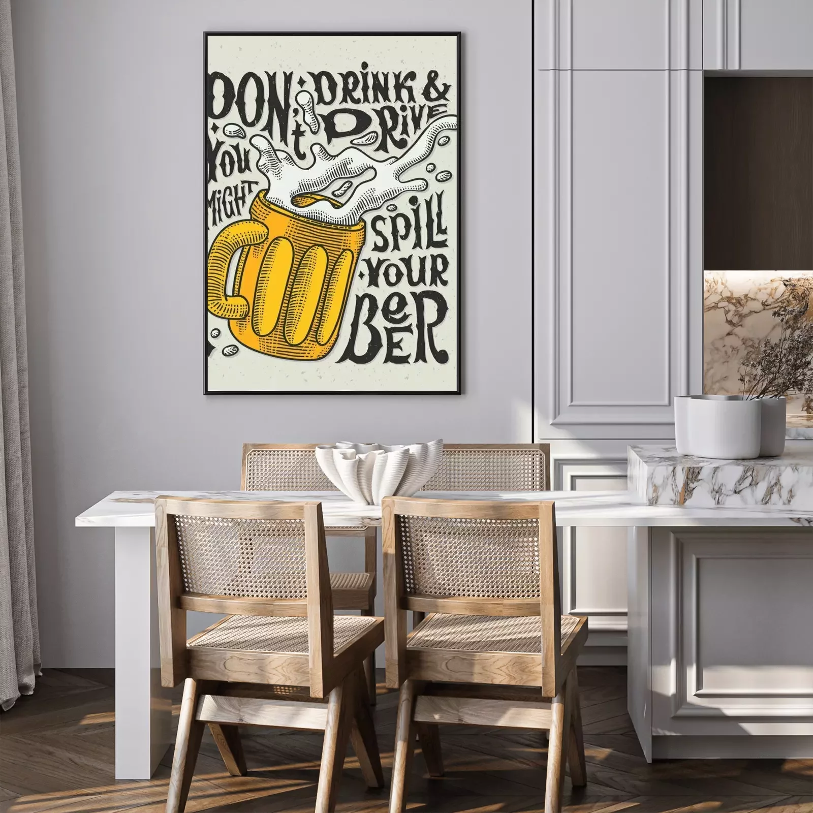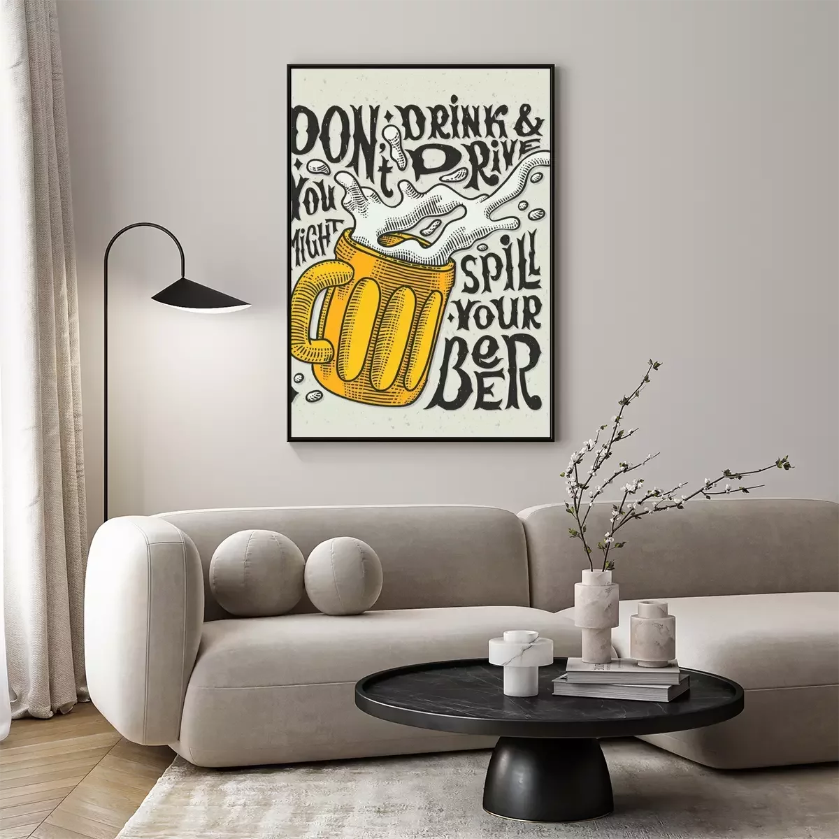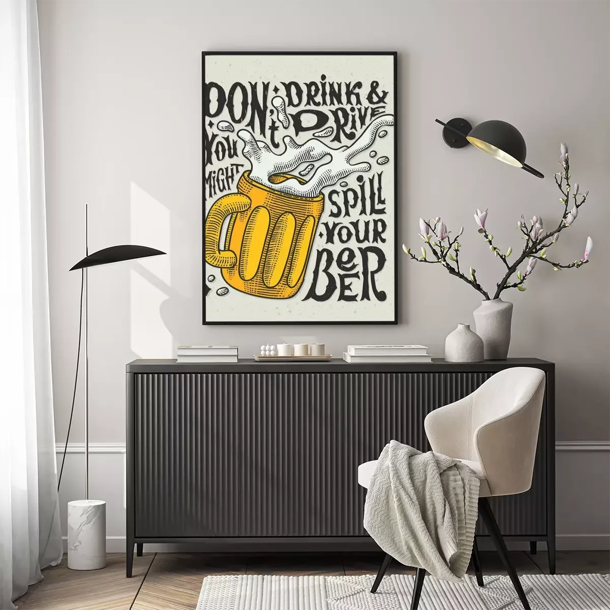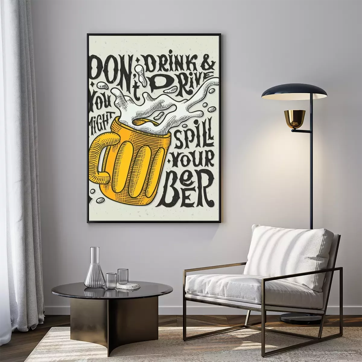 Poster Vintage-Zeichnung eines Bierkrugs mit schäumendem Bier und einer Inschrift