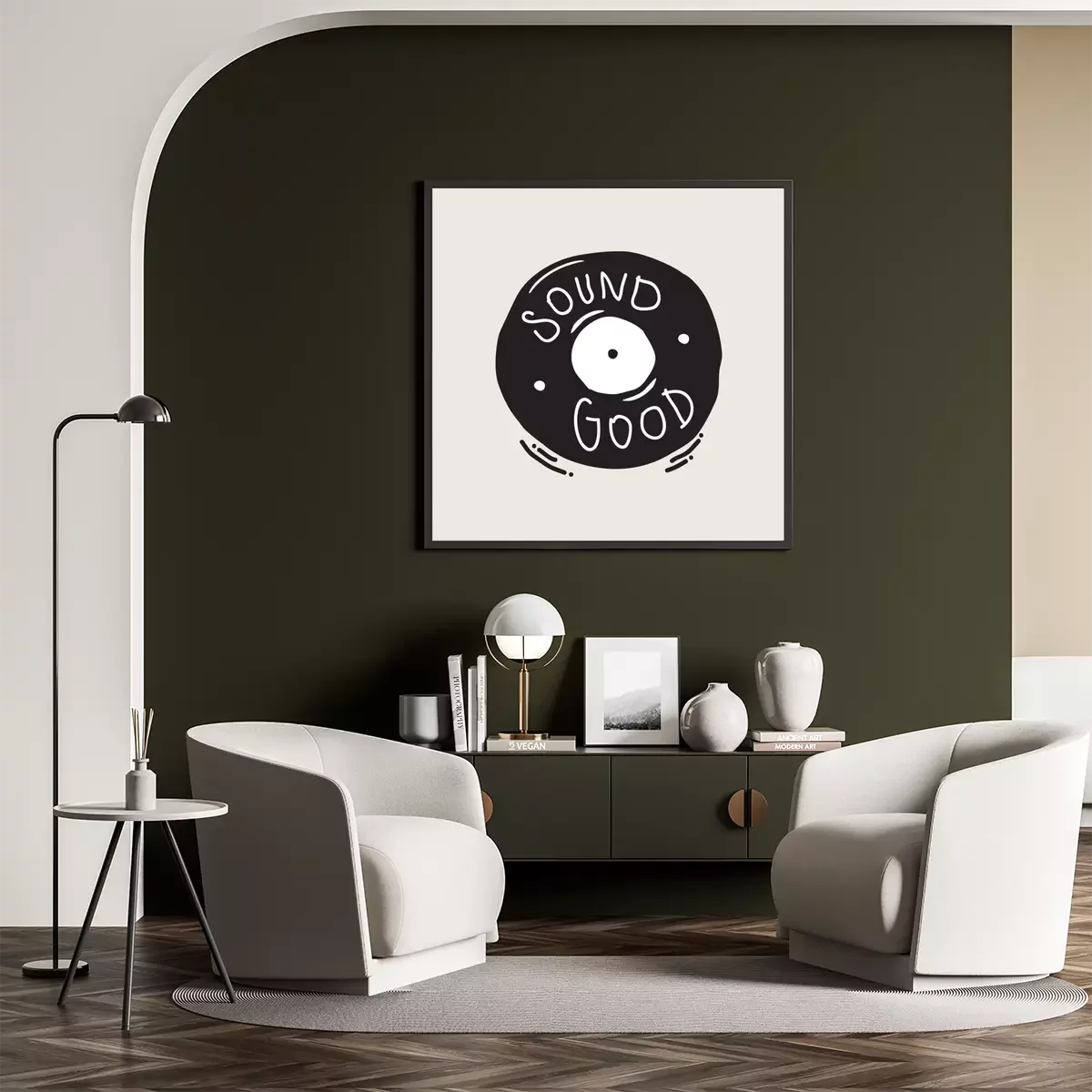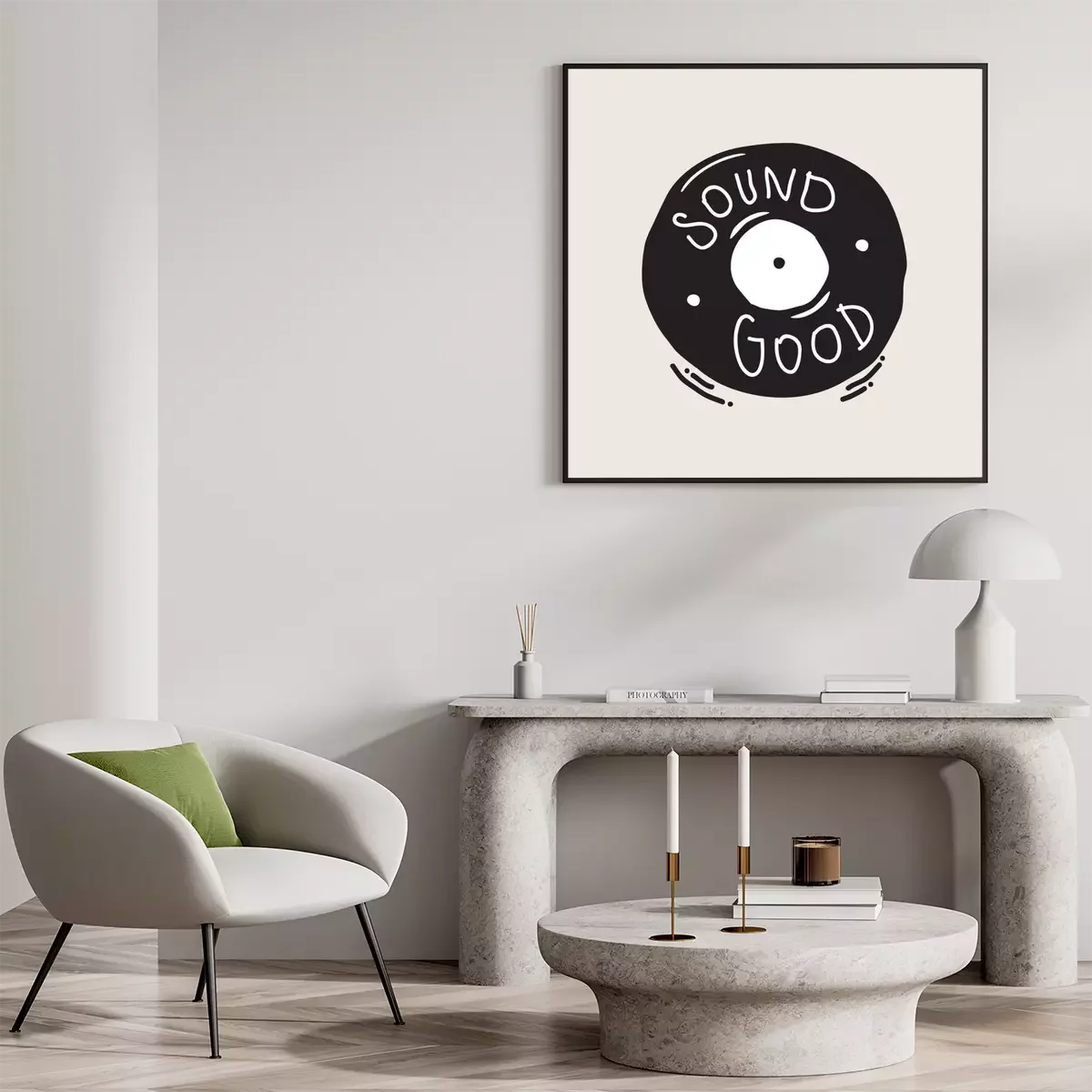 Poster: Vinyl-Record-Illustration mit Handschrift Text, "Sound Good".
