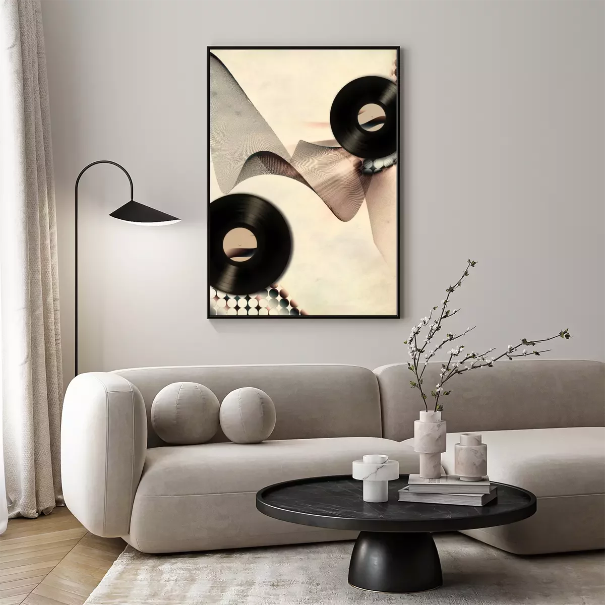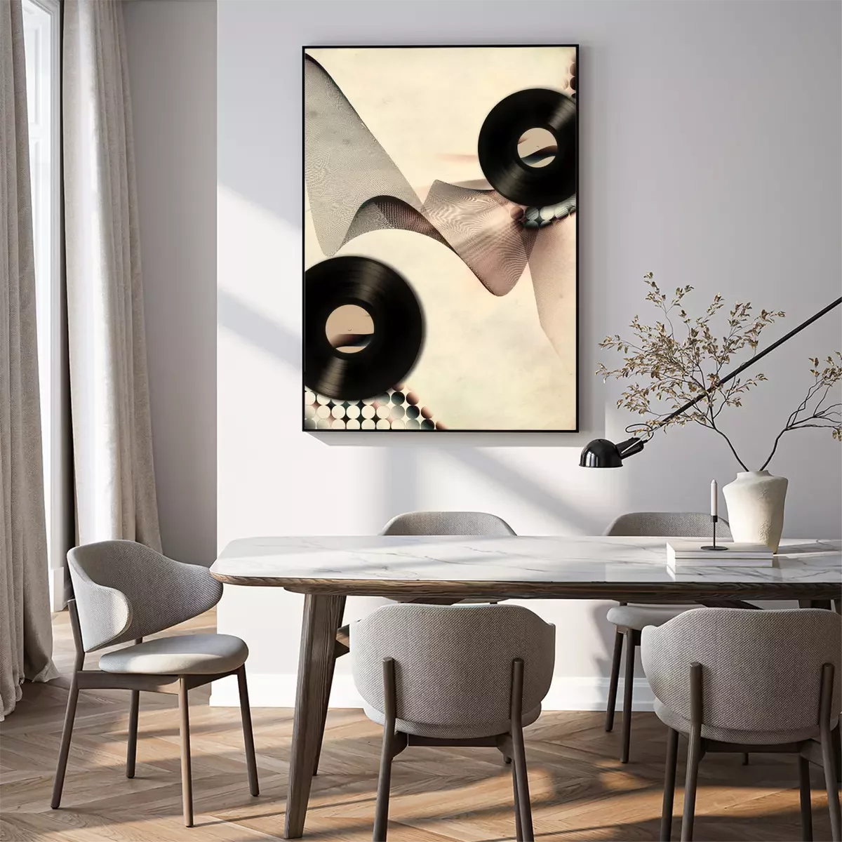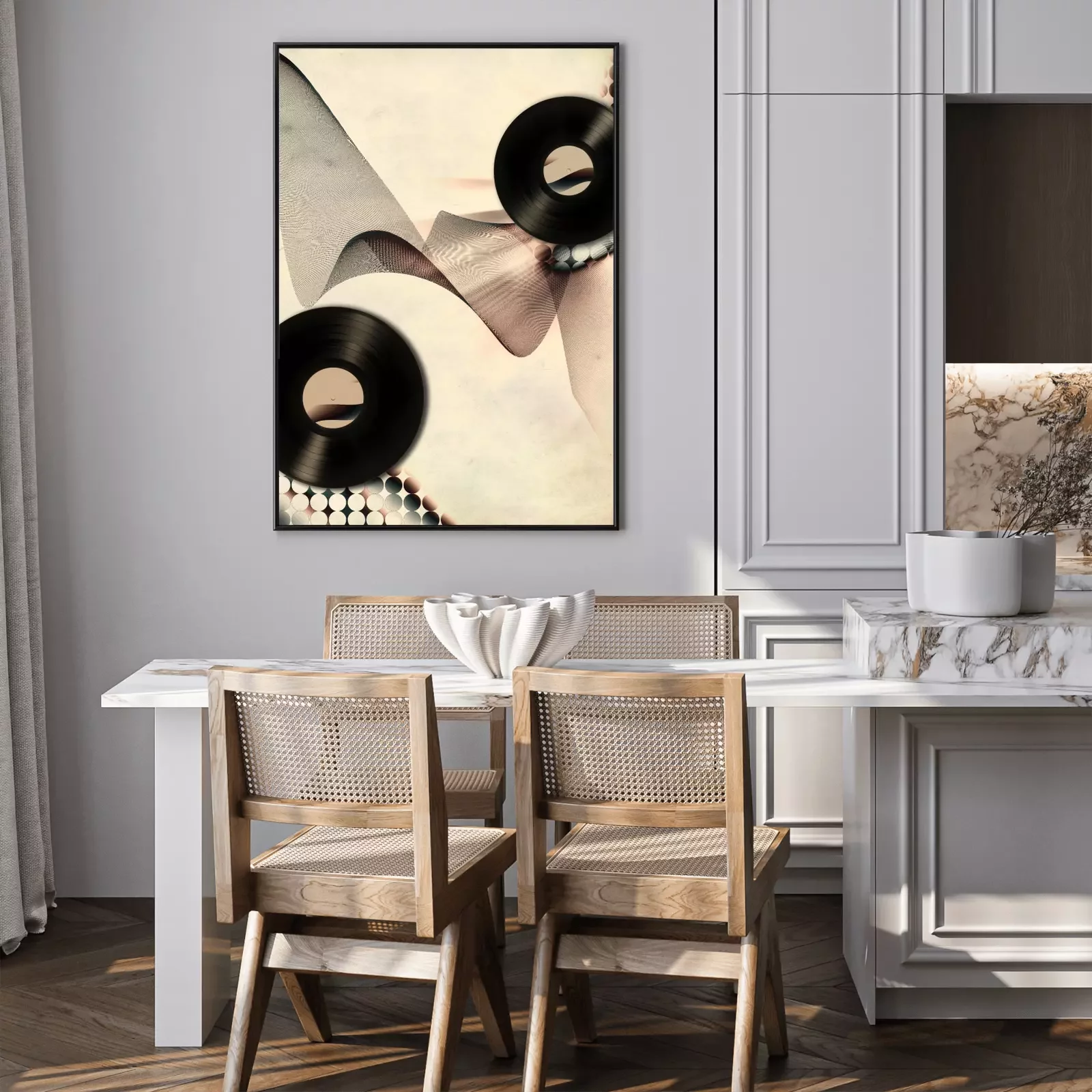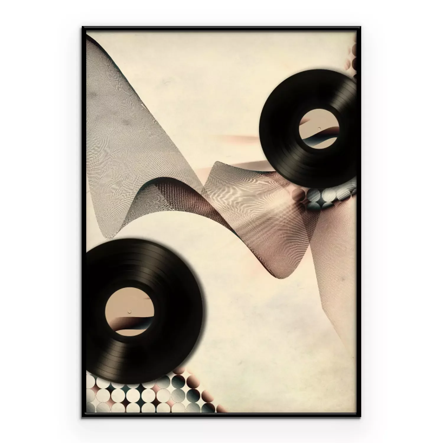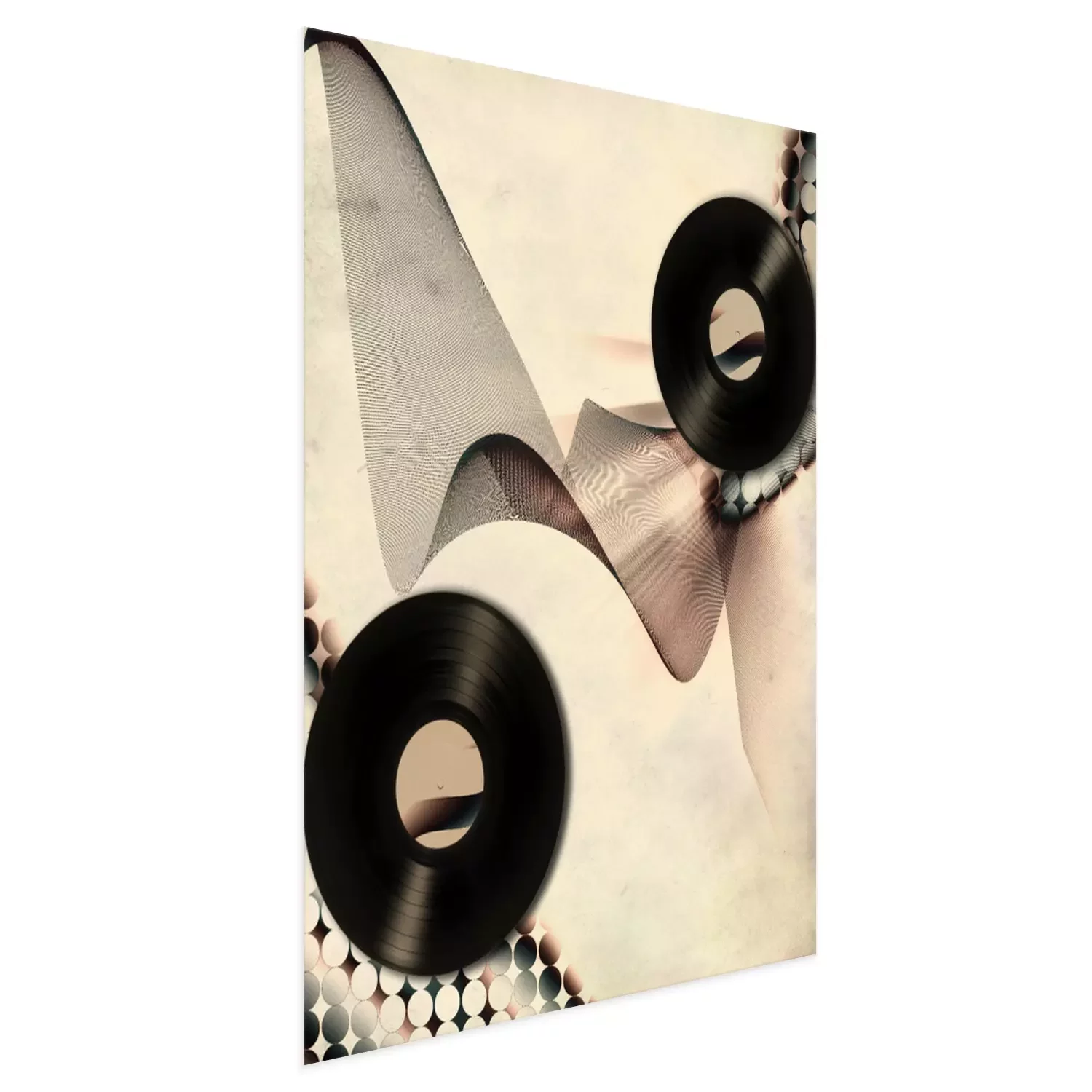 Poster: Vinyl-Schallplatten auf einem musikalischen Hintergrund