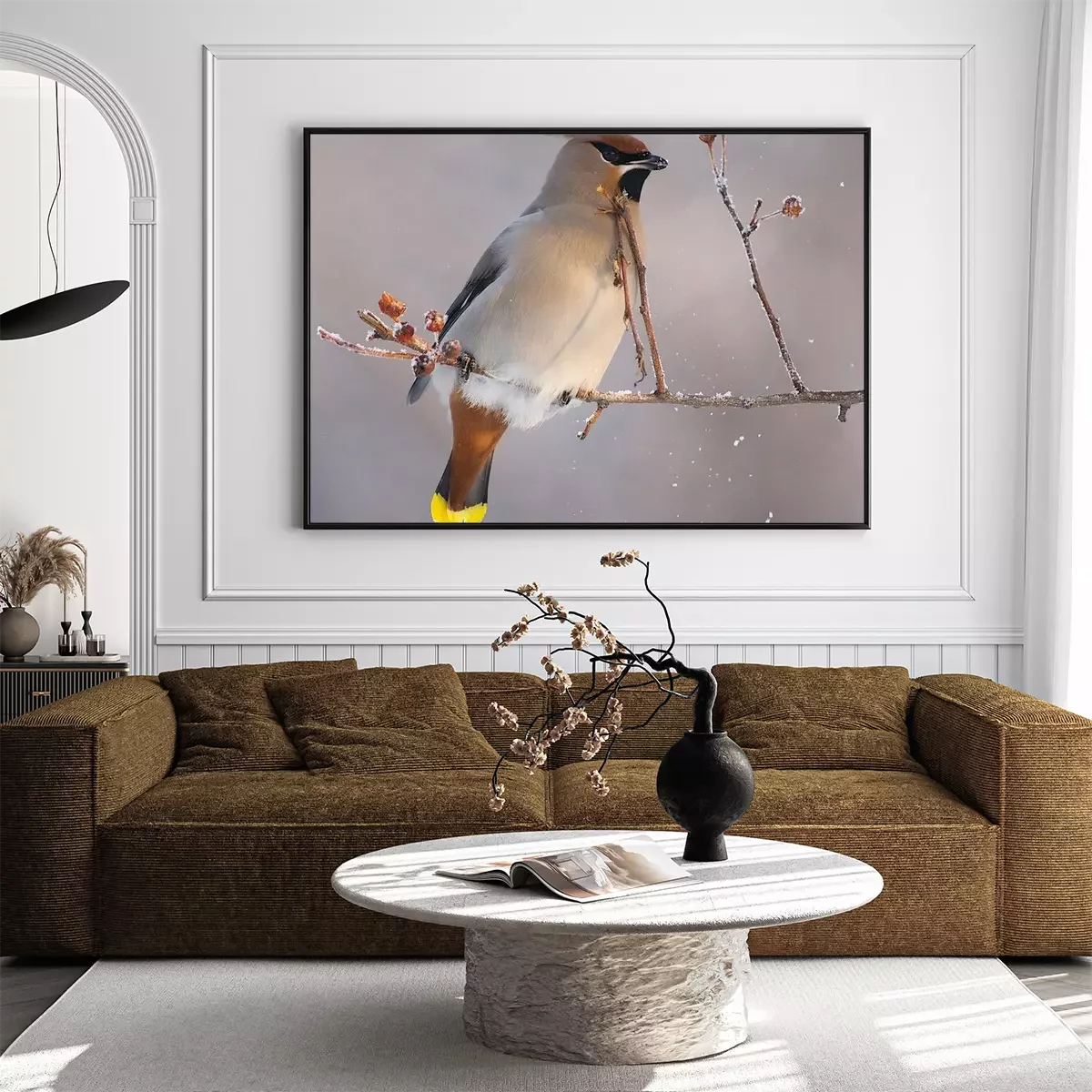 Poster Vogel auf einem Zweig im Winter