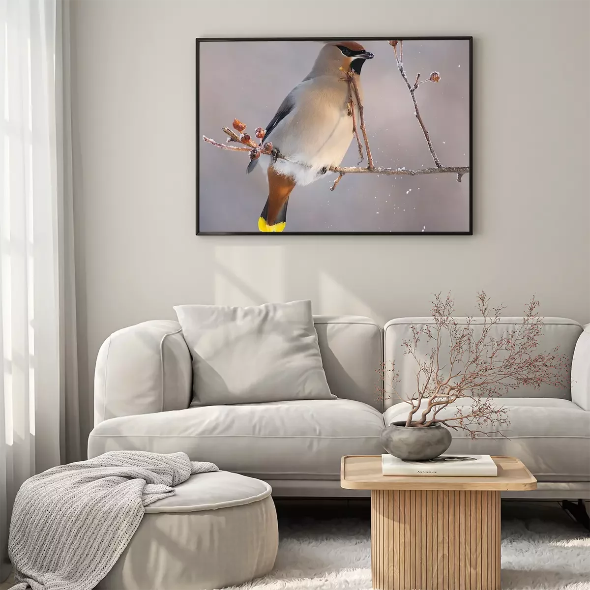Poster: Vogel auf einem Zweig im Winter