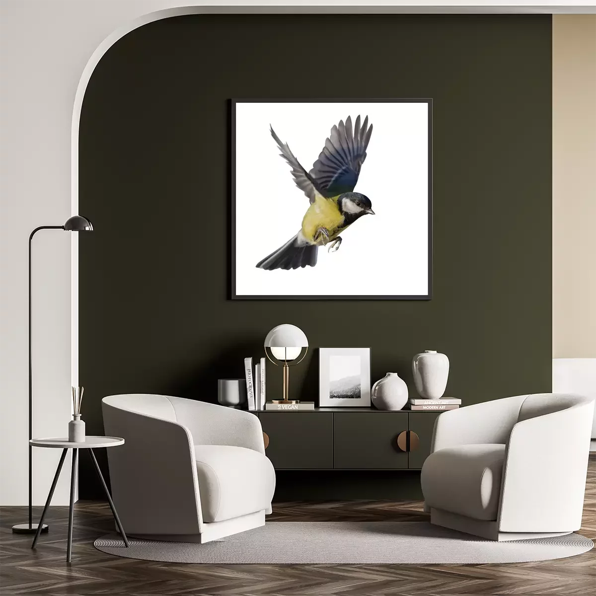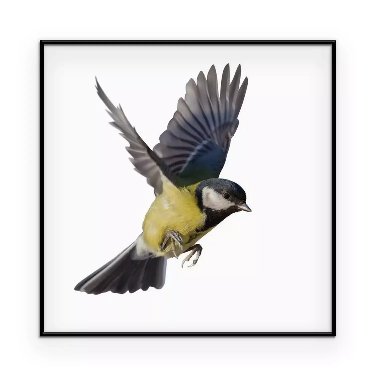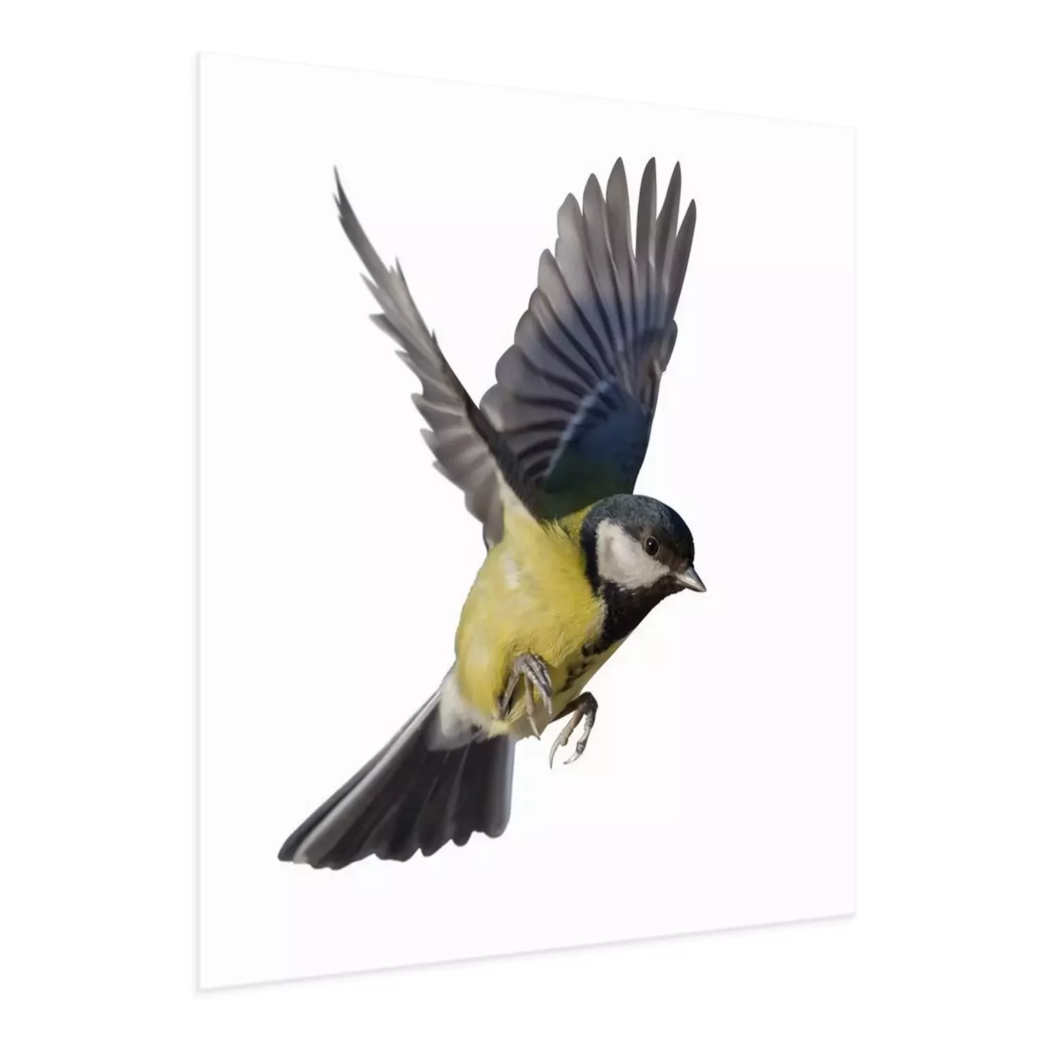 Poster: Vogel fliegt auf dem weißen Hintergrund