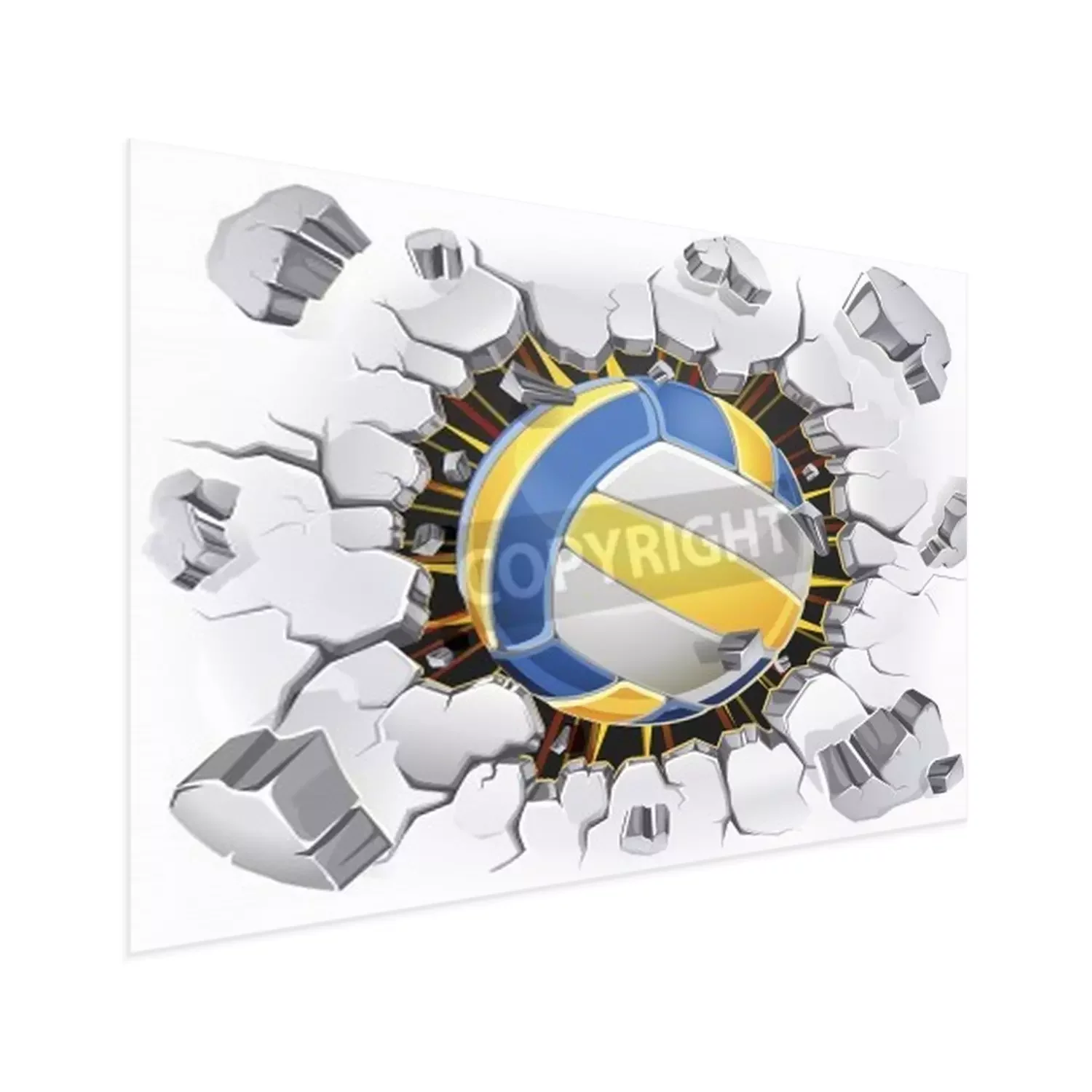 Poster Volleyball Ball, der die Wand durchdringt