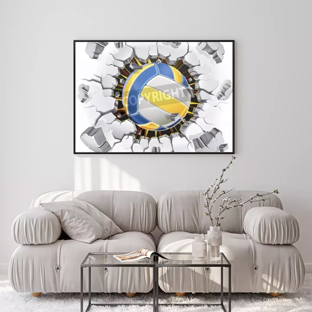 Poster: Volleyball Ball, der die Wand durchdringt